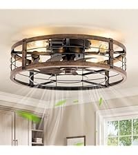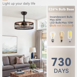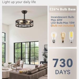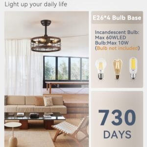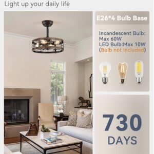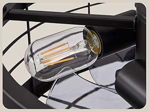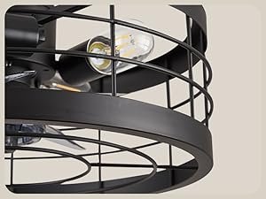 · INDUSTRIAL CAGE DESIGN: Industrial caged ceiling fan with metal cover and 7 ABS fan blades, 2 down rods, 4 E26 standard bases (bulbs not included), ideal for bedroom, kitchen, living room, outdoor