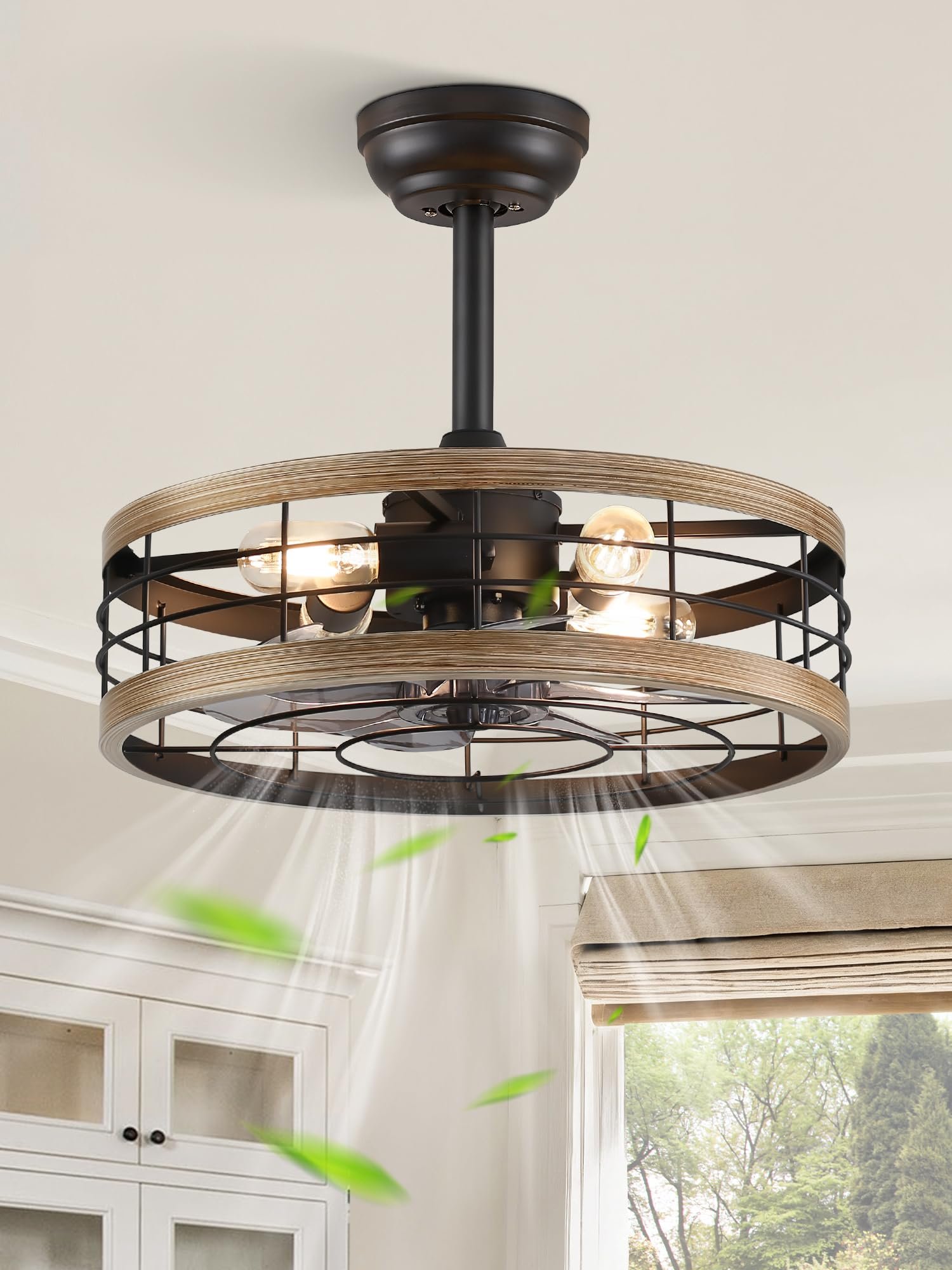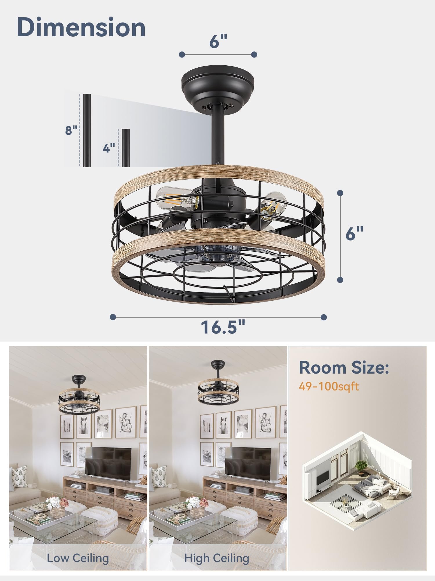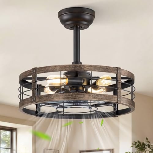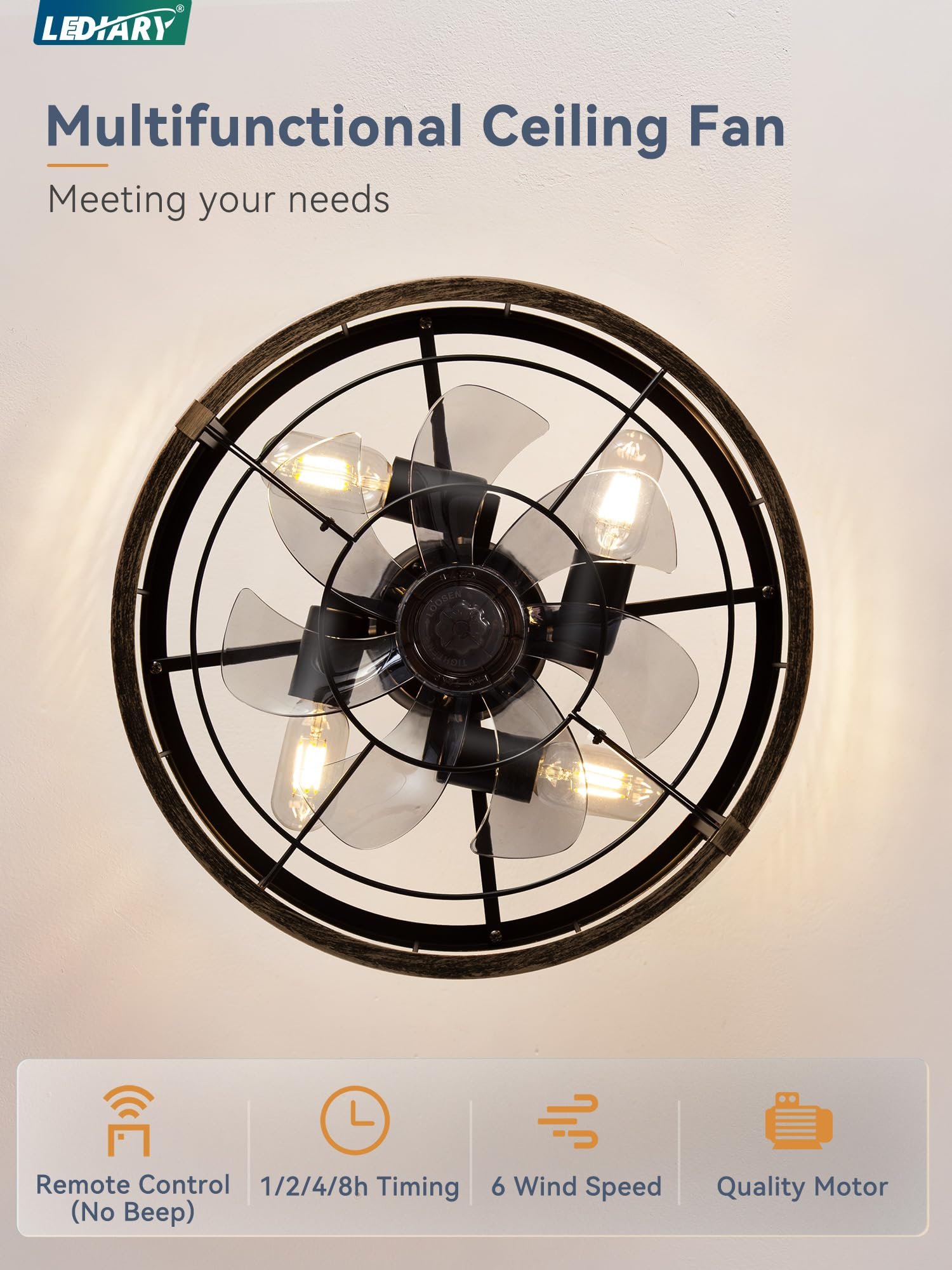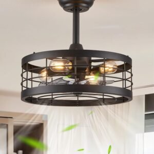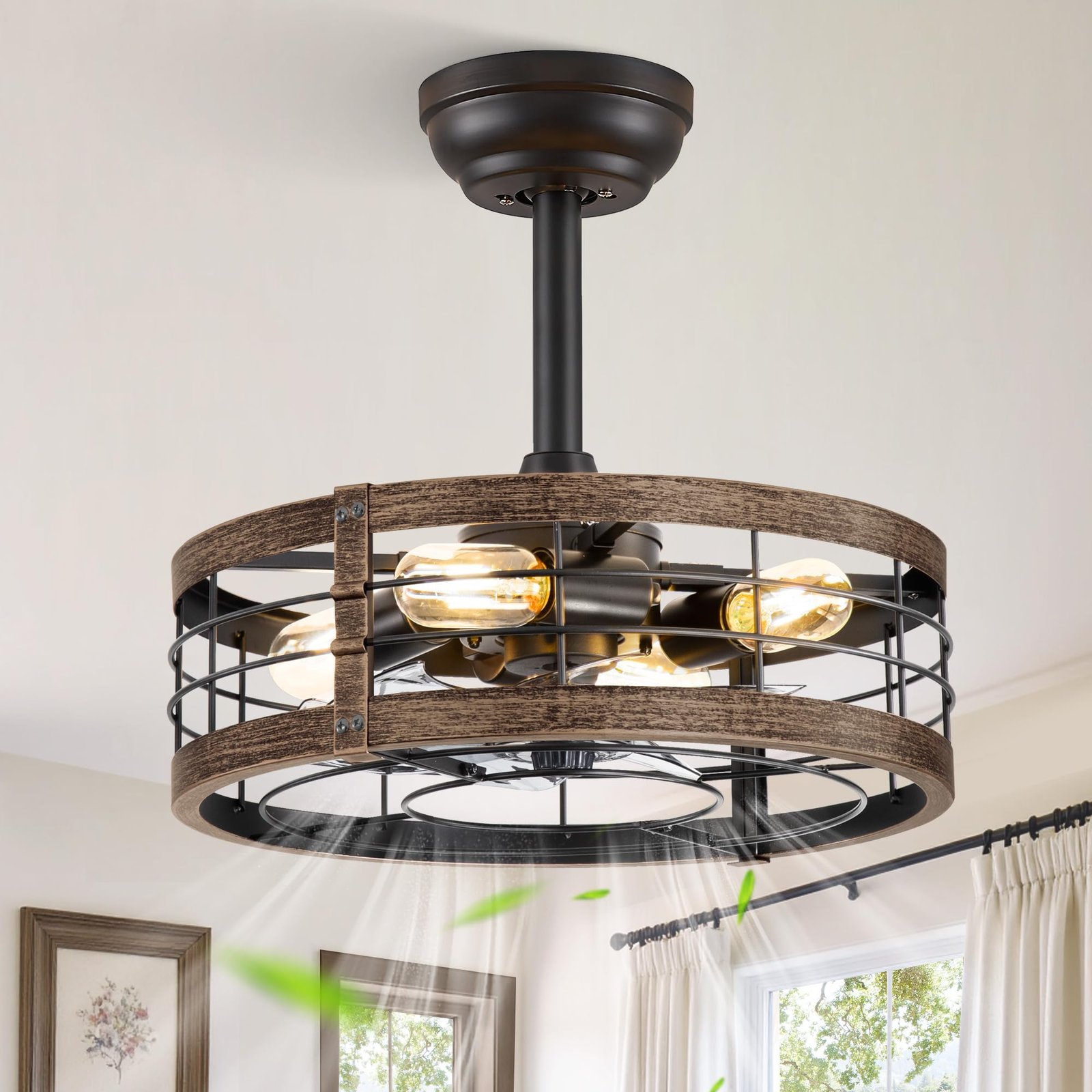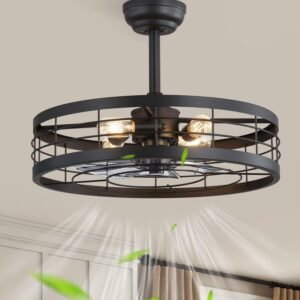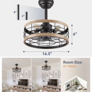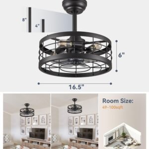 16.5 inch Black Caged Ceiling Fan with Light, Fandelier Industrial Ceiling Fan with Remote