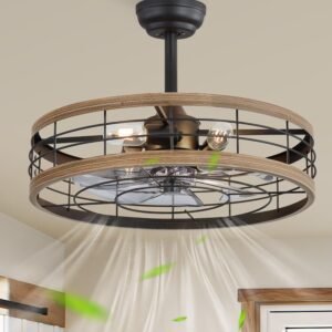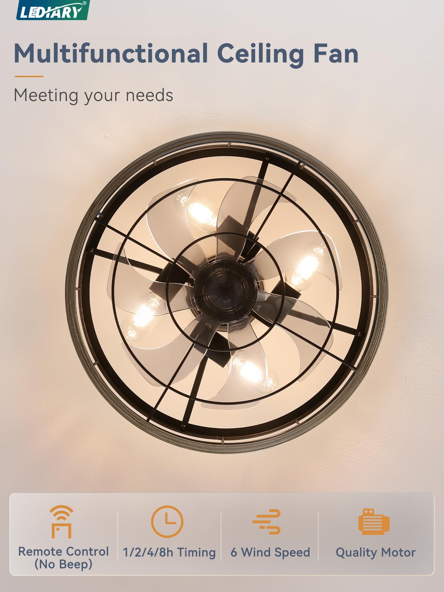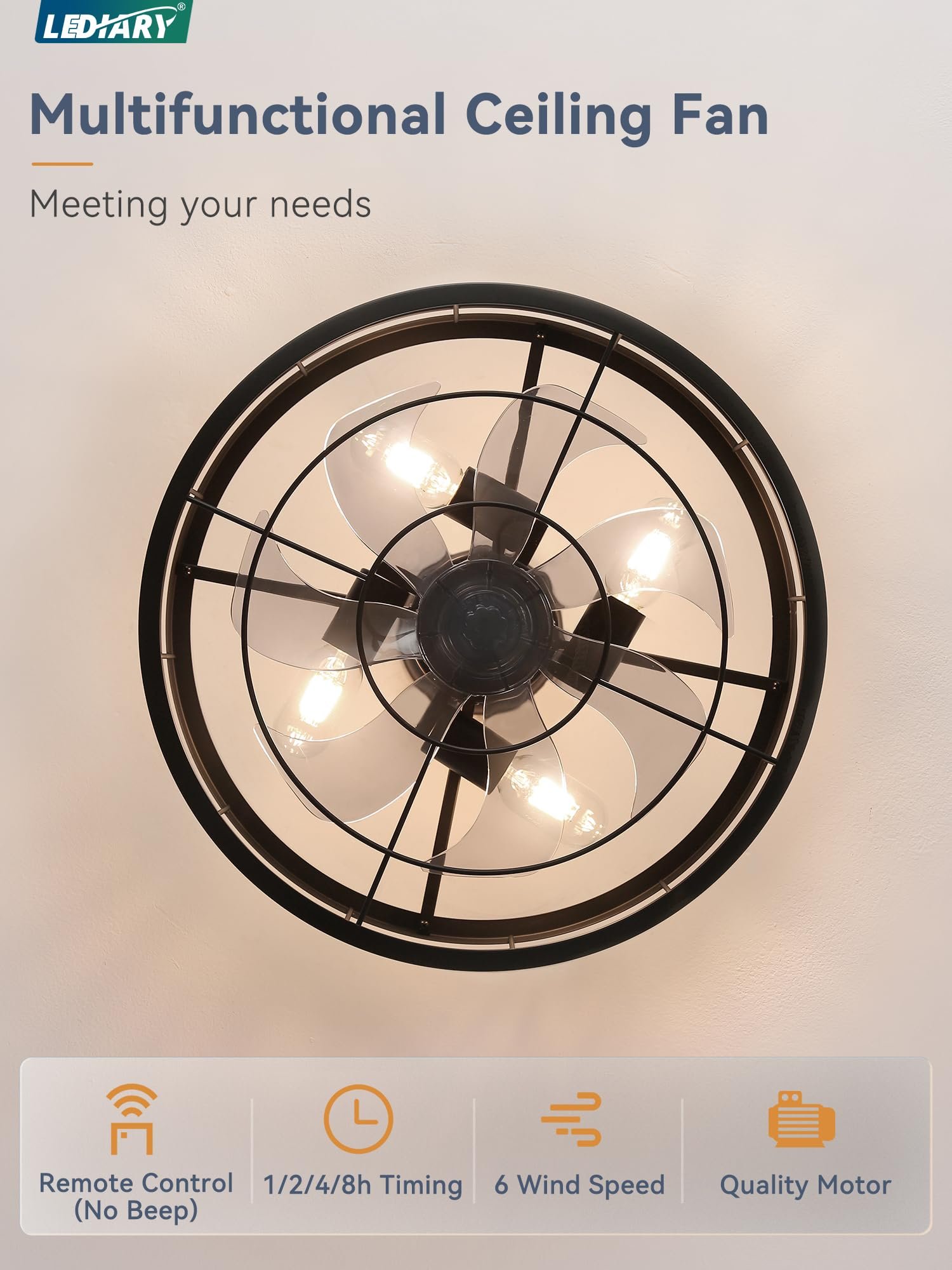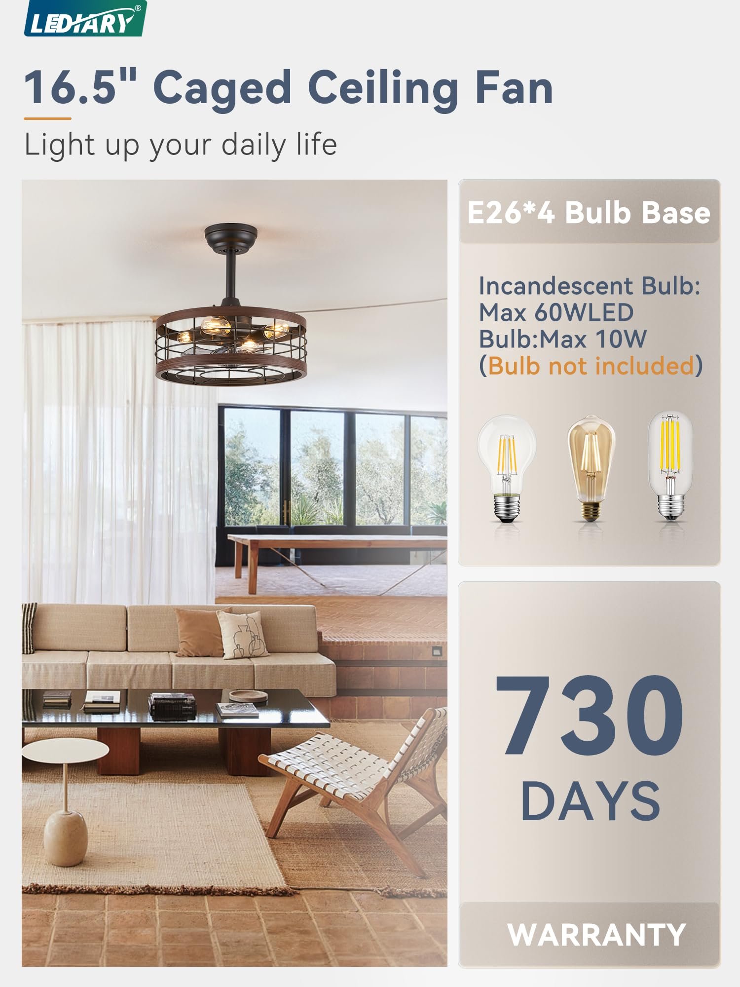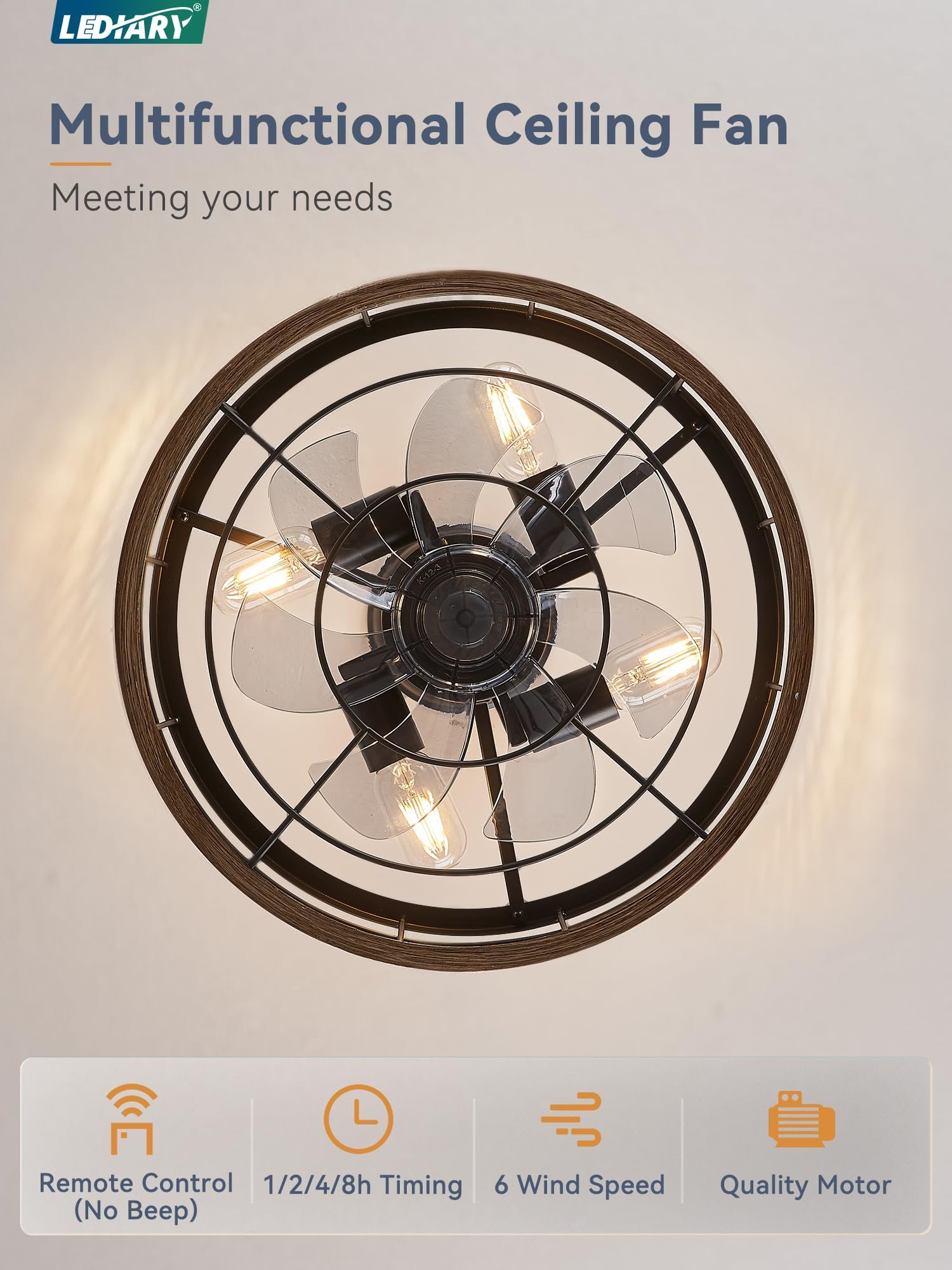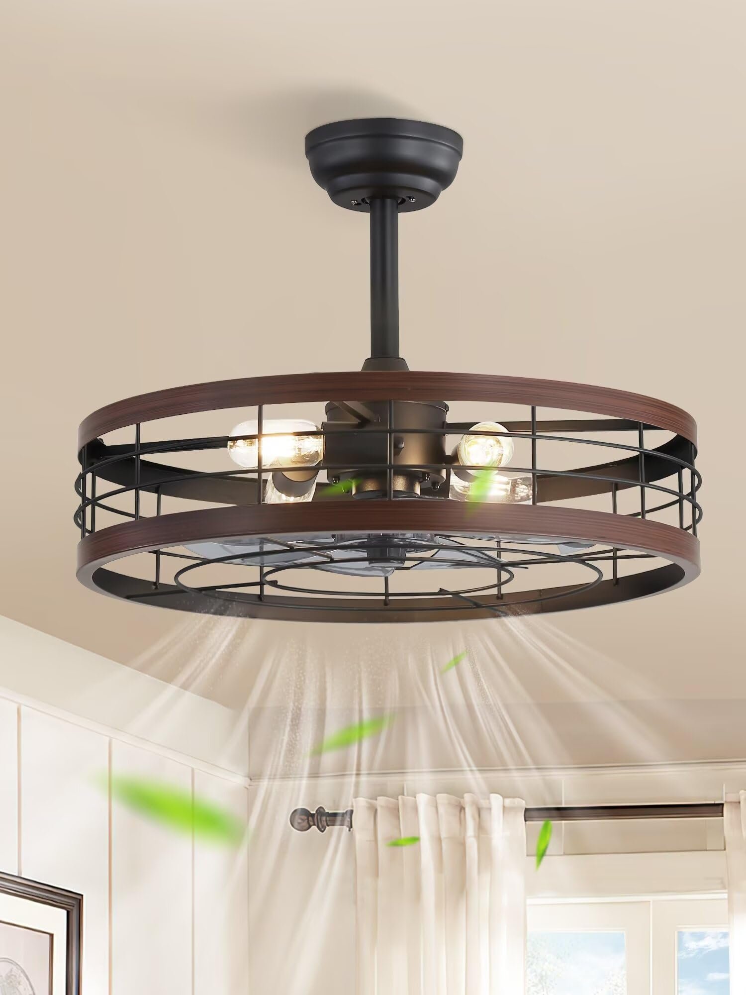 16.5 inch Black Caged Ceiling Fan with Light, Fandelier Industrial Ceiling Fan with Remote
