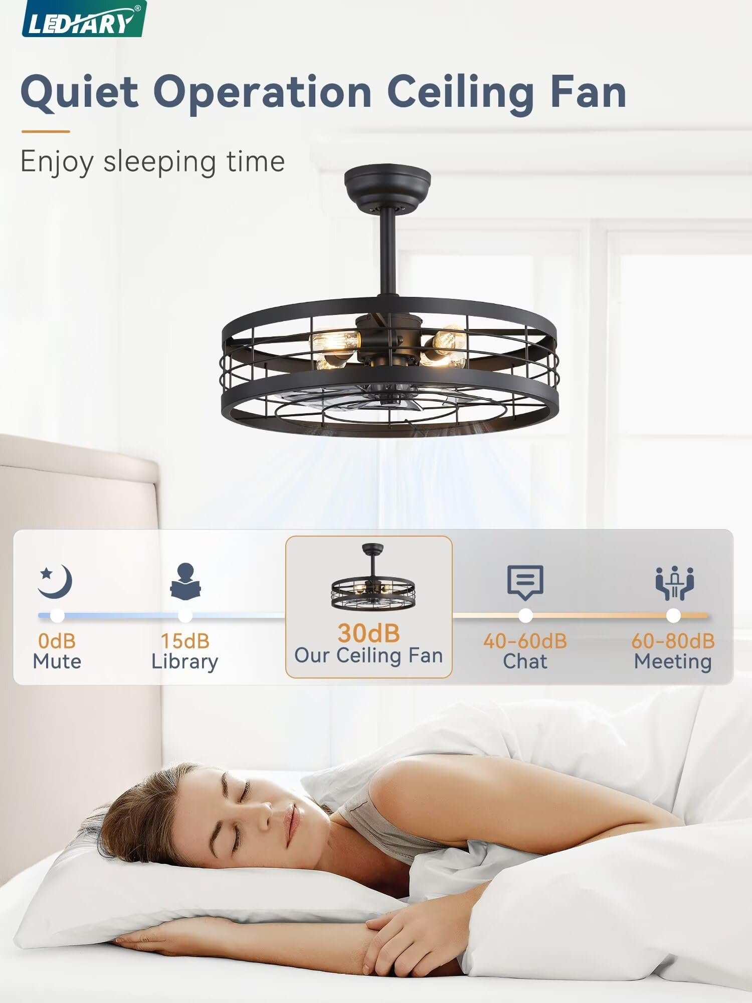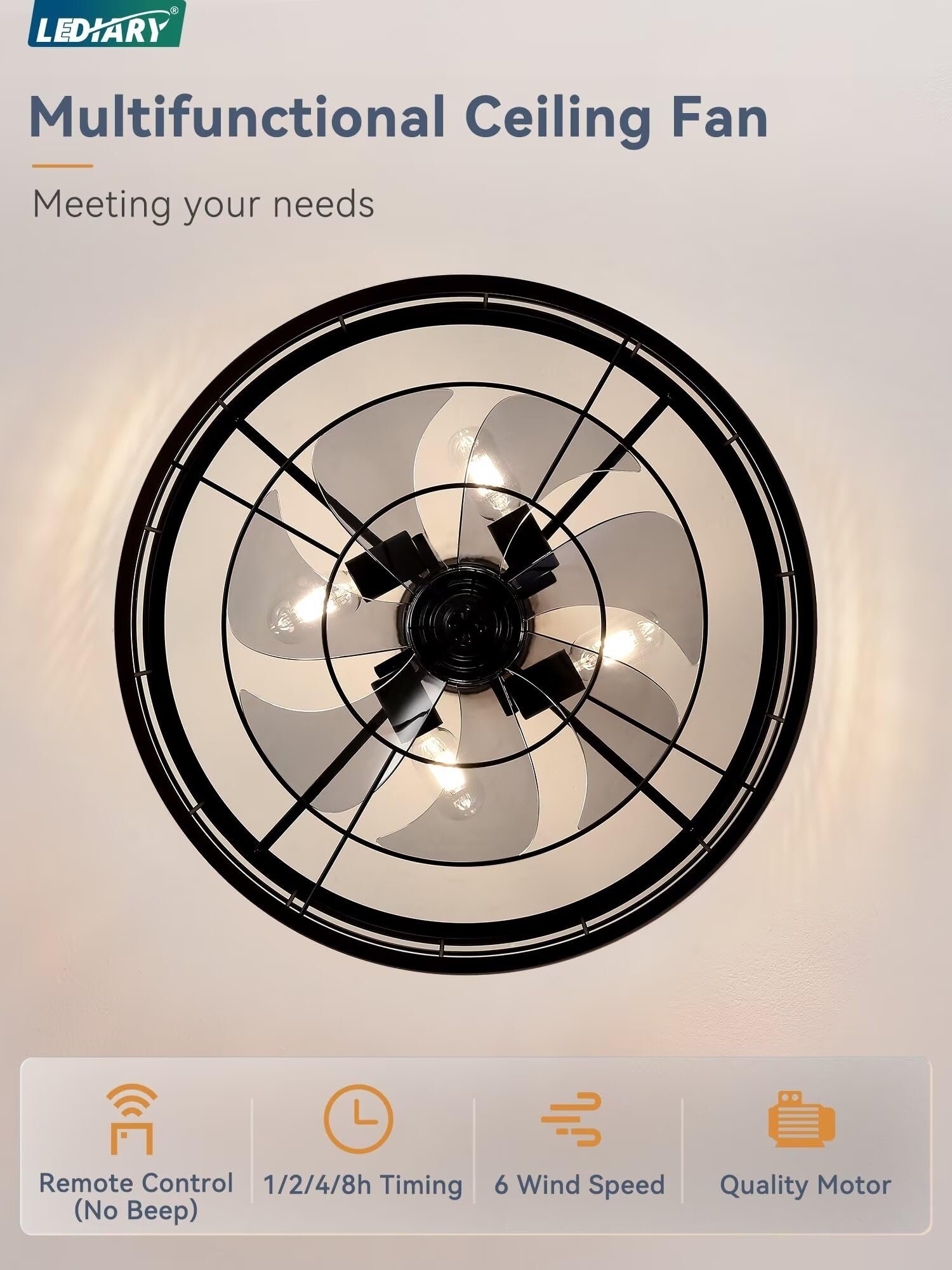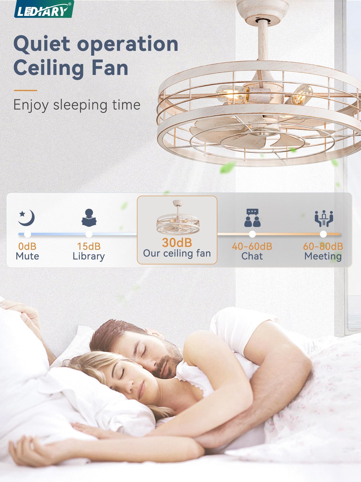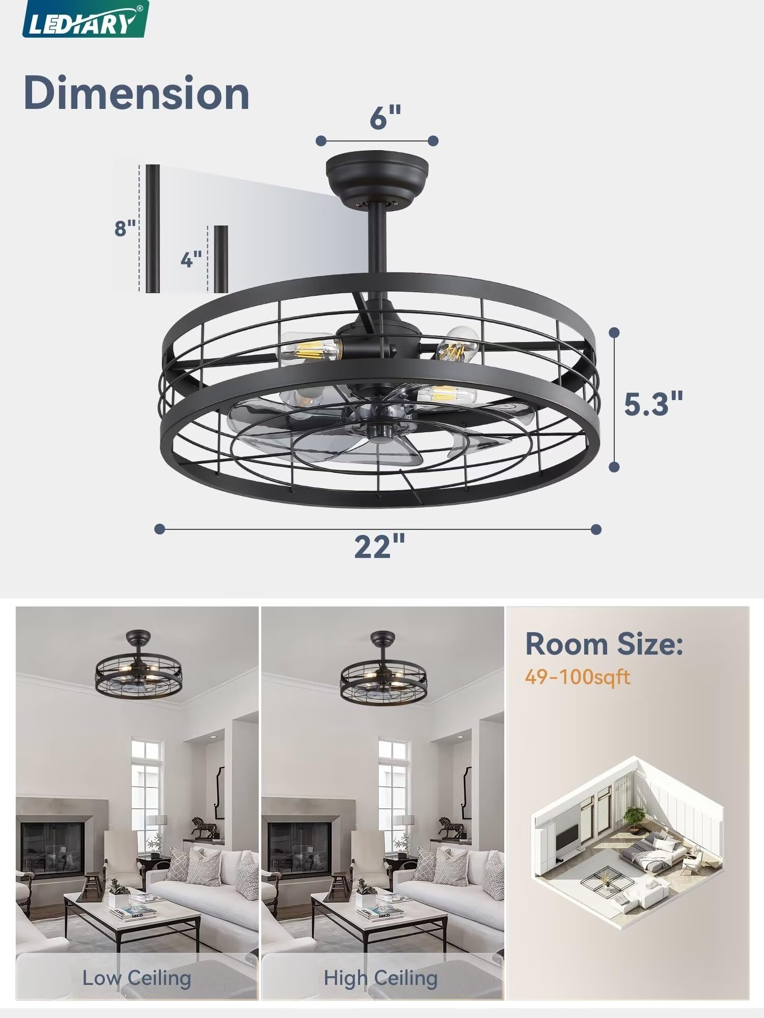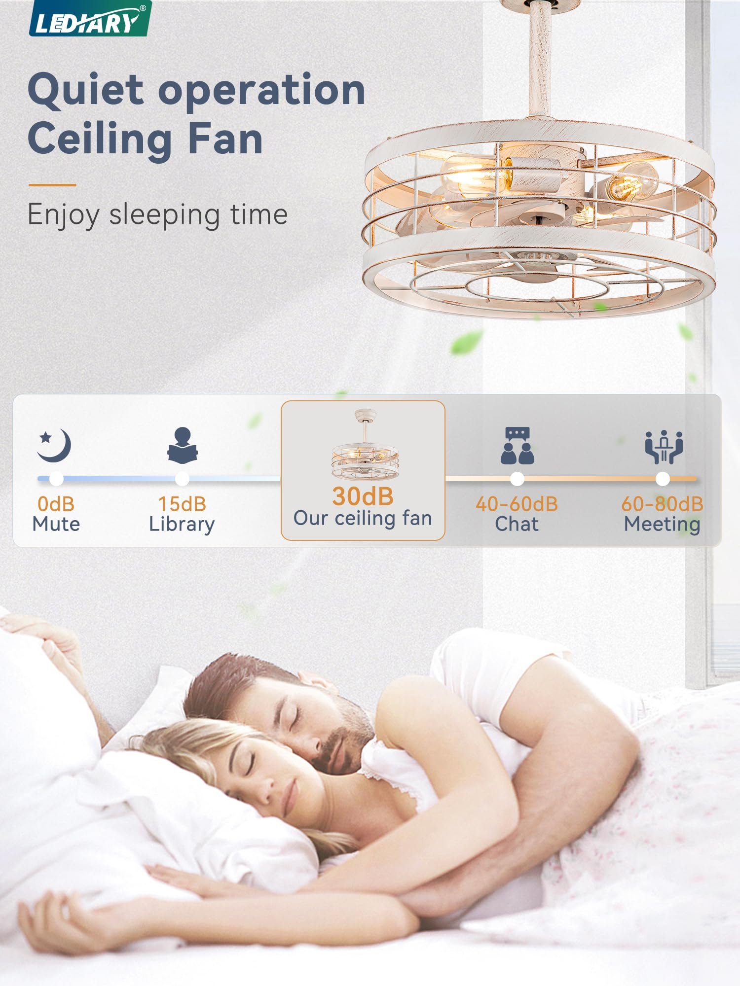 · EASY INSTALLATION: Complete accessories, with detailed instructions, buyers can quickly install and enjoy the comfort brought by the caged ceiling fan with light