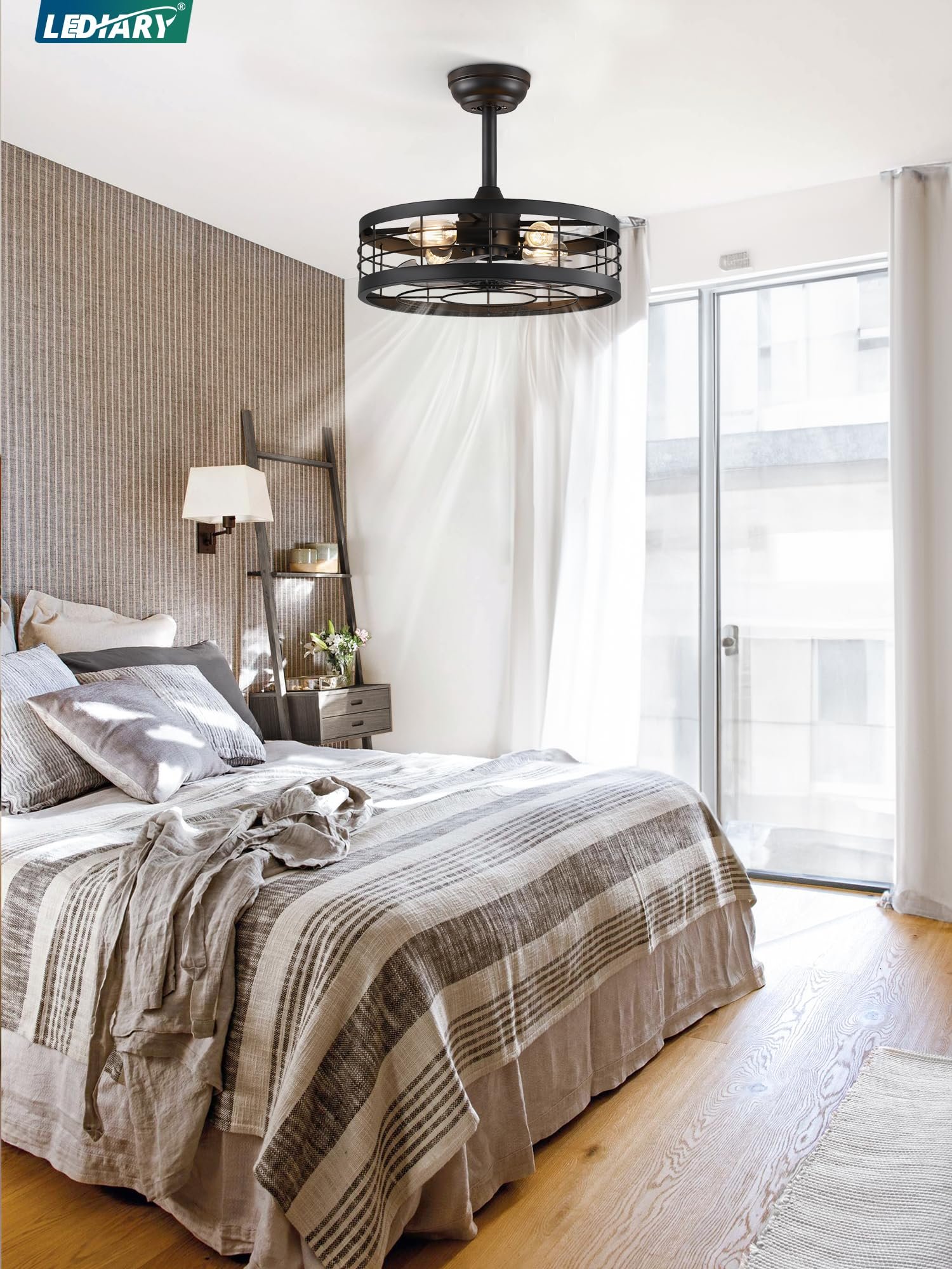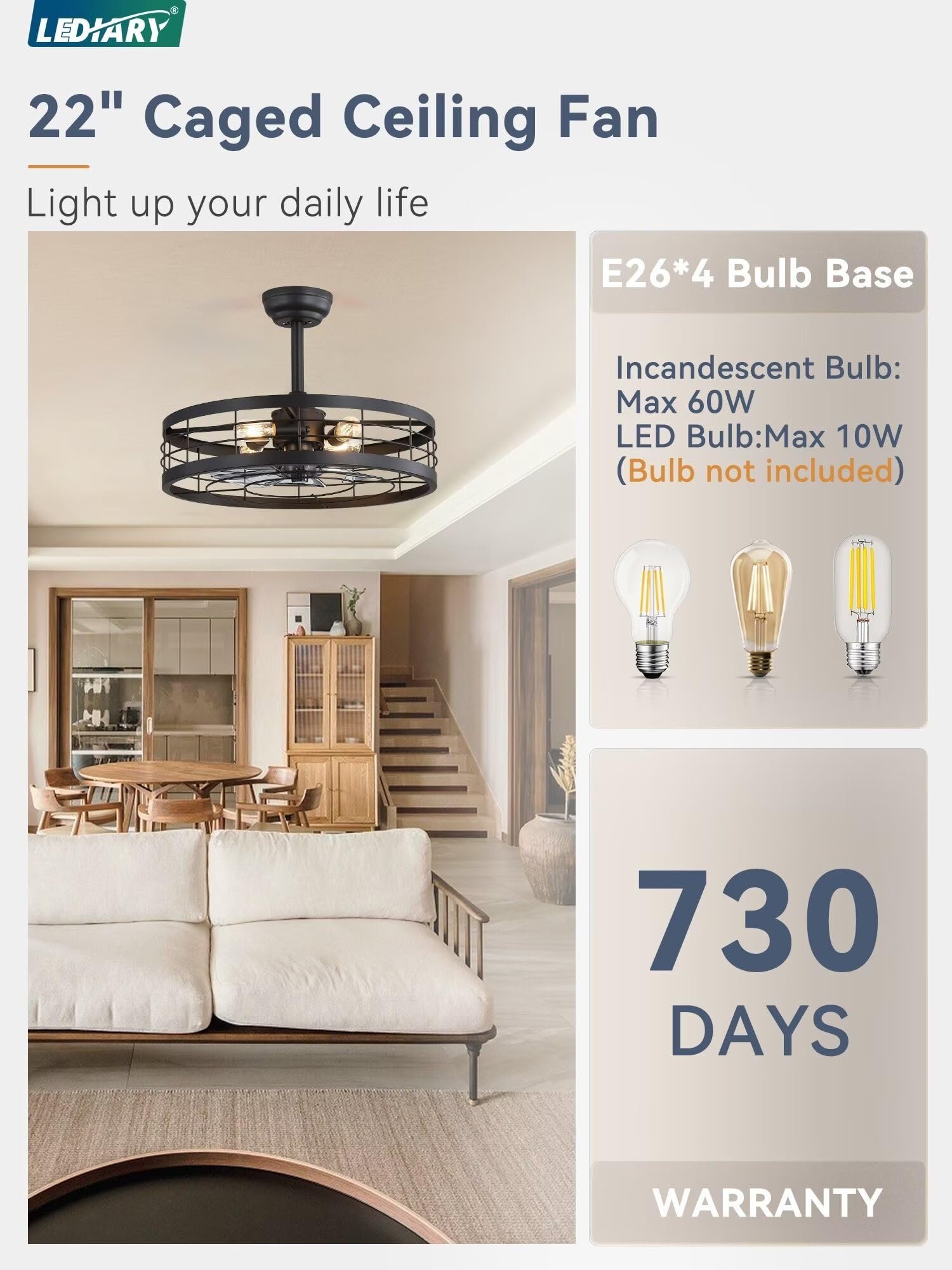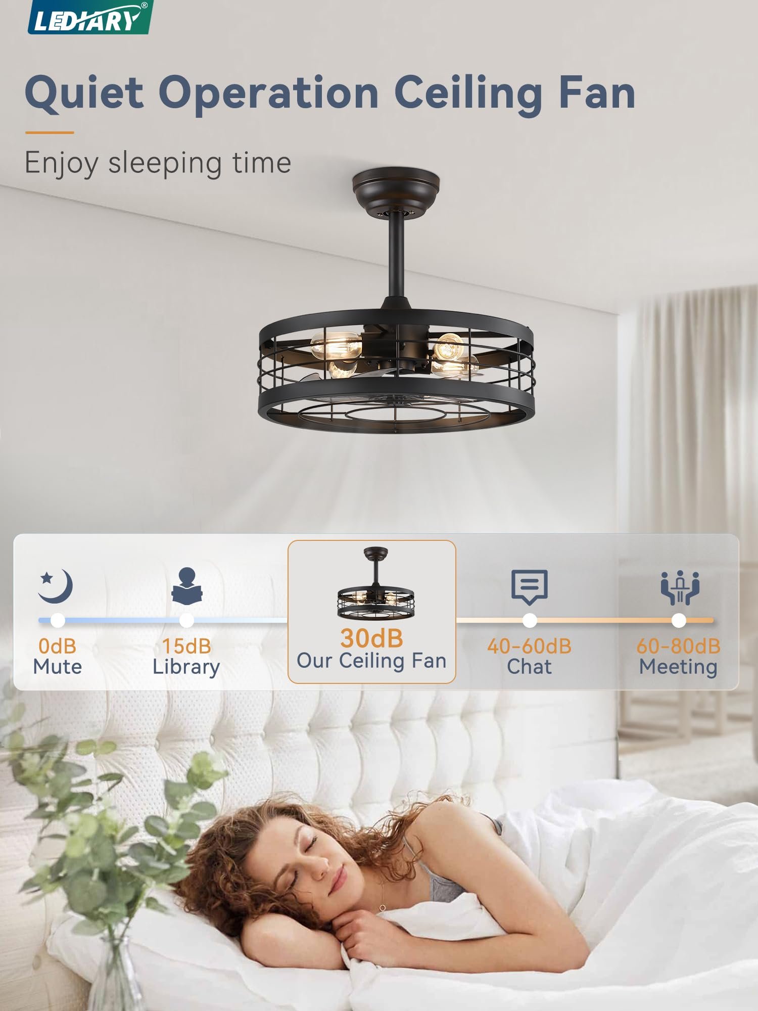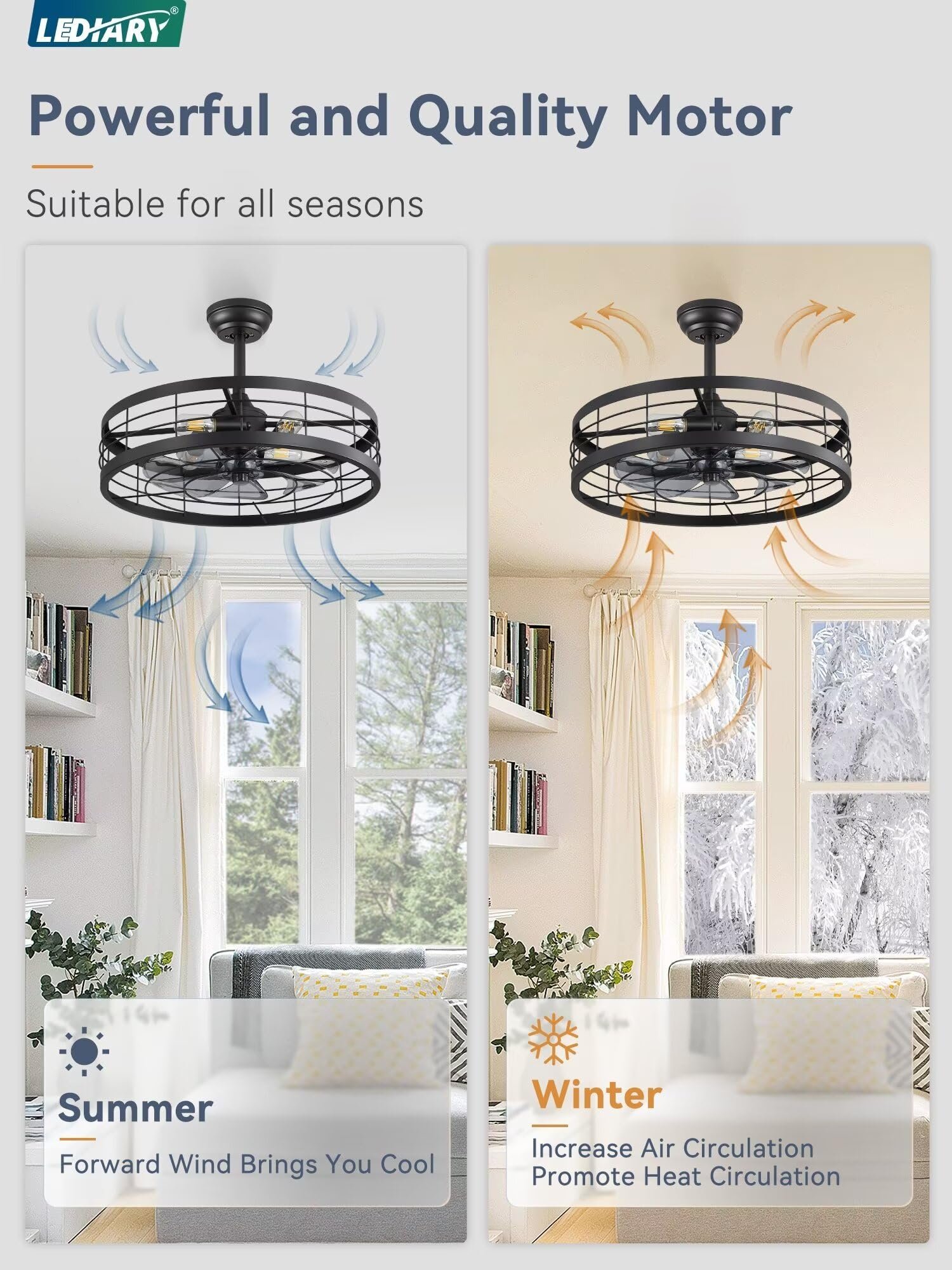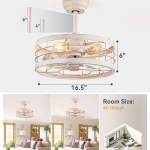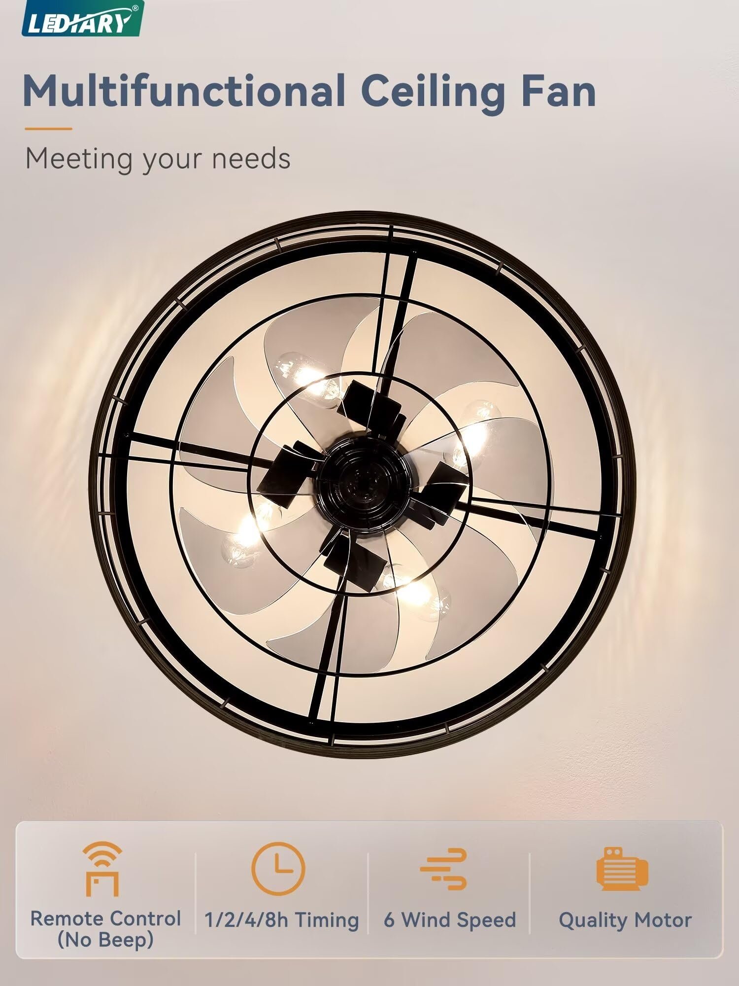 · EASY INSTALLATION: Complete accessories, with detailed instructions, buyers can quickly install and enjoy the comfort brought by the caged ceiling fan with light