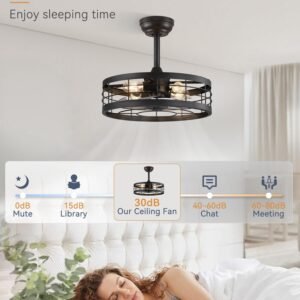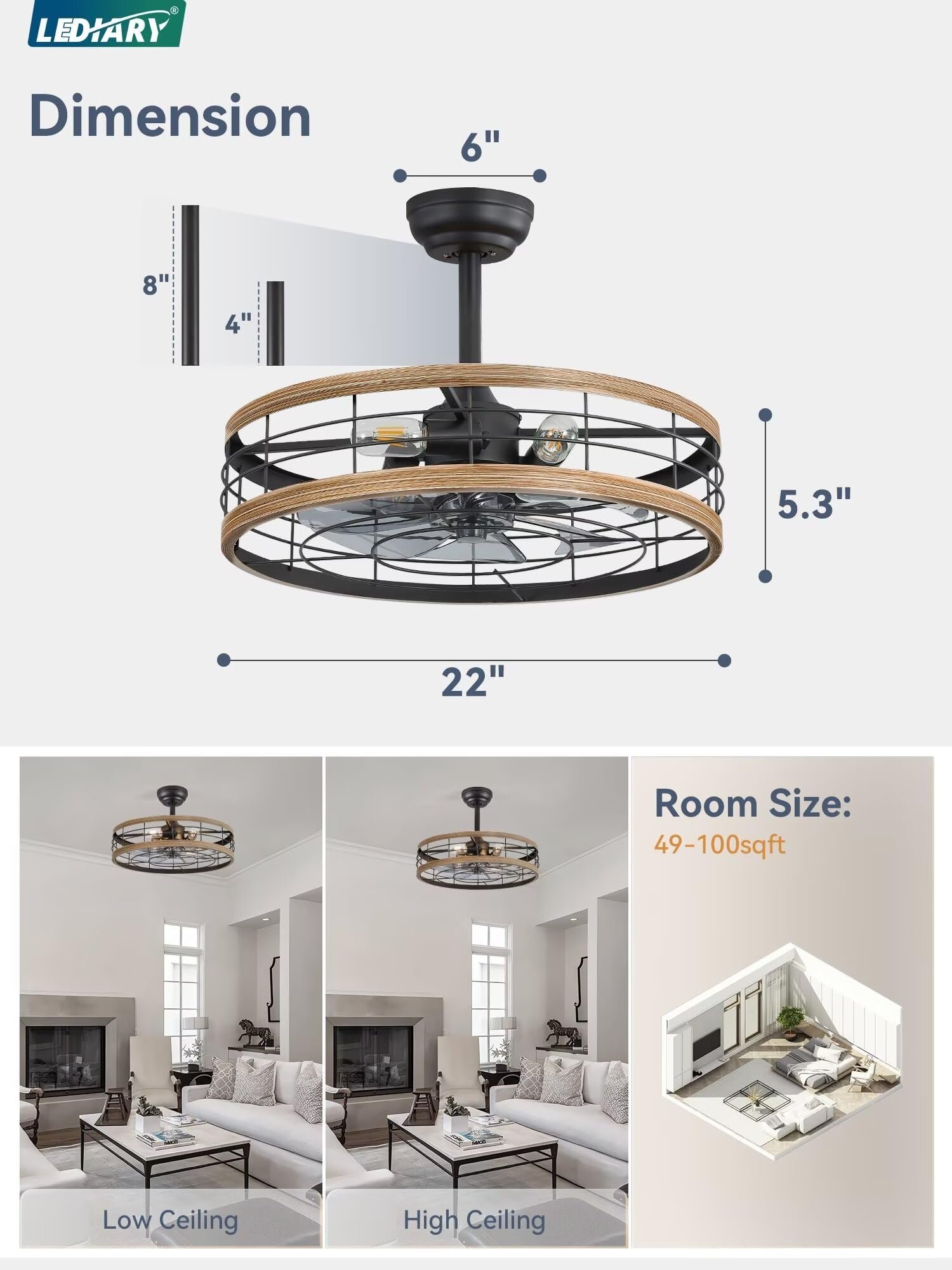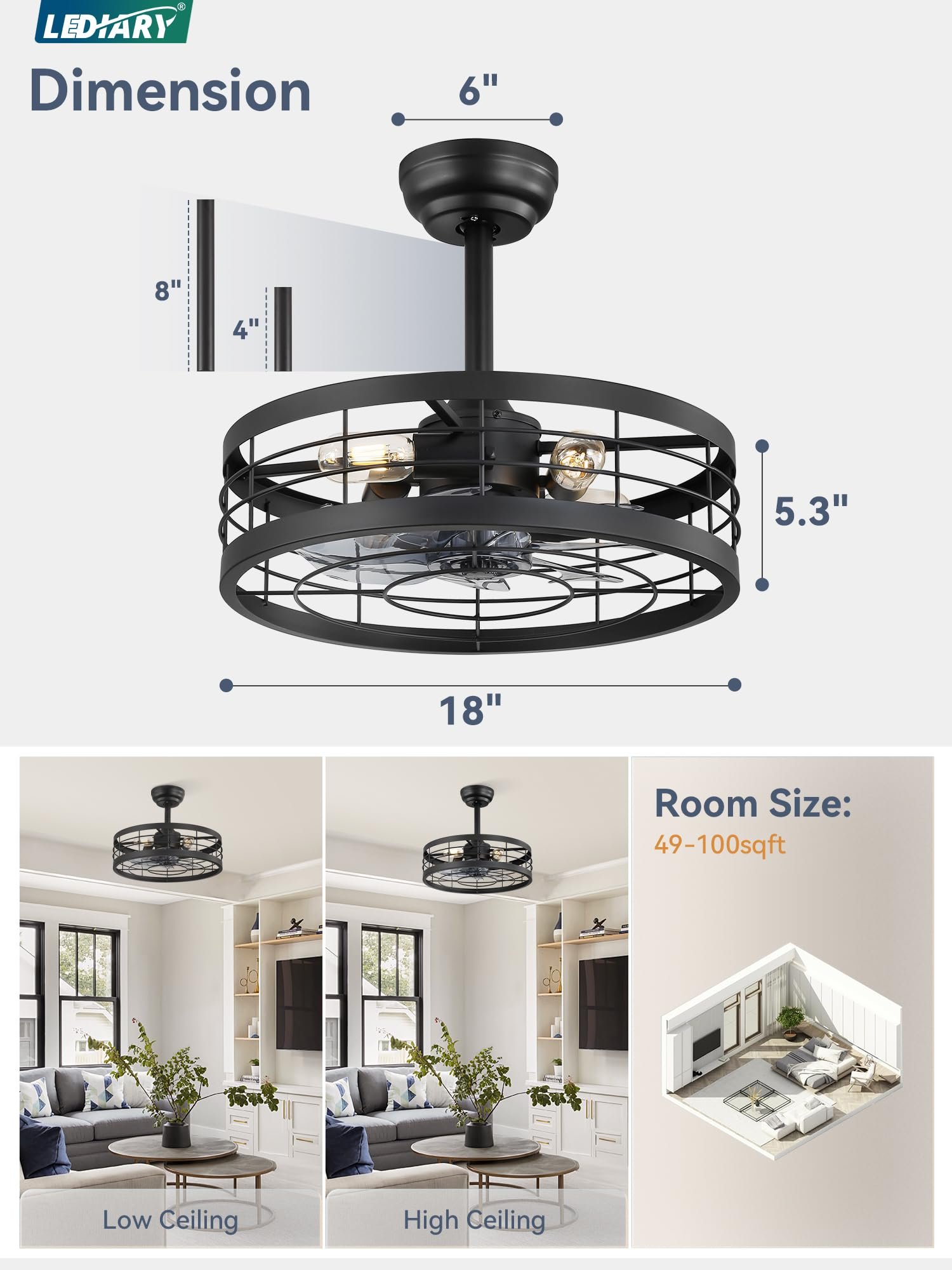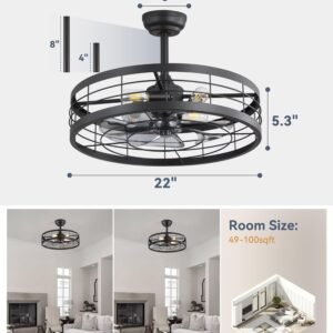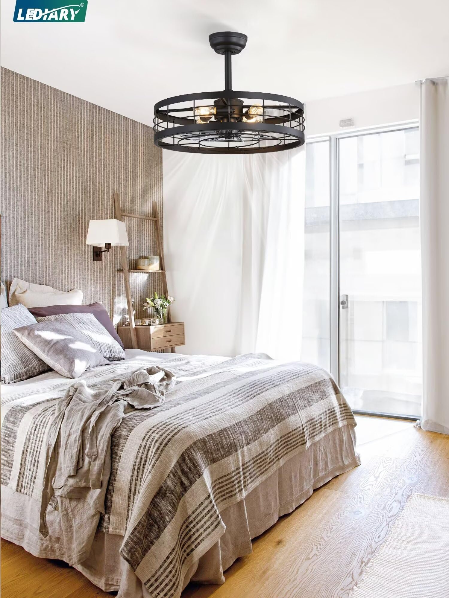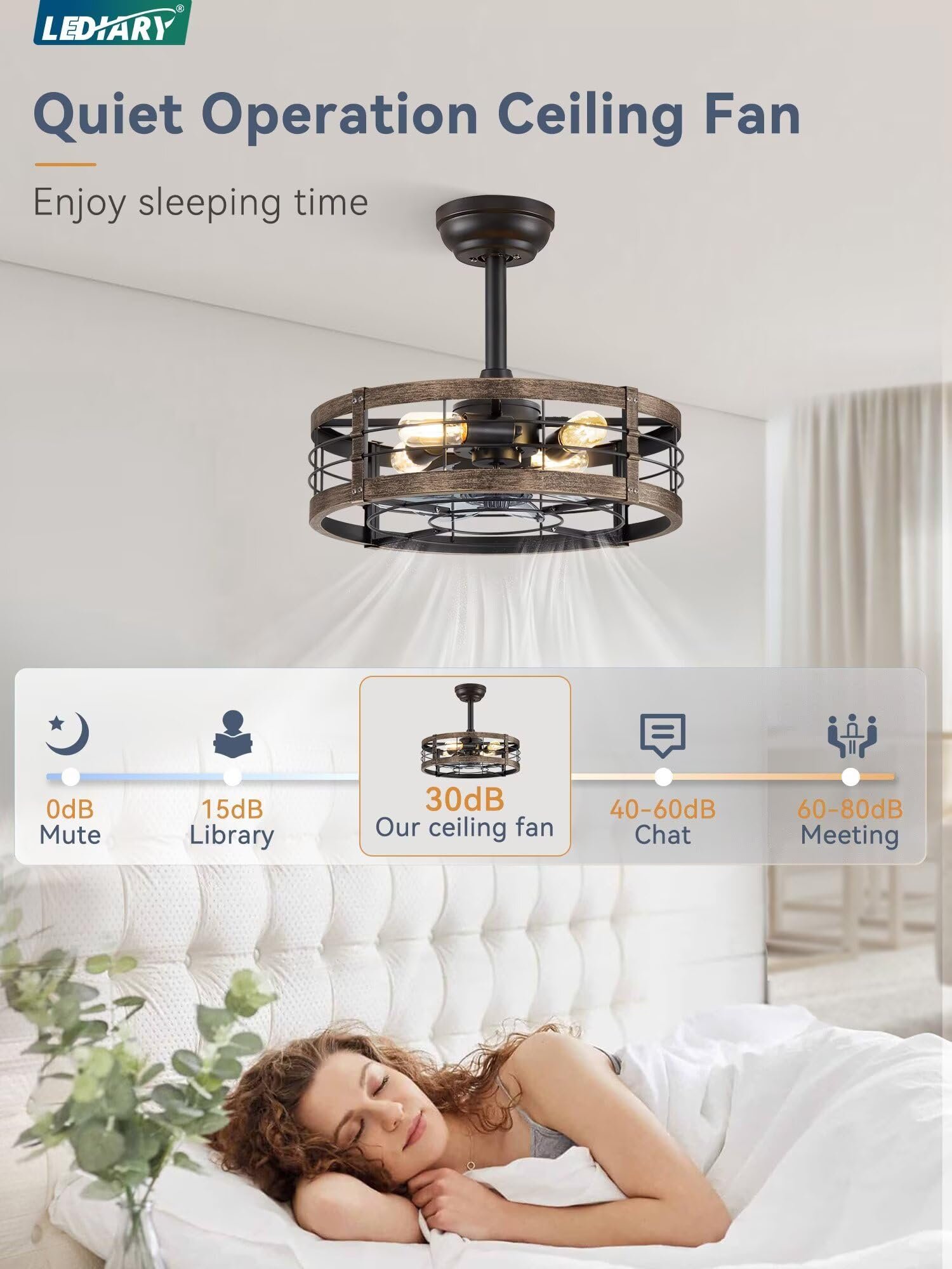 · EASY INSTALLATION: Complete accessories, with detailed instructions, buyers can quickly install and enjoy the comfort brought by the caged ceiling fan with light