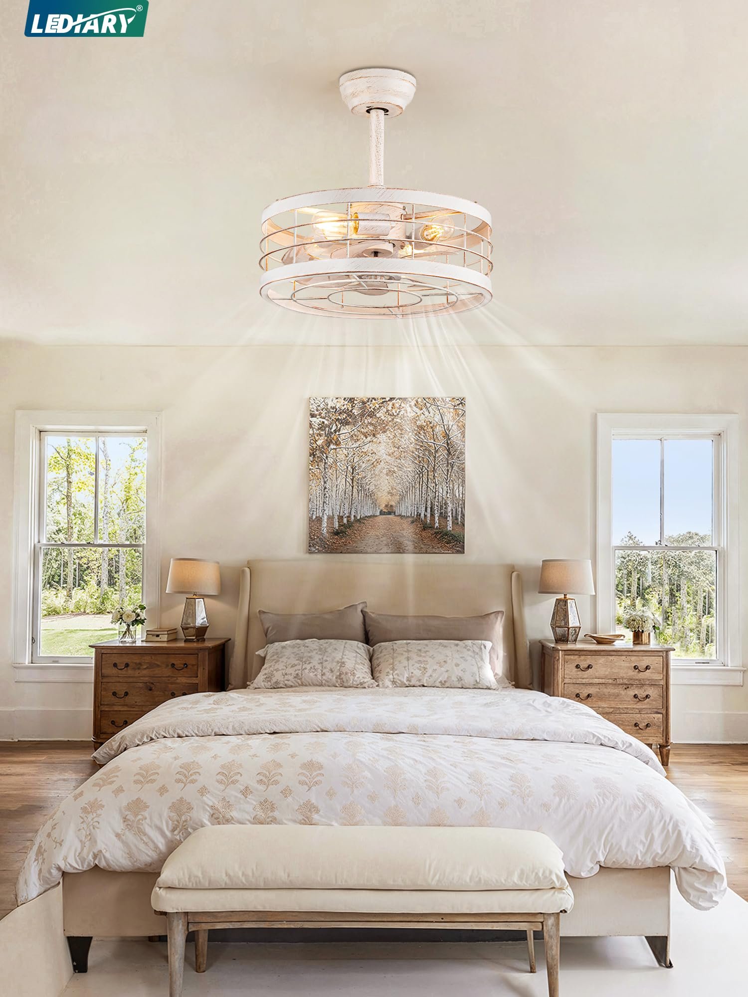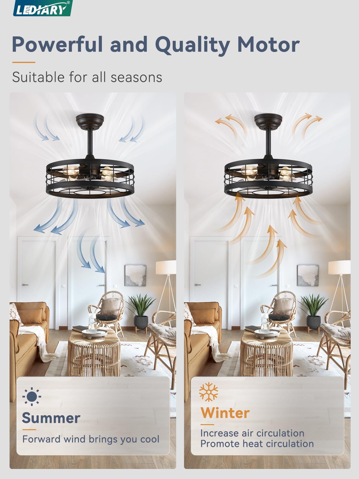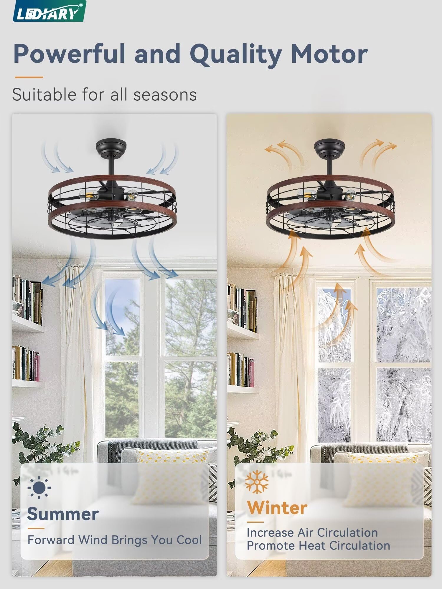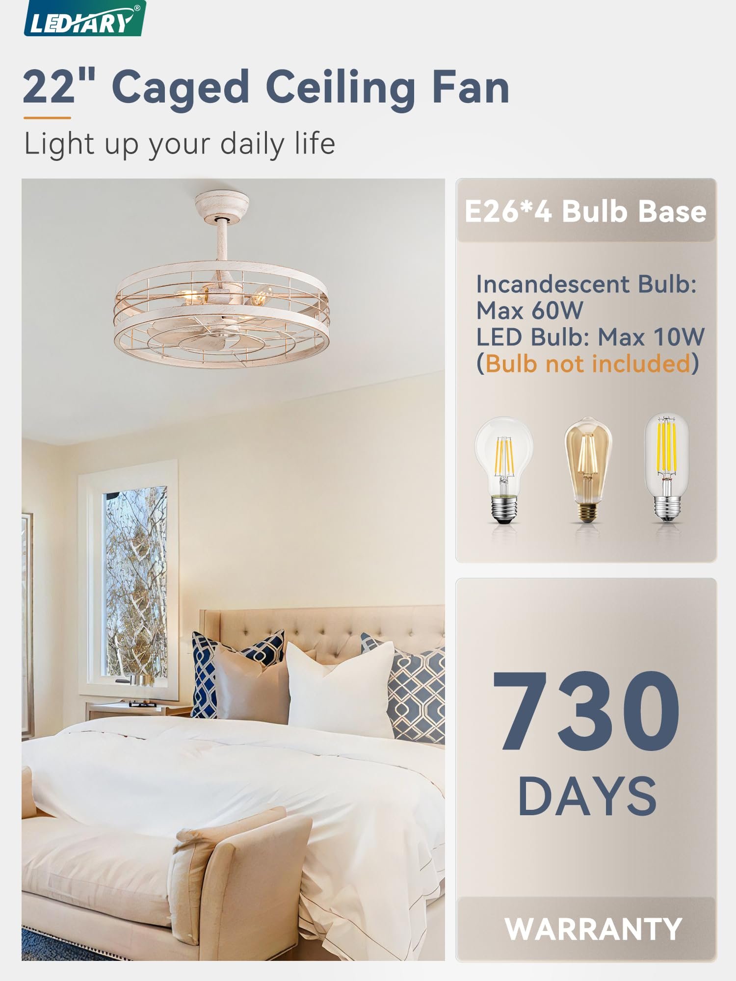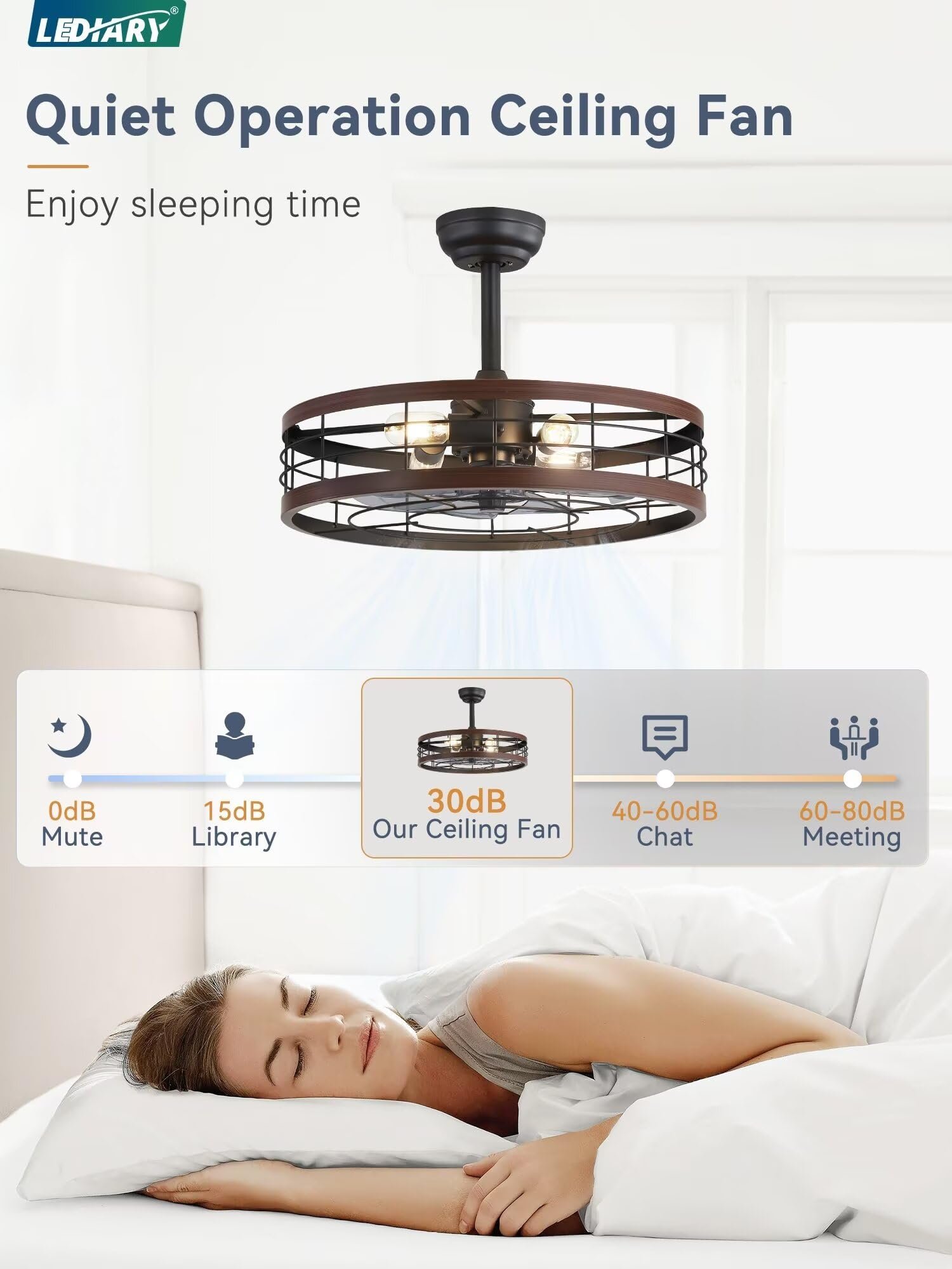 · EASY INSTALLATION: Complete accessories, with detailed instructions, buyers can quickly install and enjoy the comfort brought by the caged ceiling fan with light