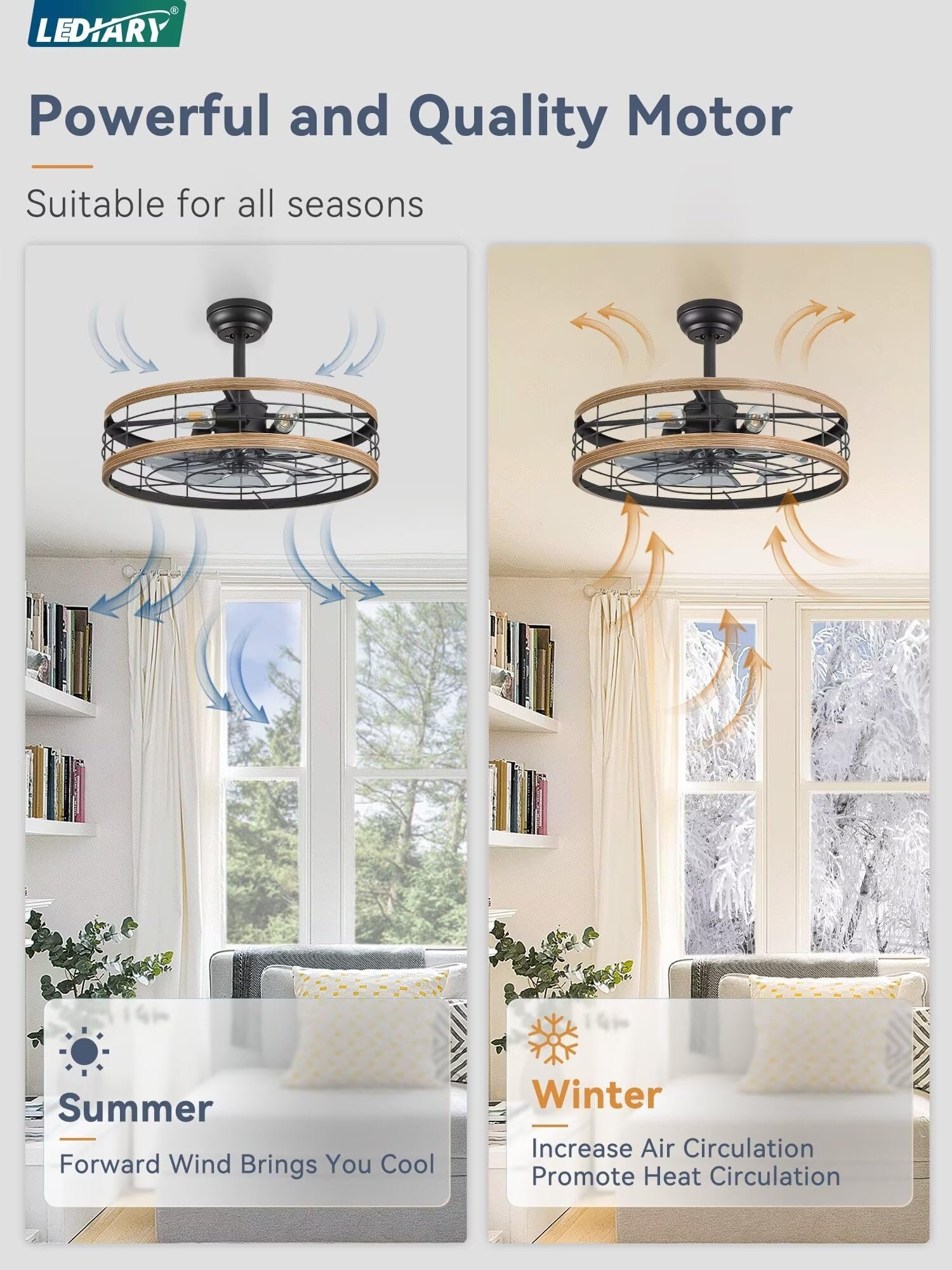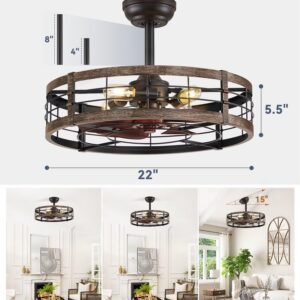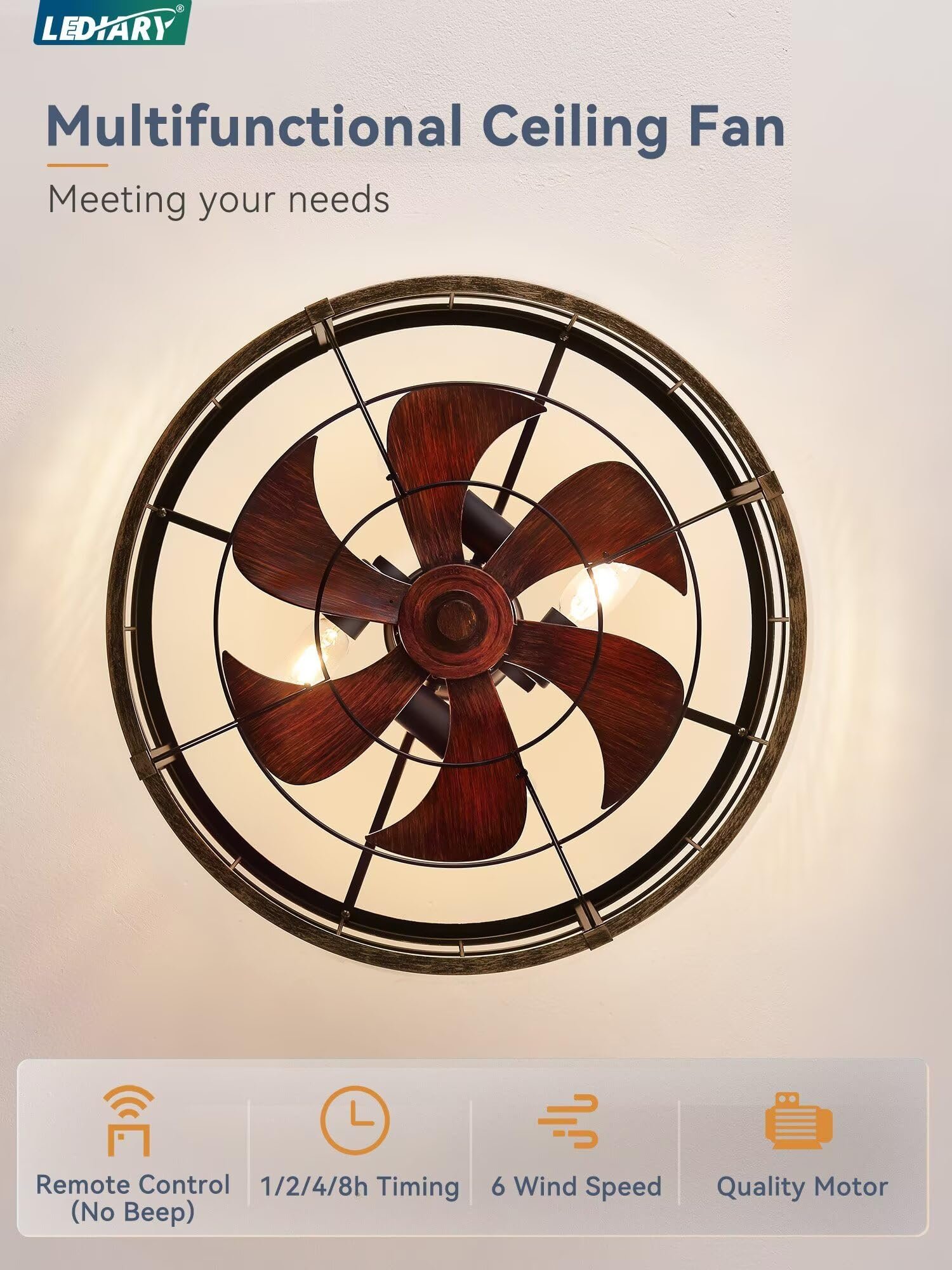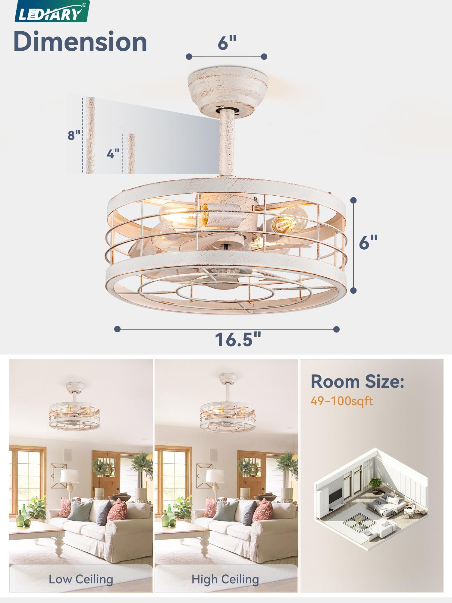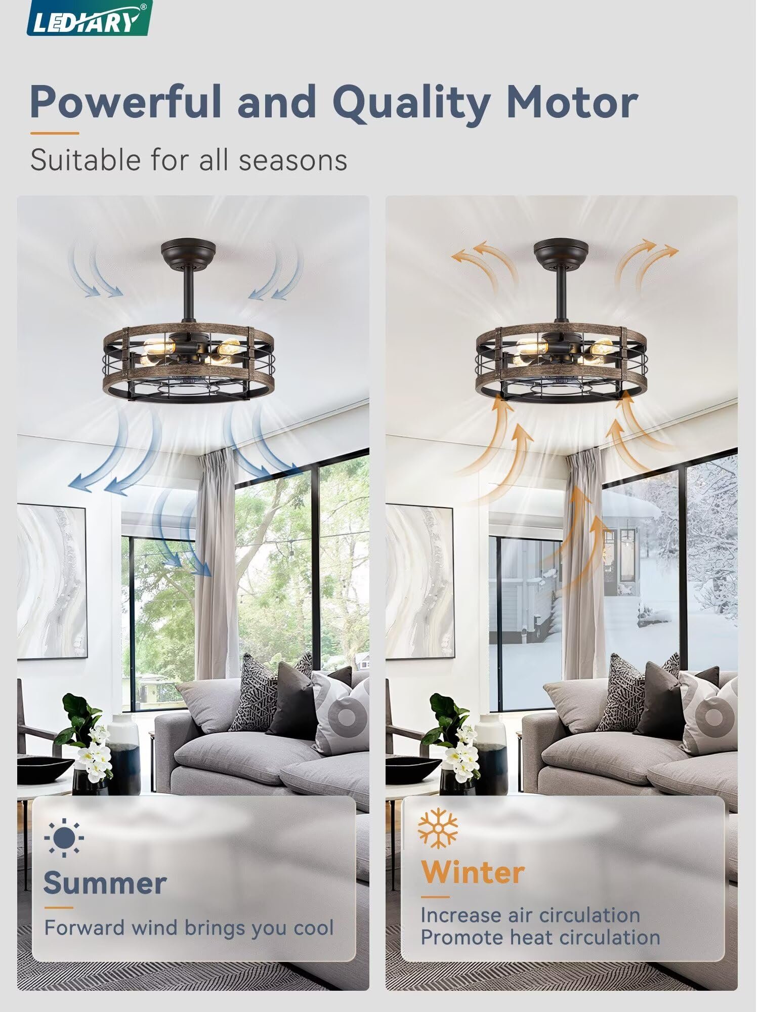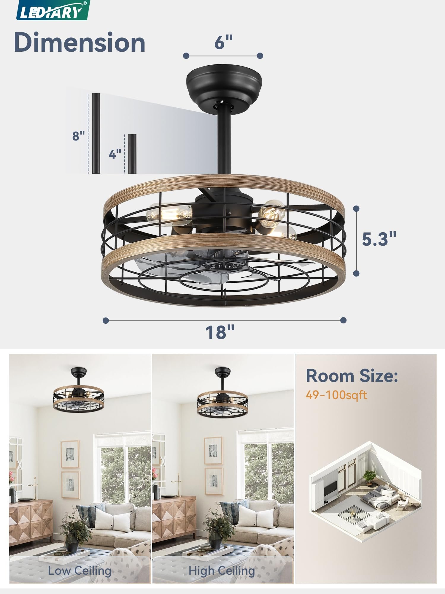· EASY INSTALLATION: Complete accessories, with detailed instructions, buyers can quickly install and enjoy the comfort brought by the caged ceiling fan with light
