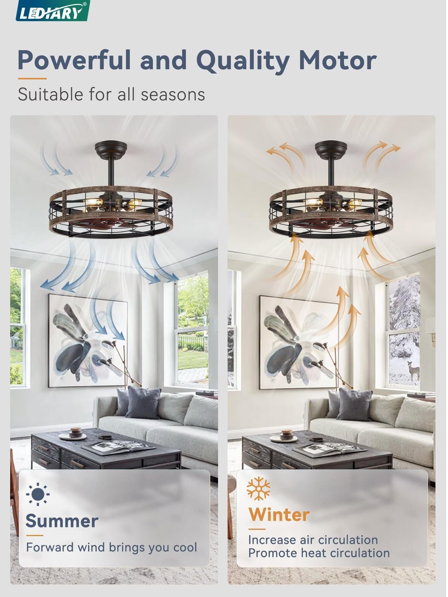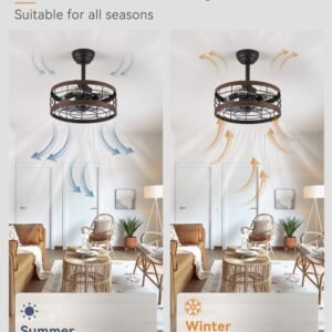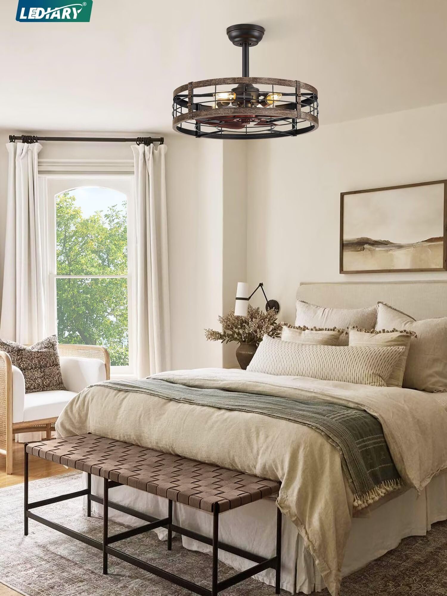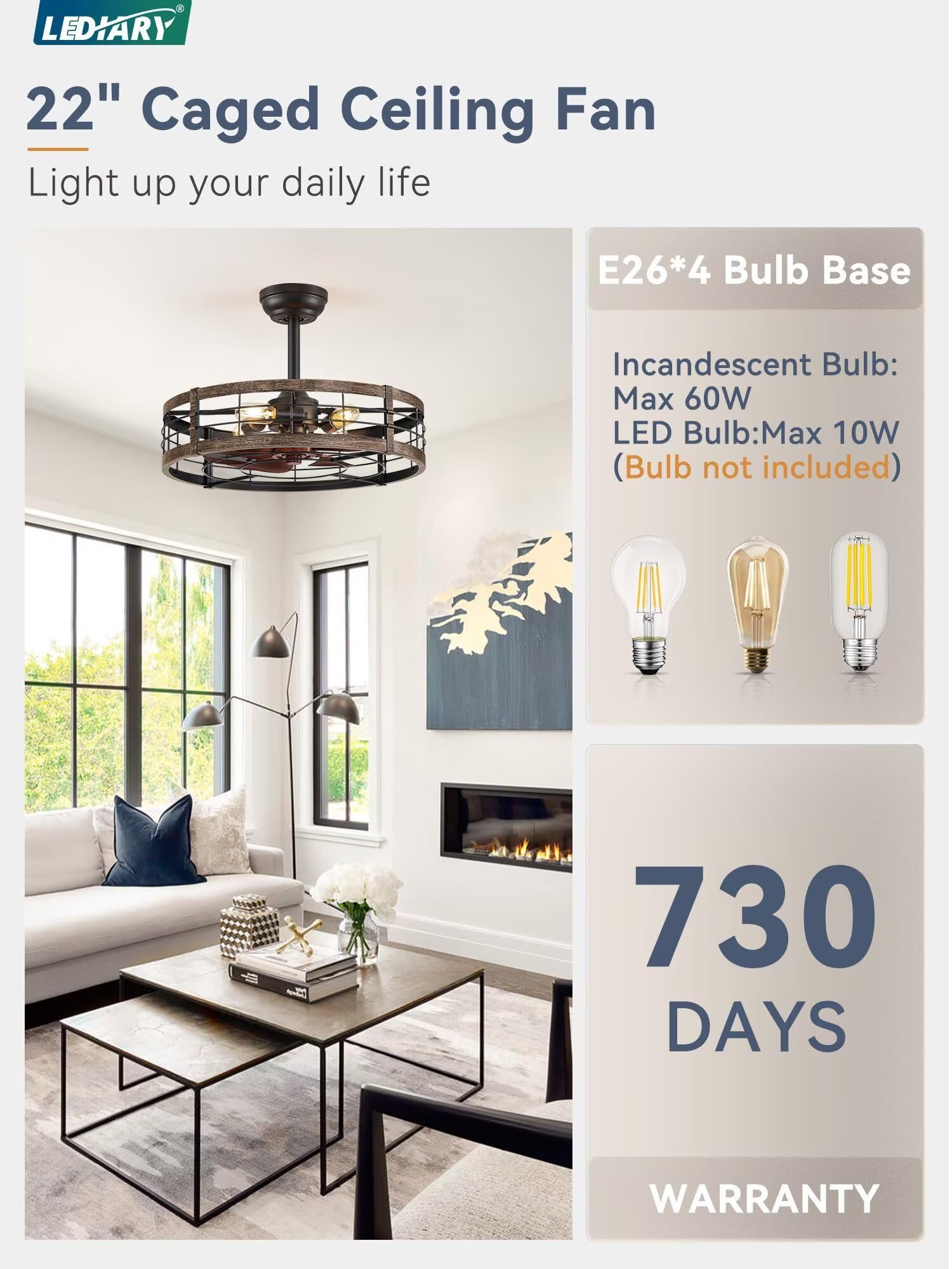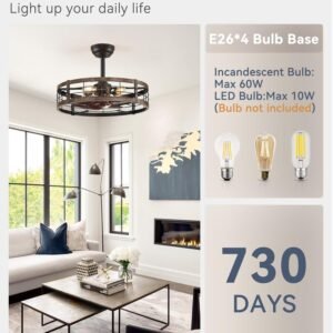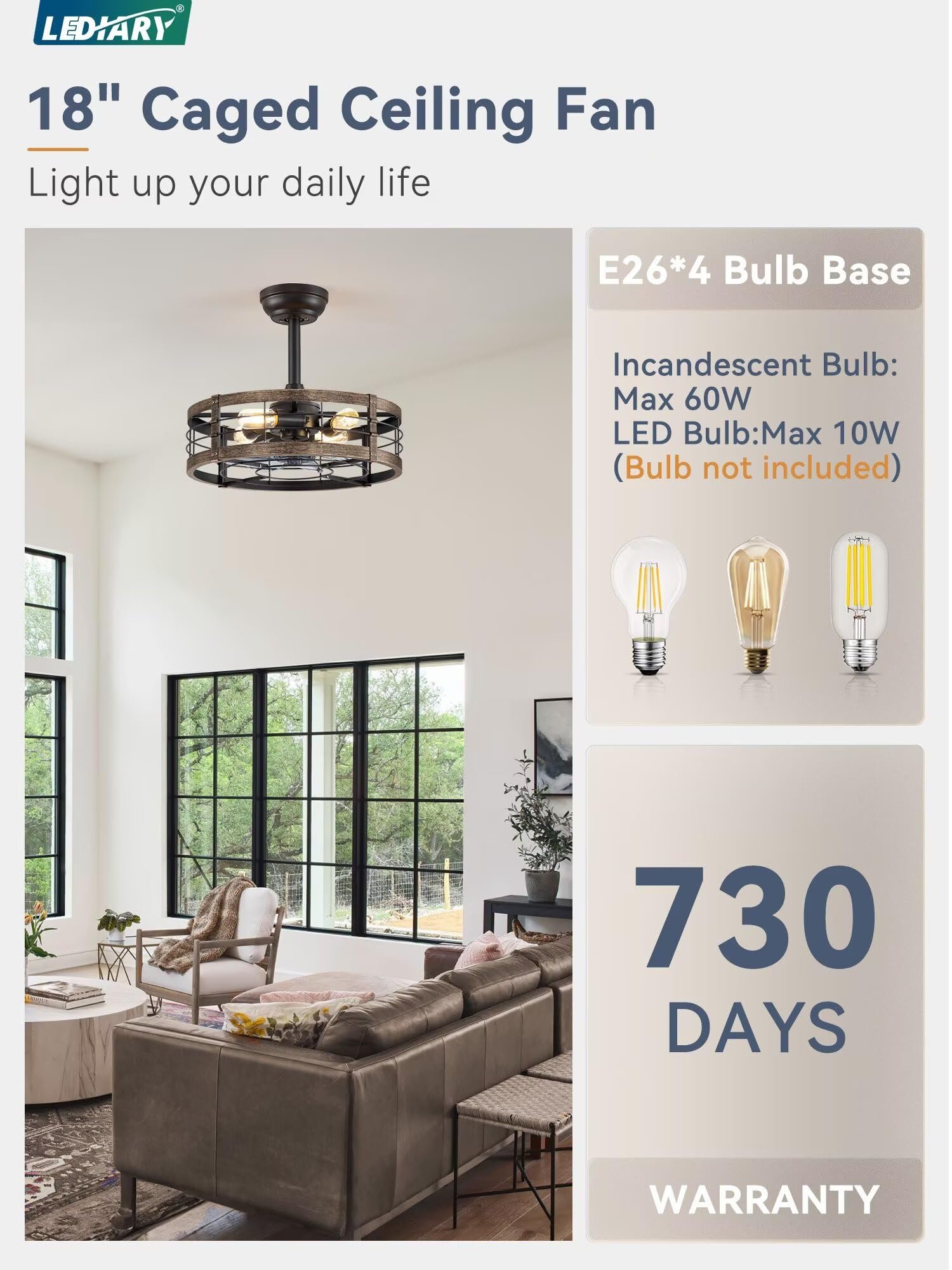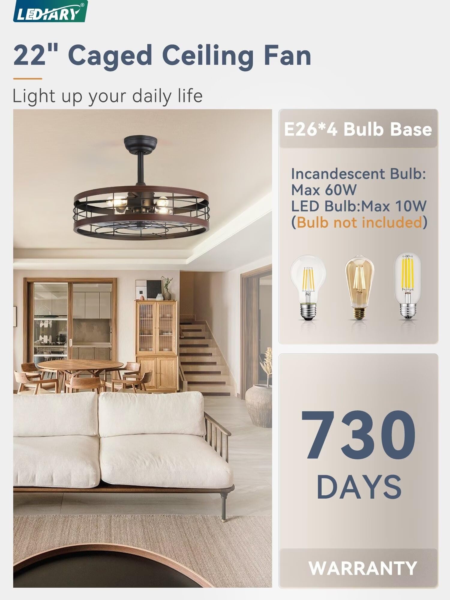 · EASY INSTALLATION: Complete accessories, with detailed instructions, buyers can quickly install and enjoy the comfort brought by the caged ceiling fan with light