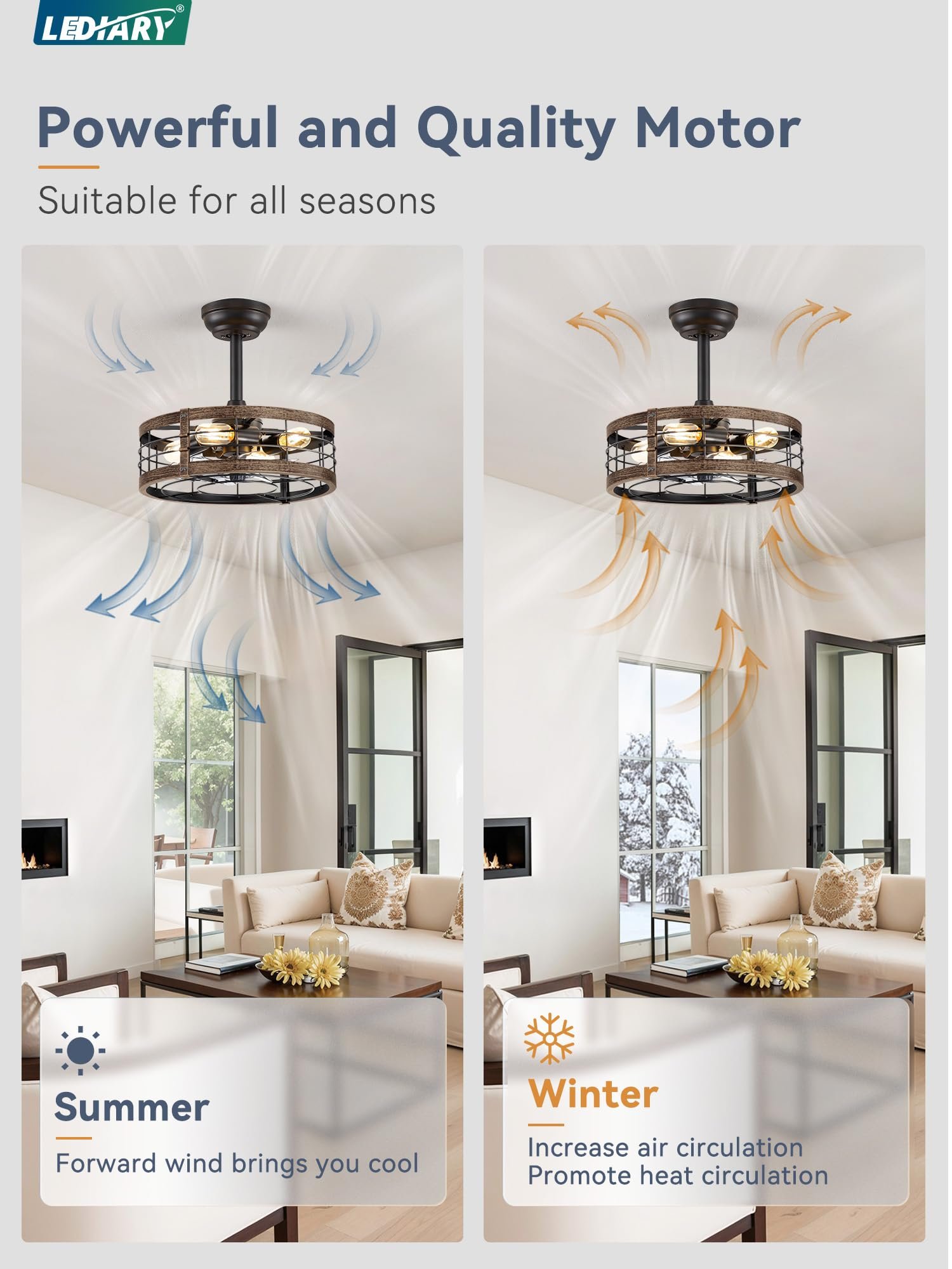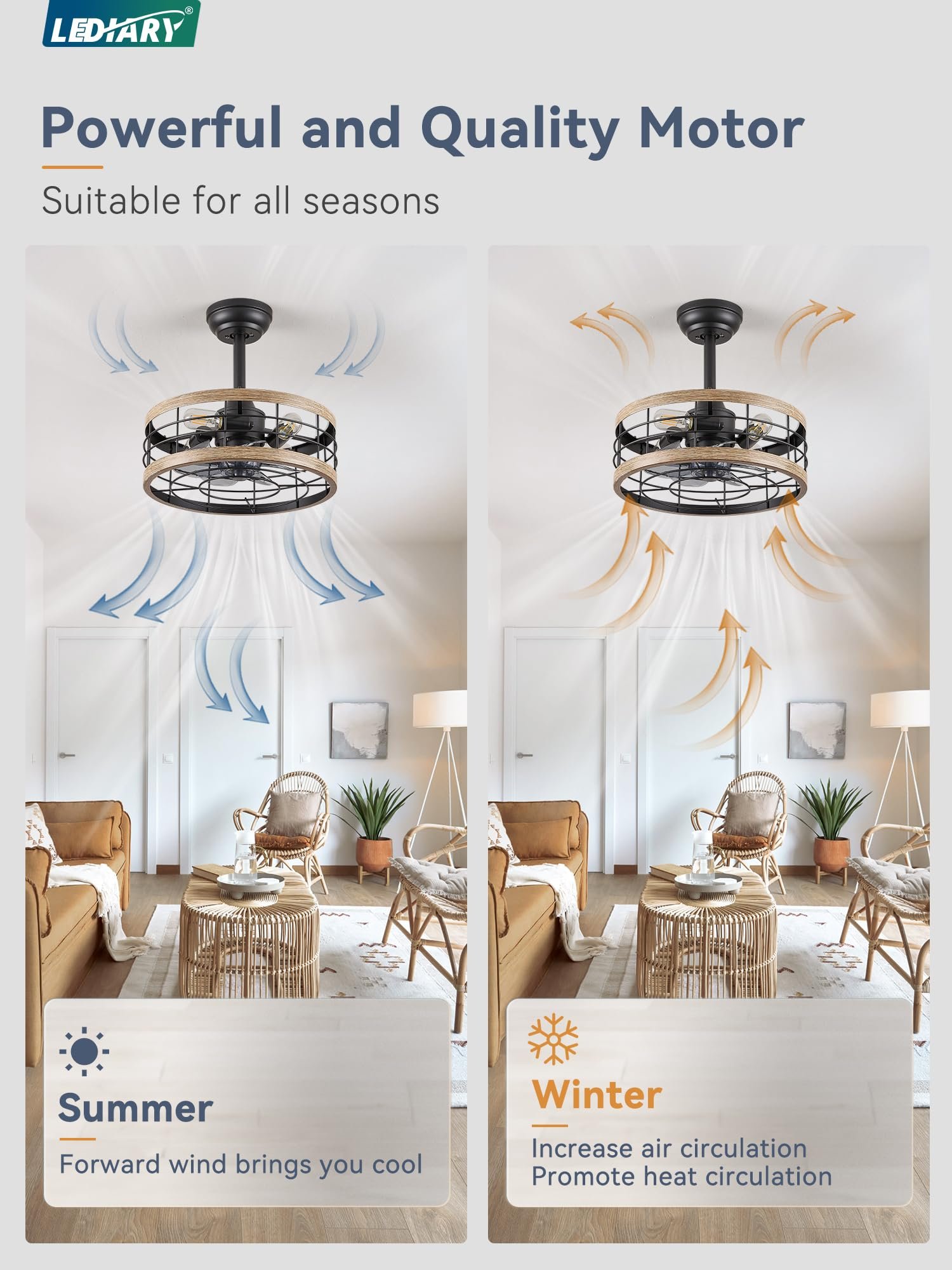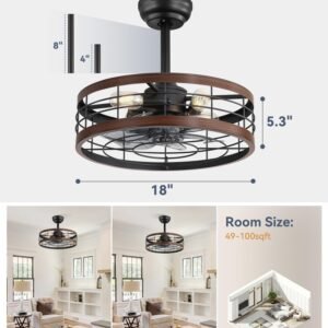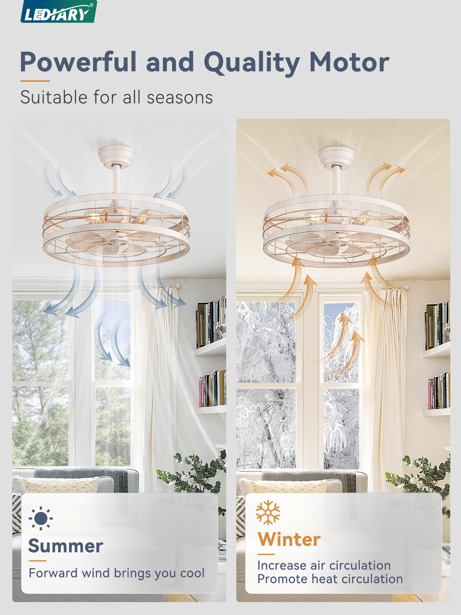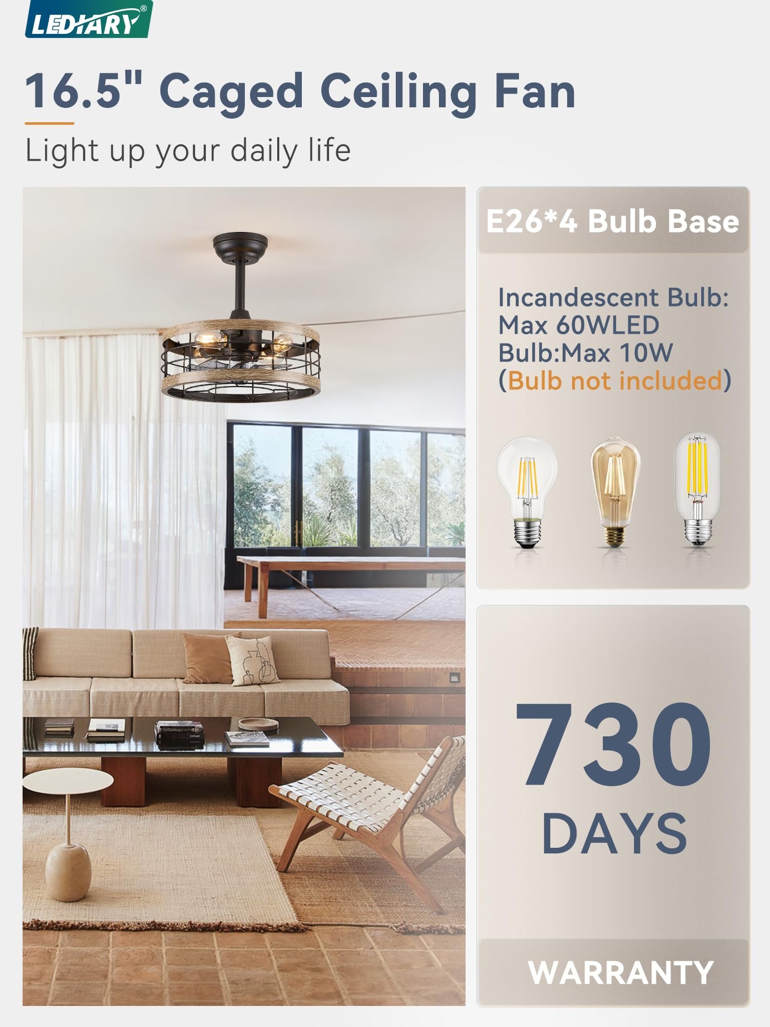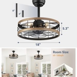 · EASY INSTALLATION: Complete accessories, with detailed instructions, buyers can quickly install and enjoy the comfort brought by the caged ceiling fan with light