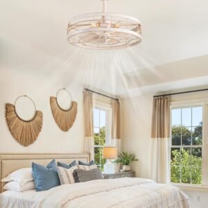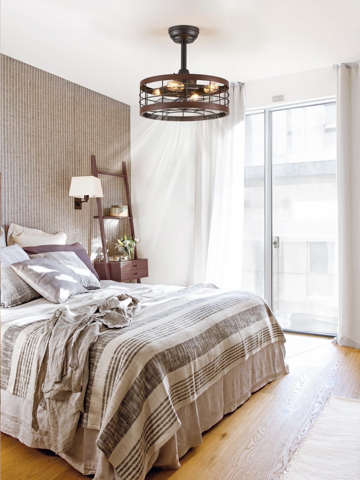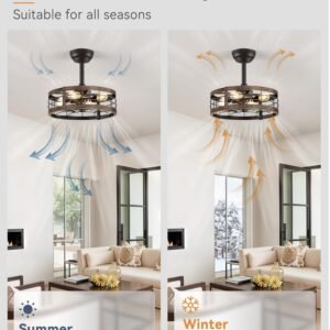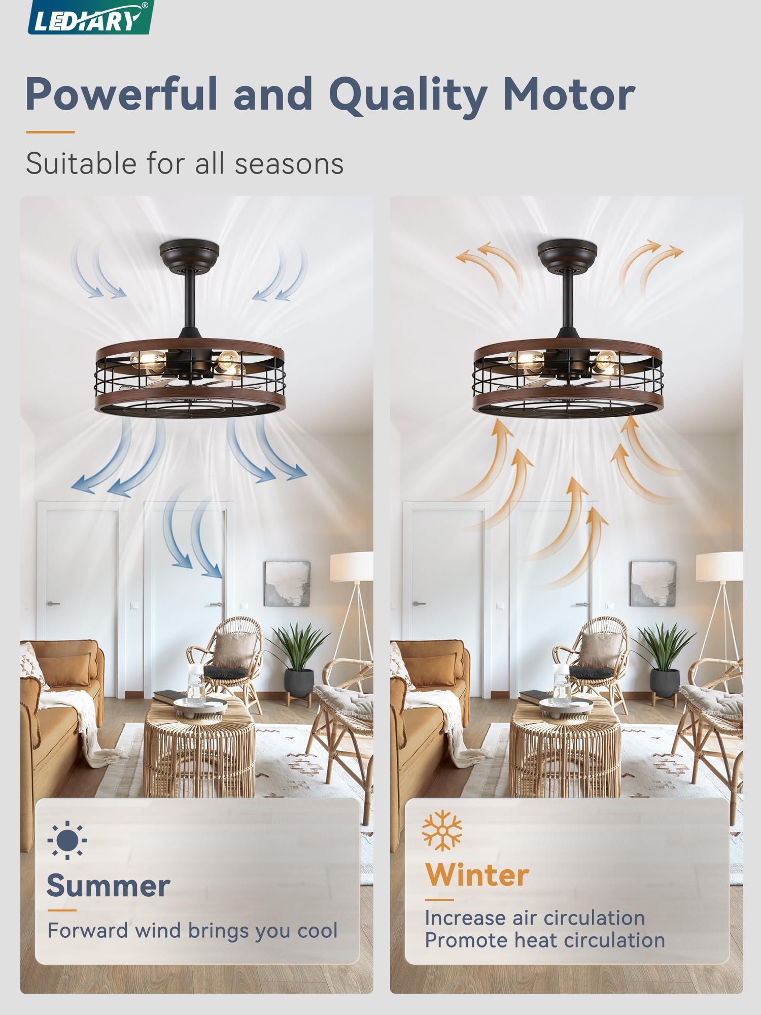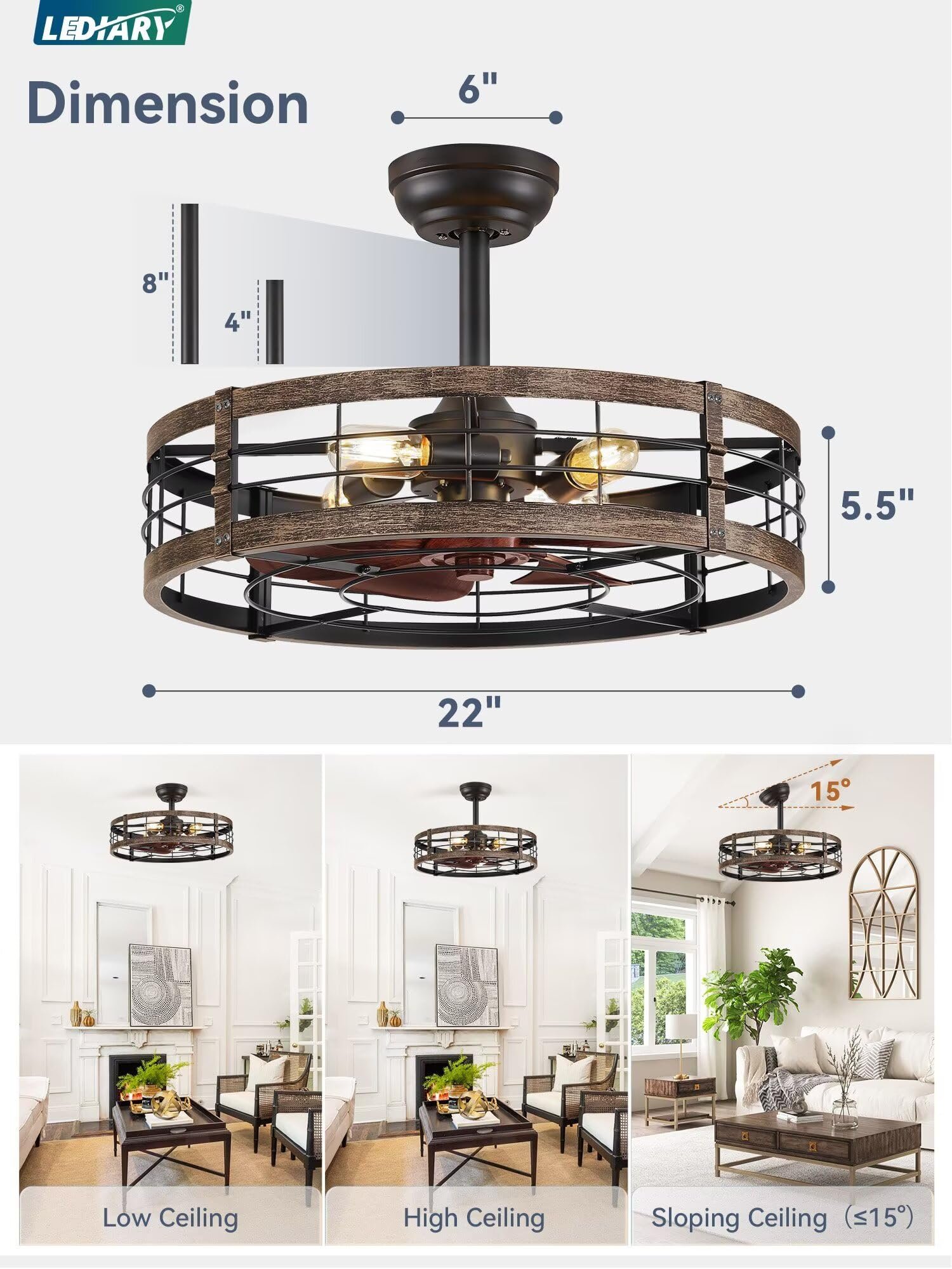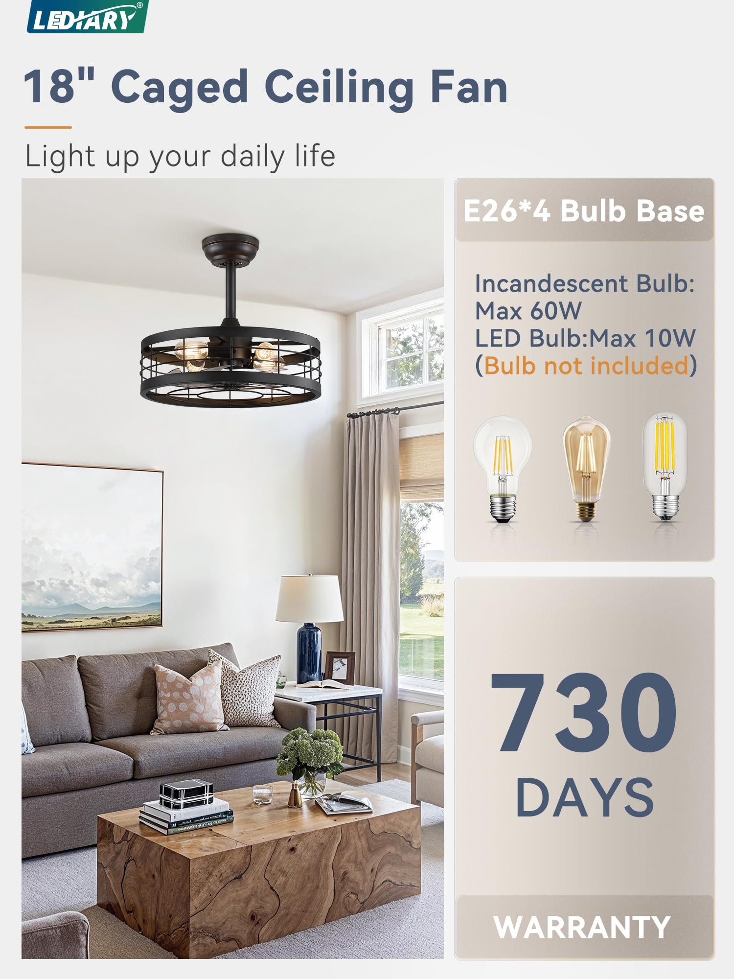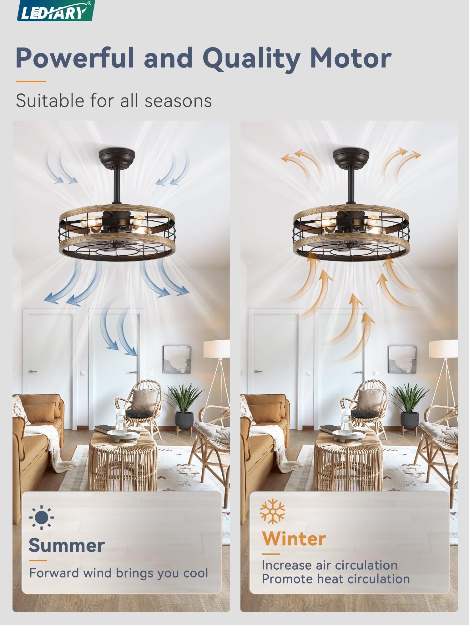 · EASY INSTALLATION: Complete accessories, with detailed instructions, buyers can quickly install and enjoy the comfort brought by the caged ceiling fan with light