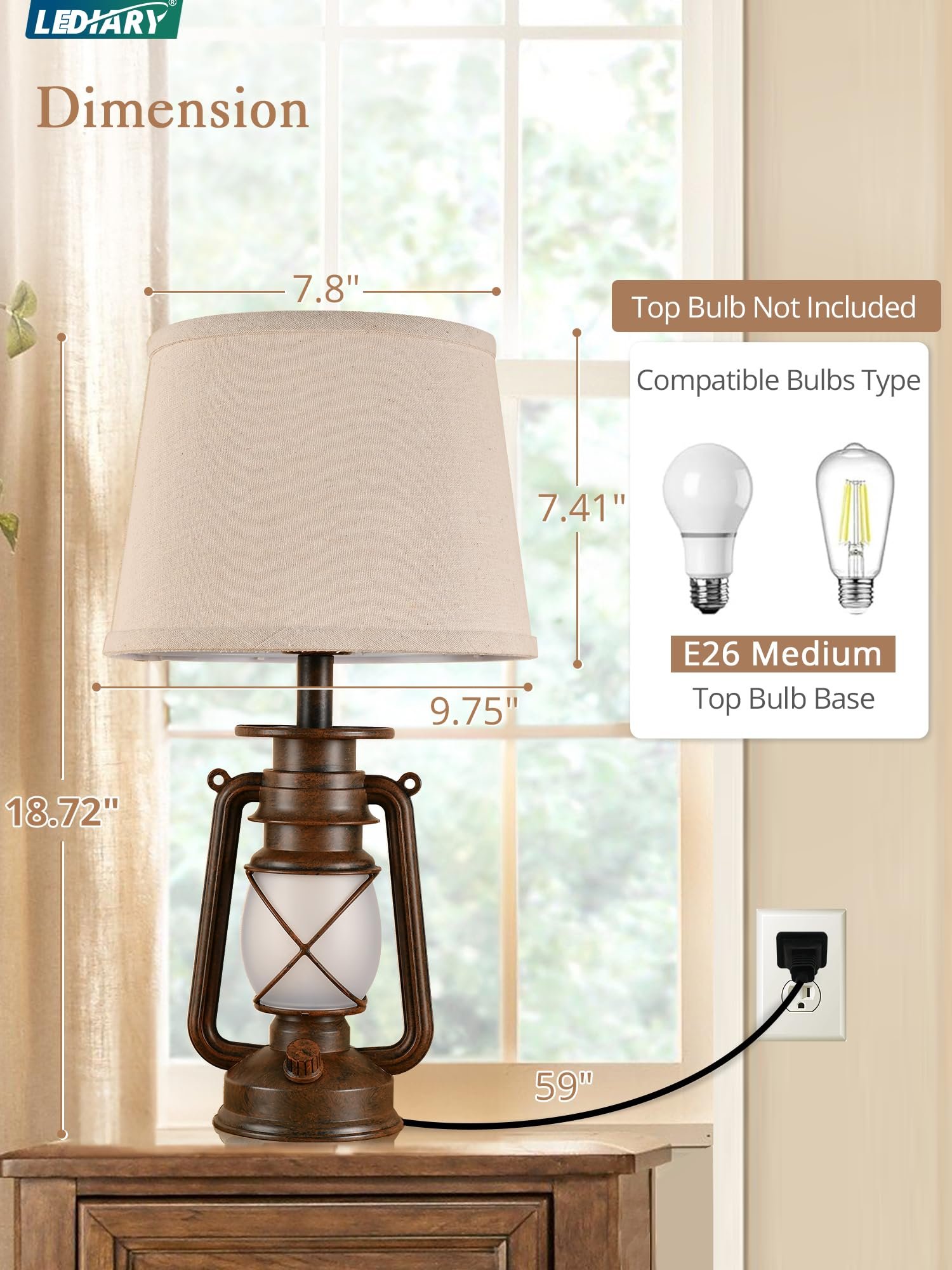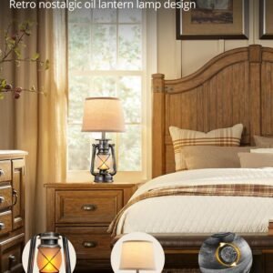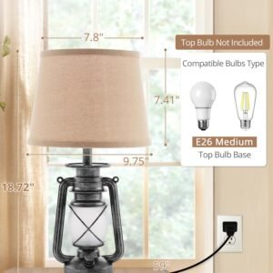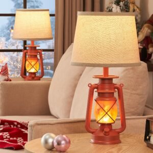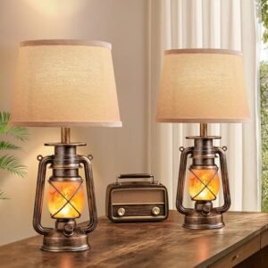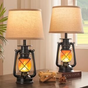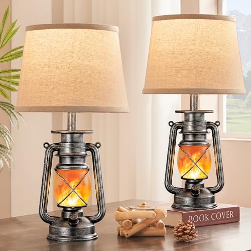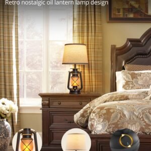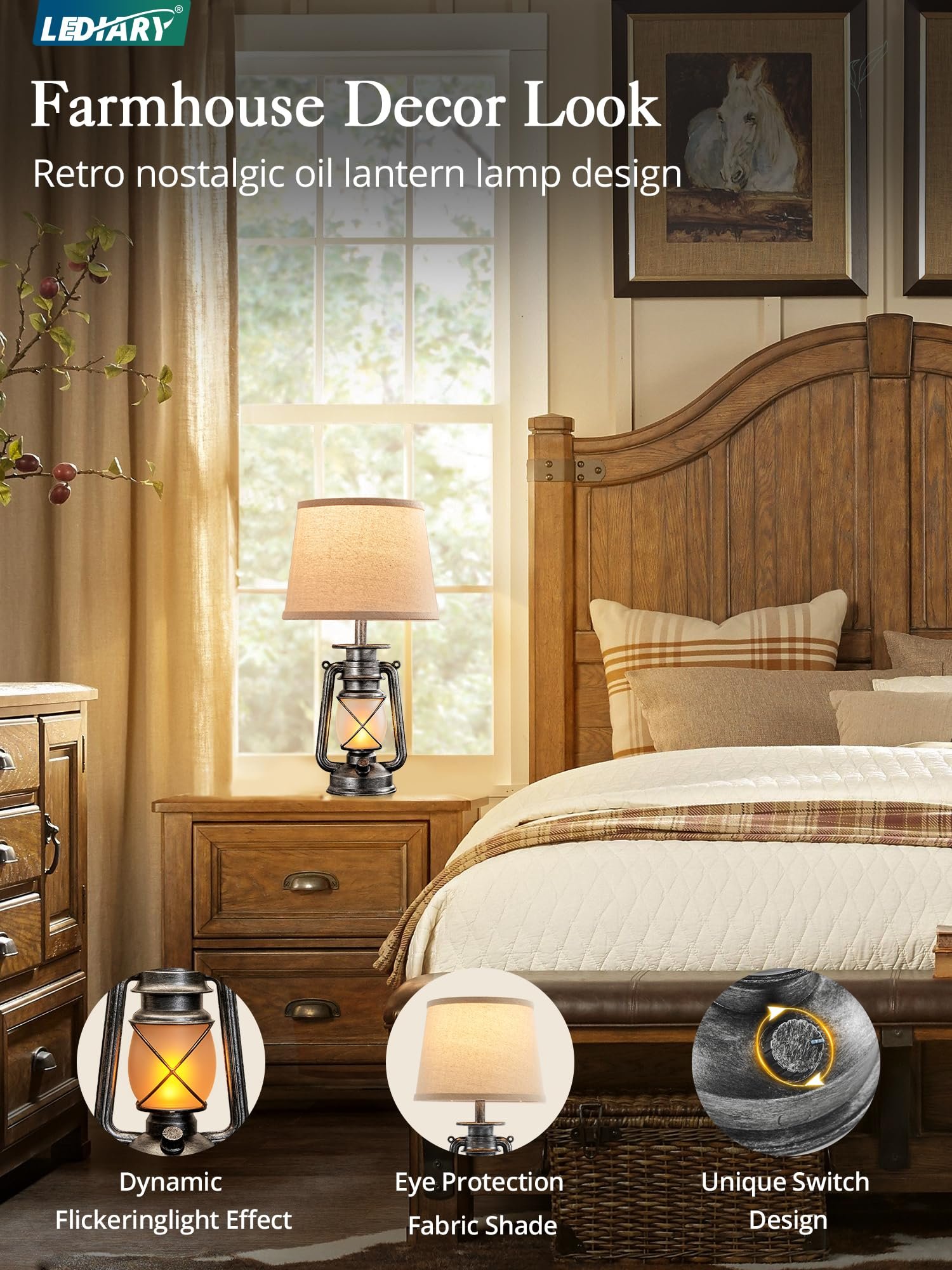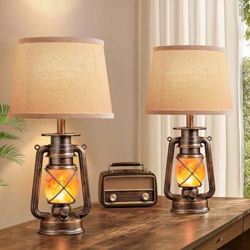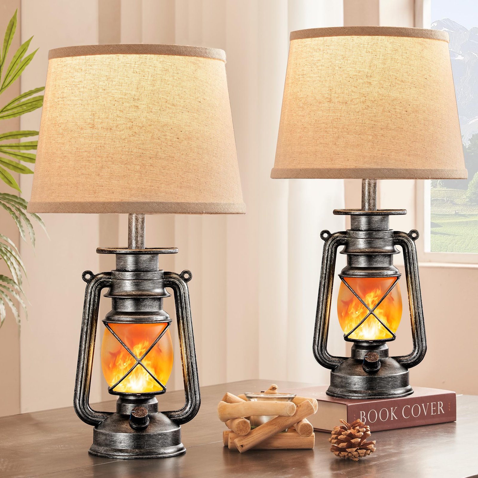 18.72″ LED Vintage Lantern Flickering Flame Table Lamps for Bedrooms Set of 2, Small Farmhouse Rustic Vintage End Table Lamps