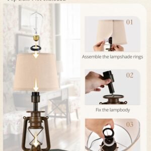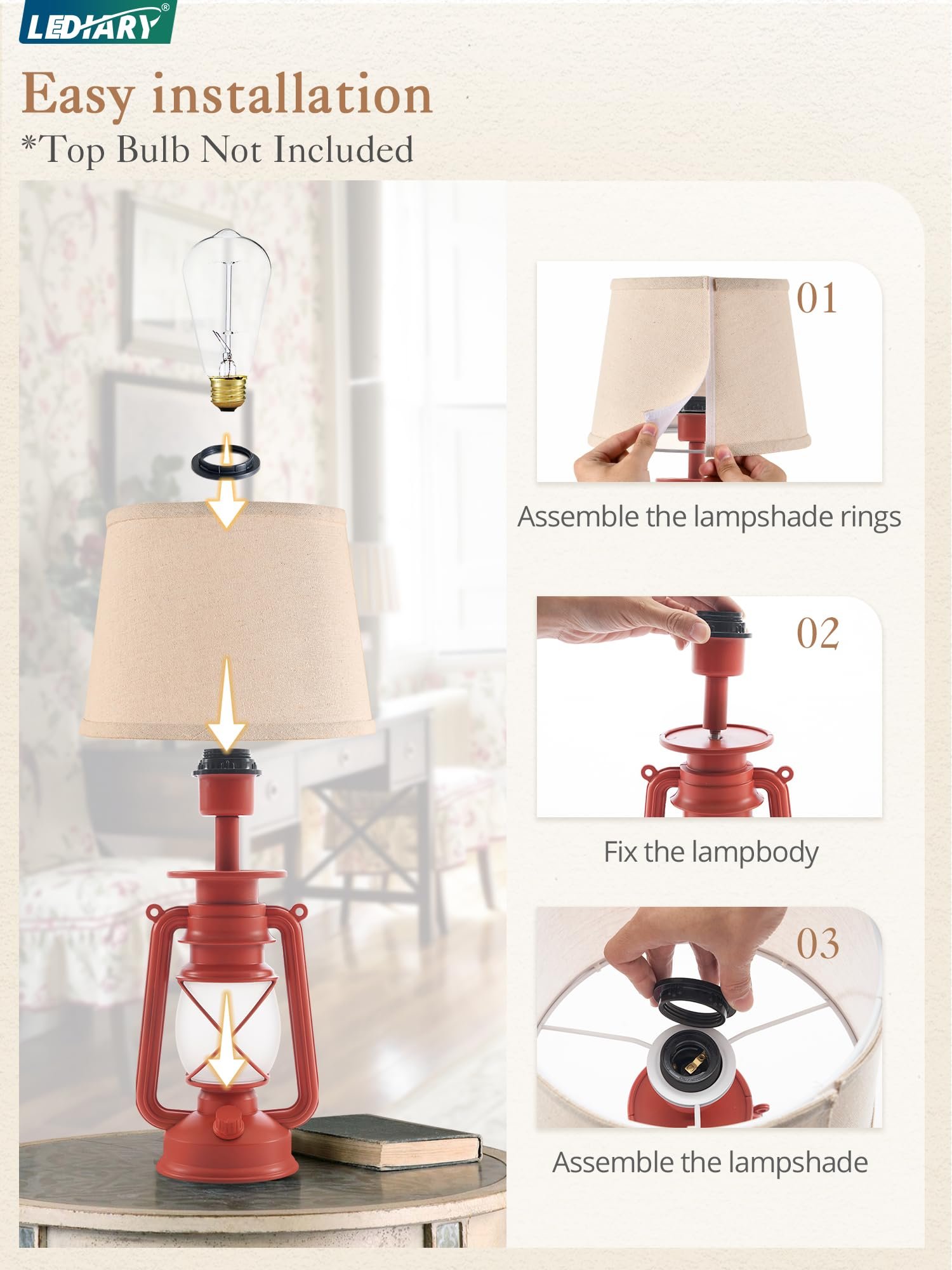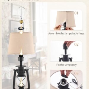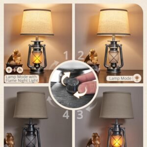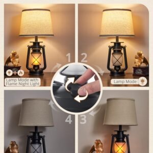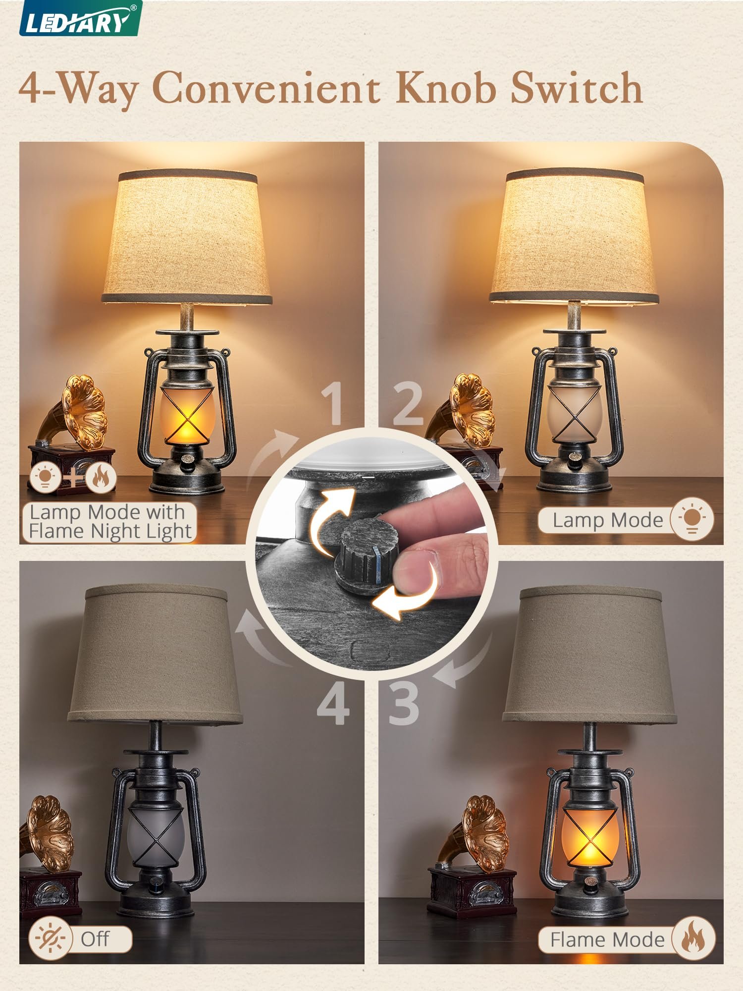· Convenient to Use: The rotary switch of this farmhouse table lamp is set in the protruding circle of its base. Our design offers a user-friendly switching sequence: Both Lights On, Top Light On, Flame Night Light On, Both Lights Off. Providing Perfect for gentle bedtime lighting and a more comfortable experience. It is also very easy to operate for the children and the elderly for families