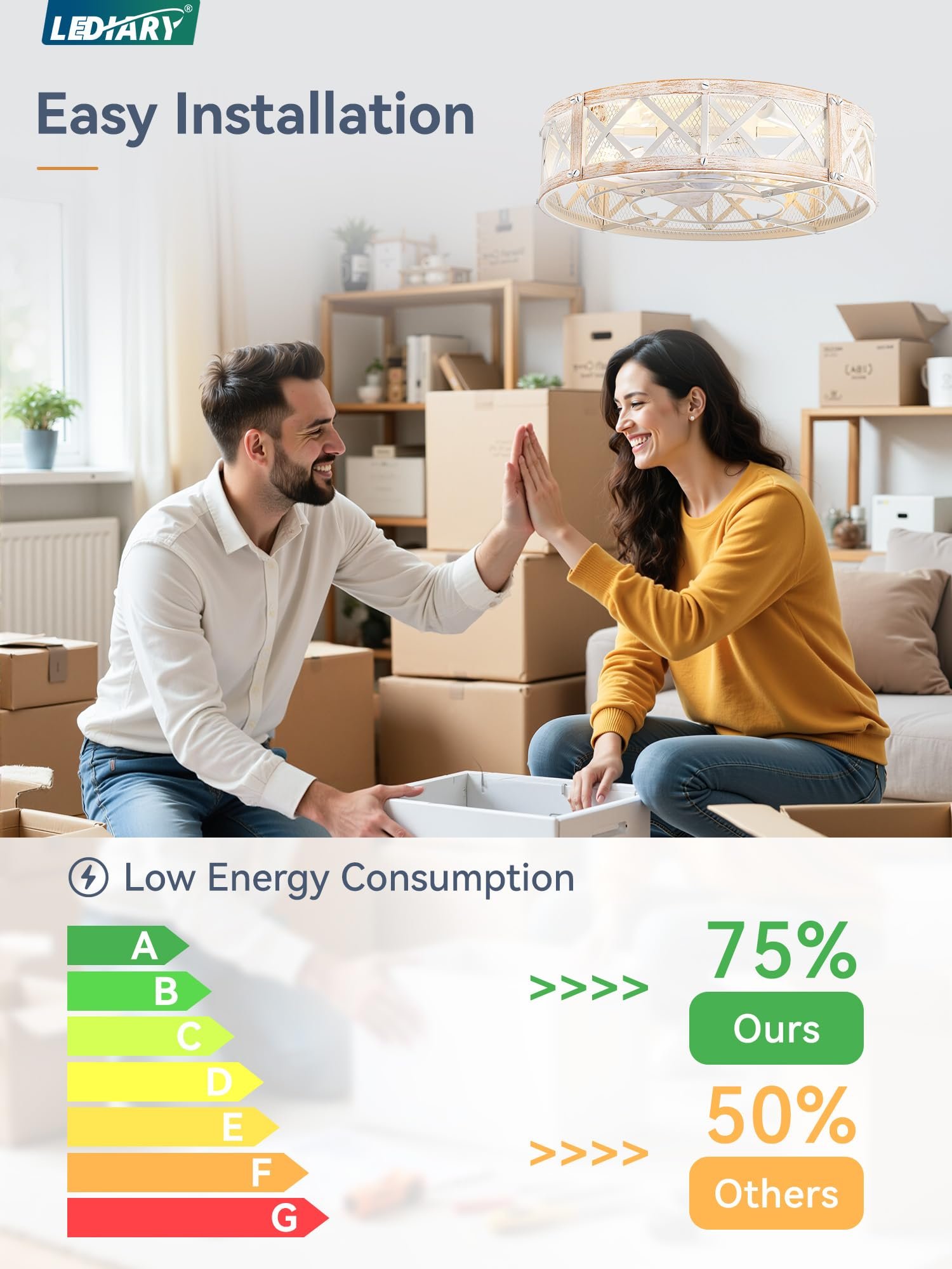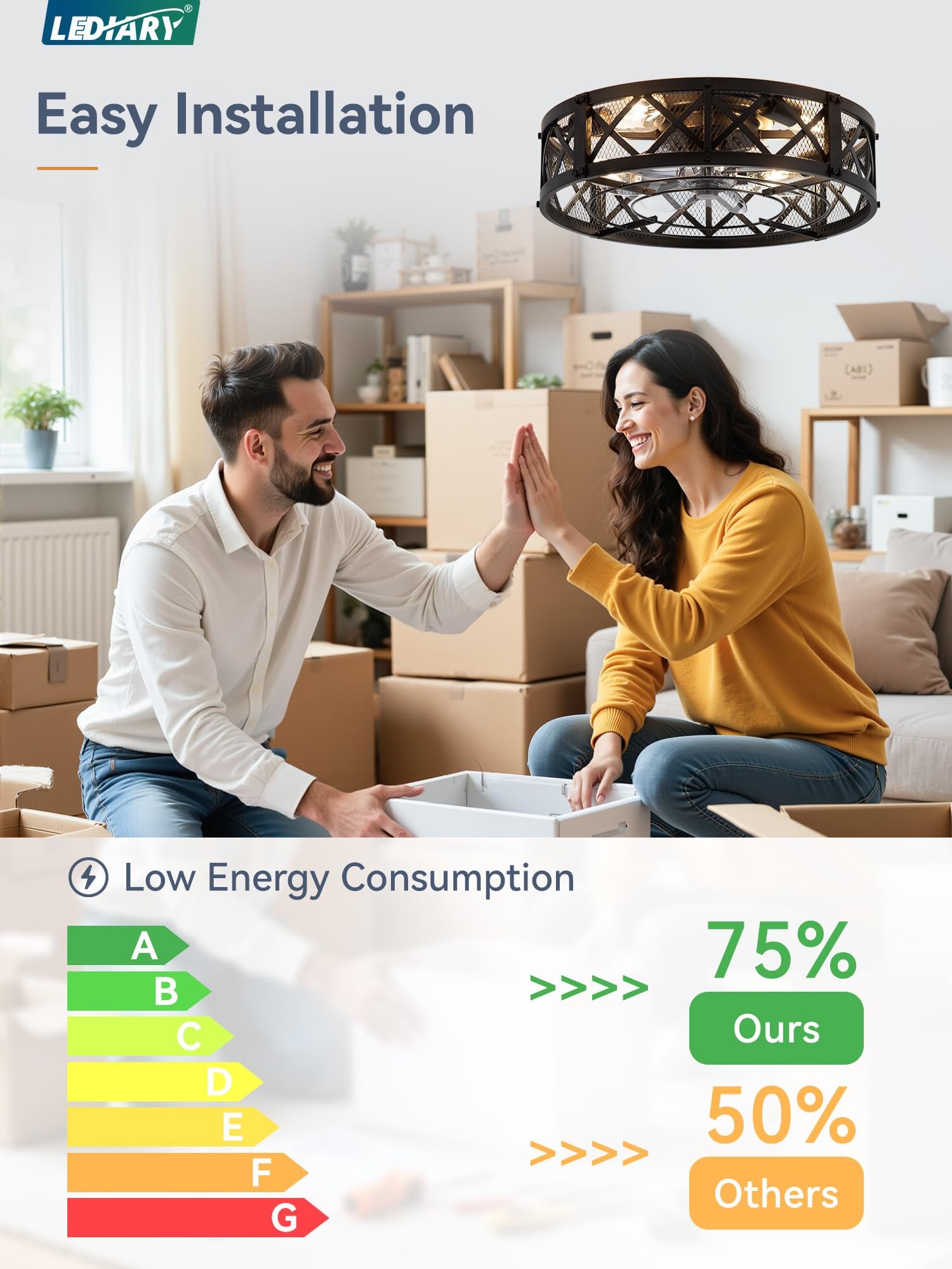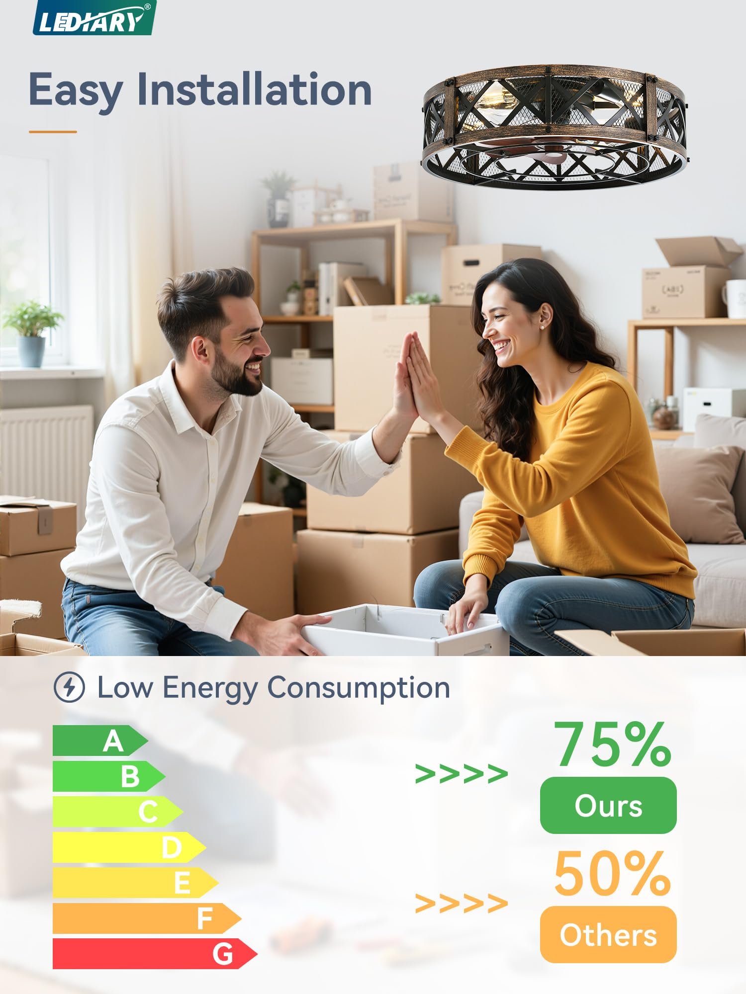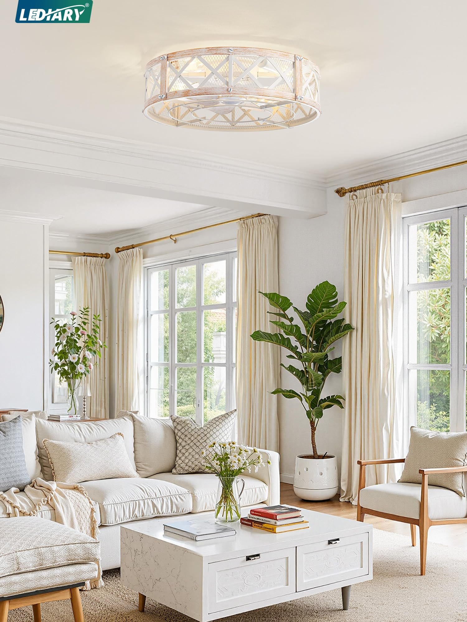 · 【Dual Smart Control】The farmhouse caged ceiling fan offers both APP and remote control options for effortless operation from a distance. The 6-speed settings cater to various scenarios, while the 1/2/4-hour timer allows you to set the auto-off function without leaving your seat, the fan or lighting can be turned on independently. Maintain ideal comfort with ease.