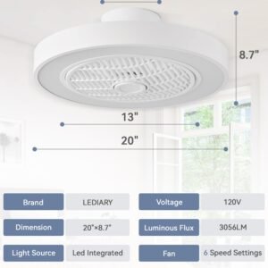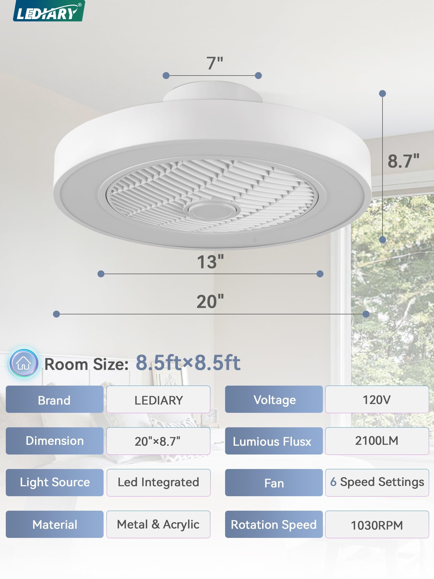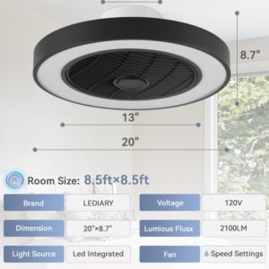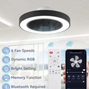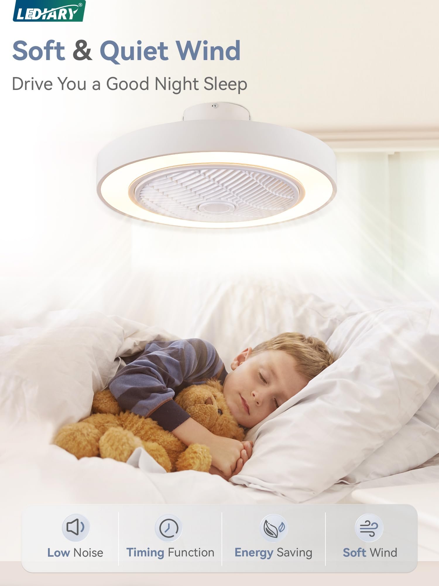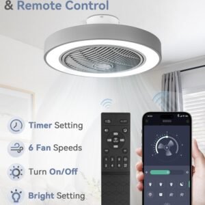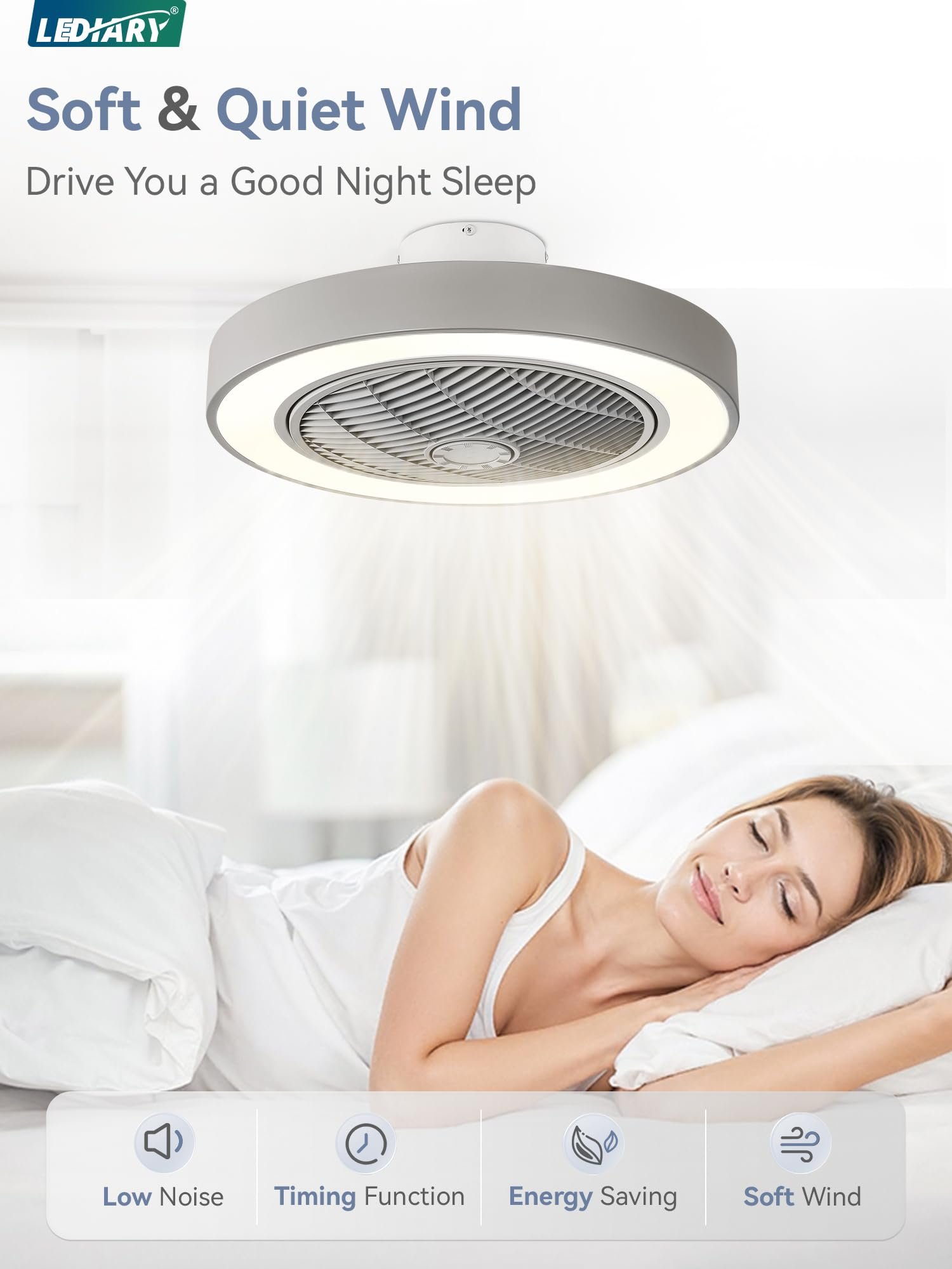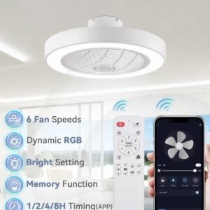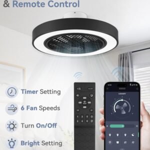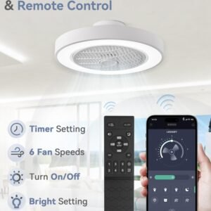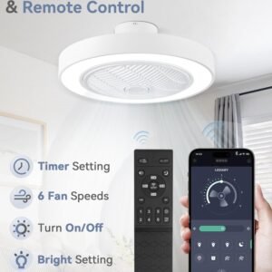 · HIGH QUALITY MOTOR: High quality motor provides powerful air flow and silent performance. The bladeless ceiling fan with light provides you with 6 wind speeds, and the impeller inducer device makes the wind evenly dispersed in a certain range, while with the timing function (1 or 2h), perfectly suitable for sleeping time, aiming to provide you with a comfortable environment