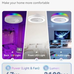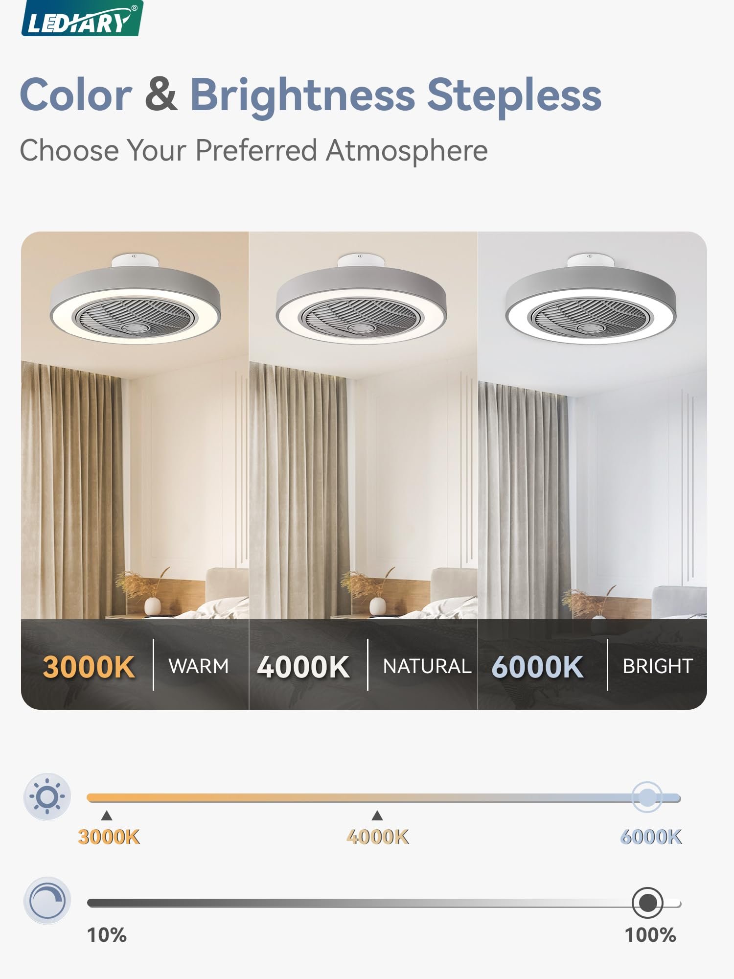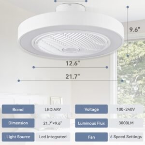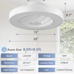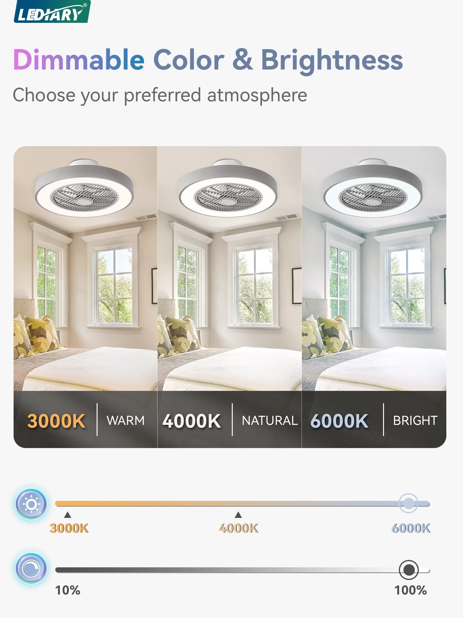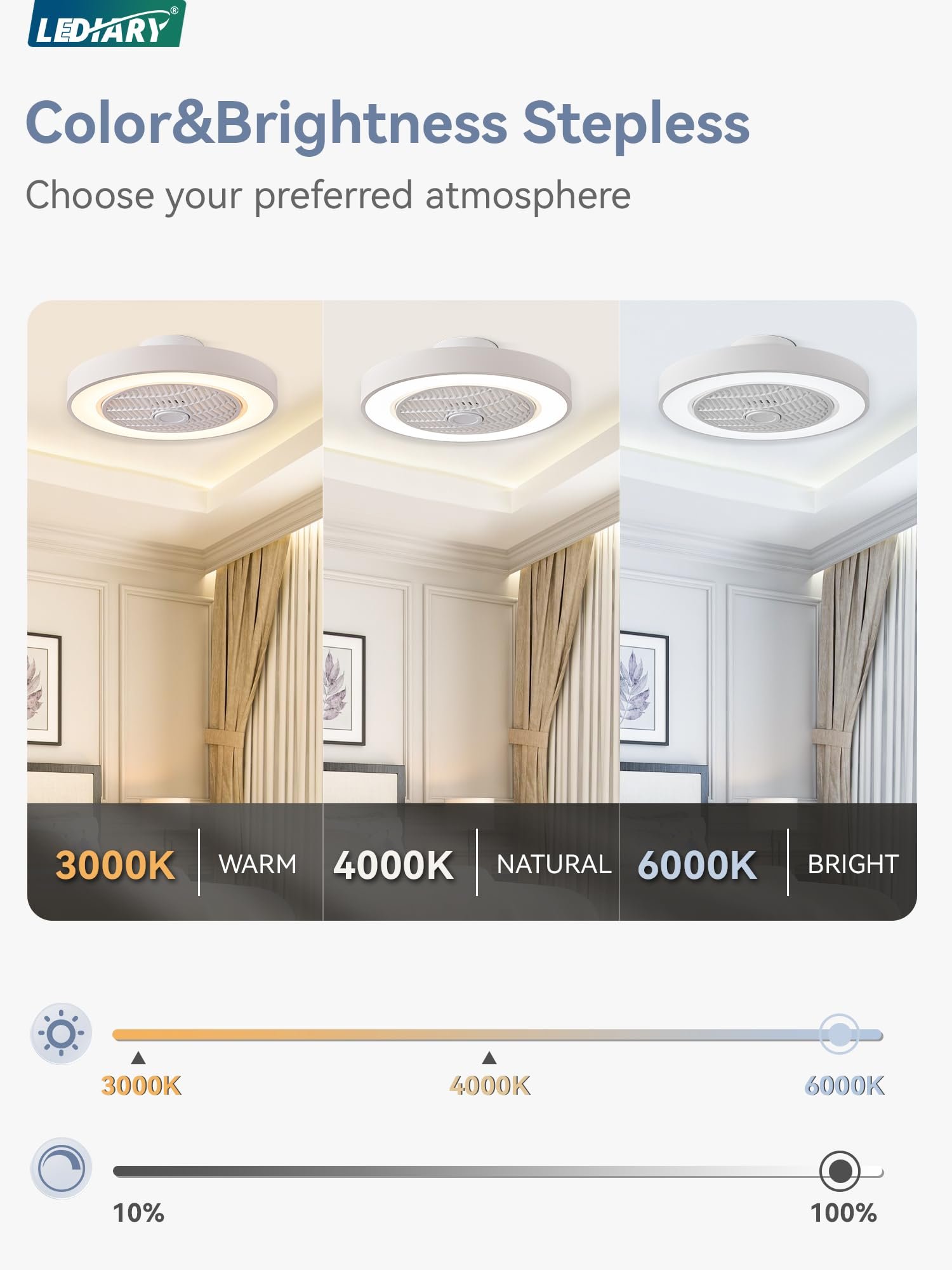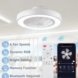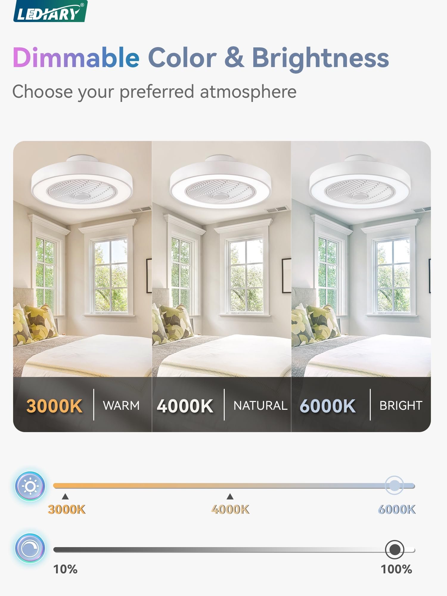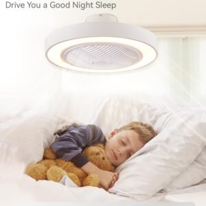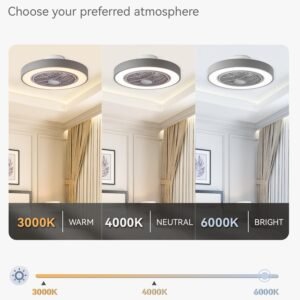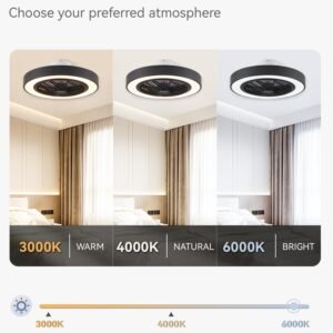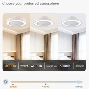 · LED DIMMABLE: Soft led light source does not irritate the eyes, no flash, energy and money saving. Dimmable performance can adjust the bladeless ceiling fan’s color temperature and brightness according to demand, creating a bright or warm and other different atmosphere. Suitable for kids room, bedroom, kitchen, living room and other places