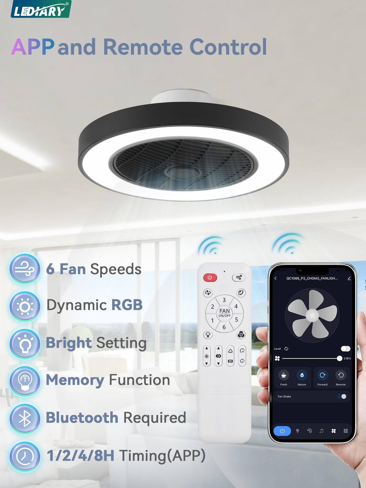 Special Features:High-quality motor, Dimmable LED, Remote & App control, Memory function