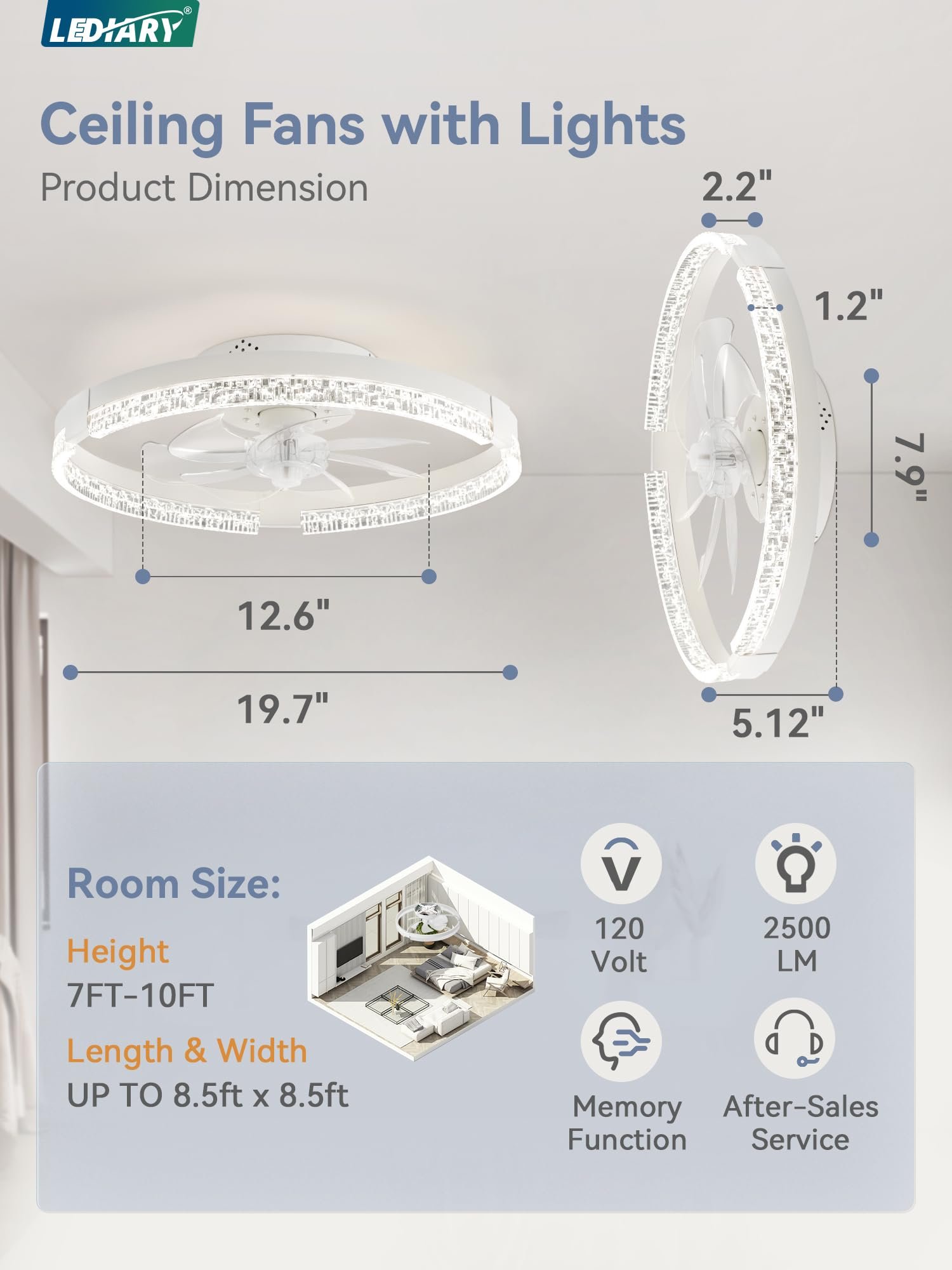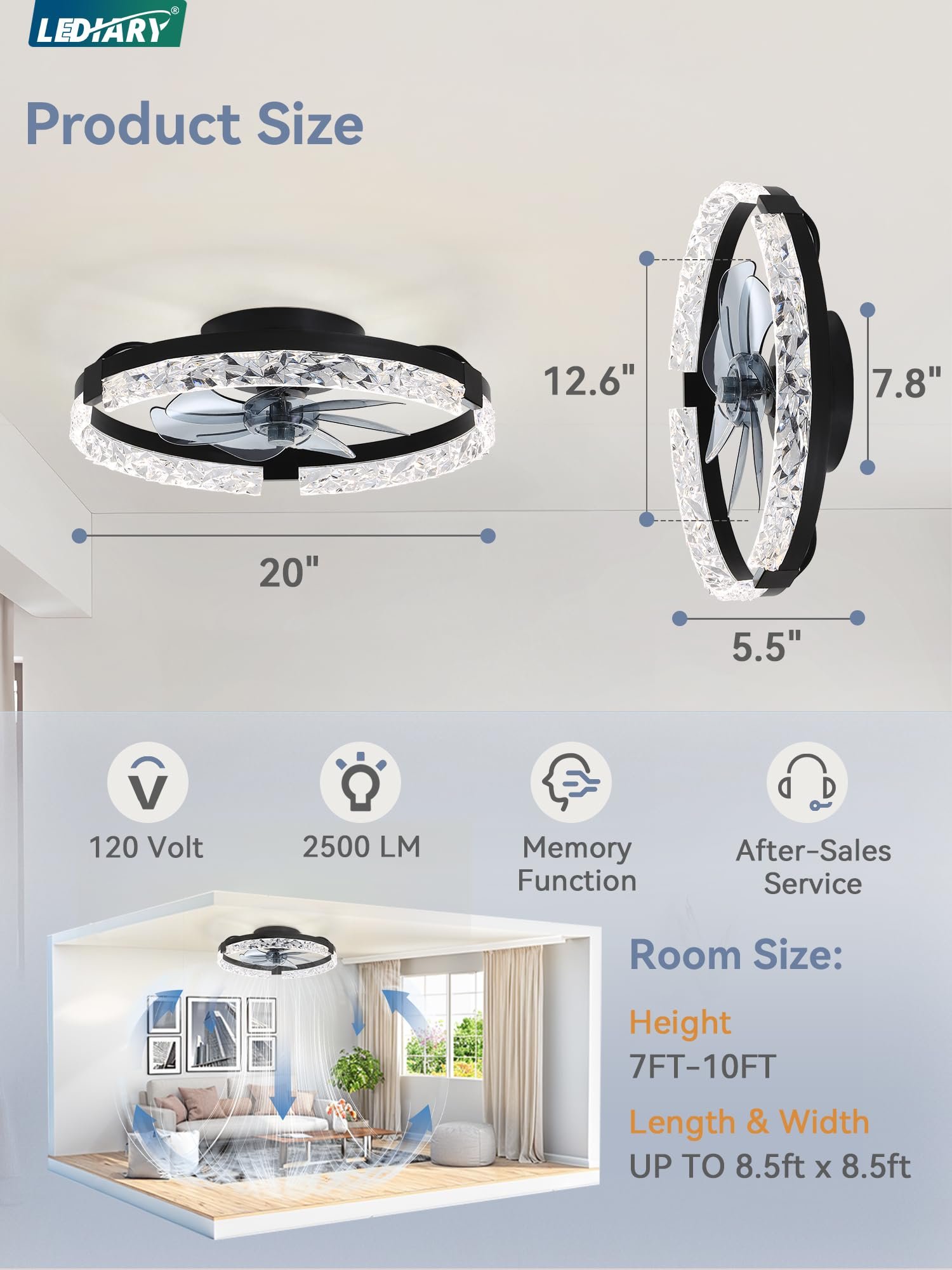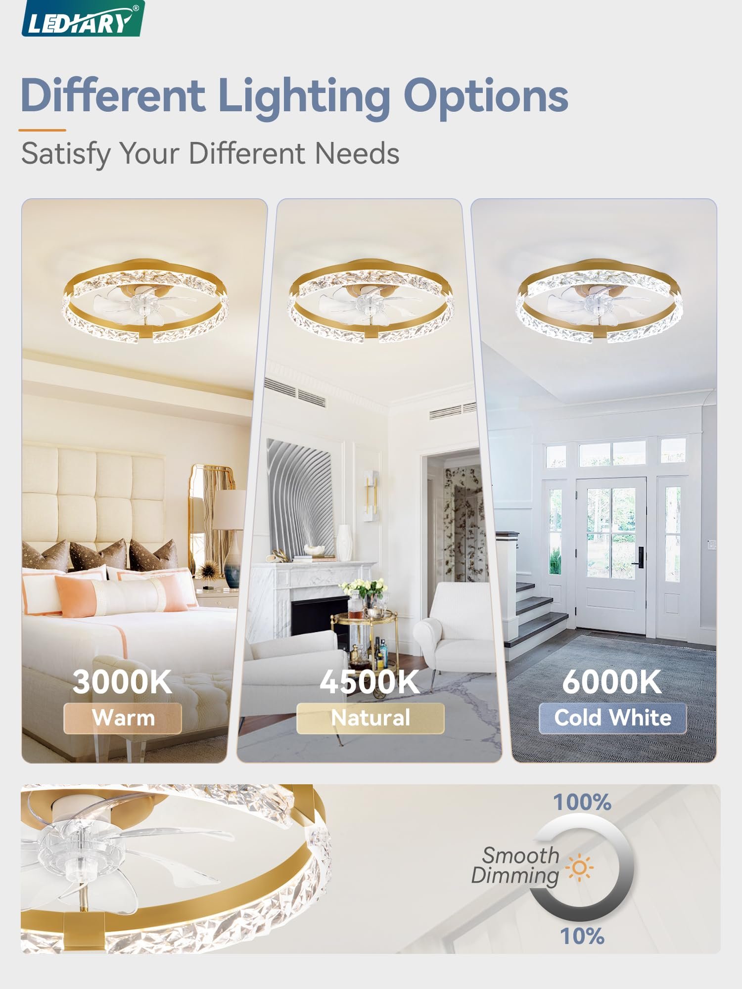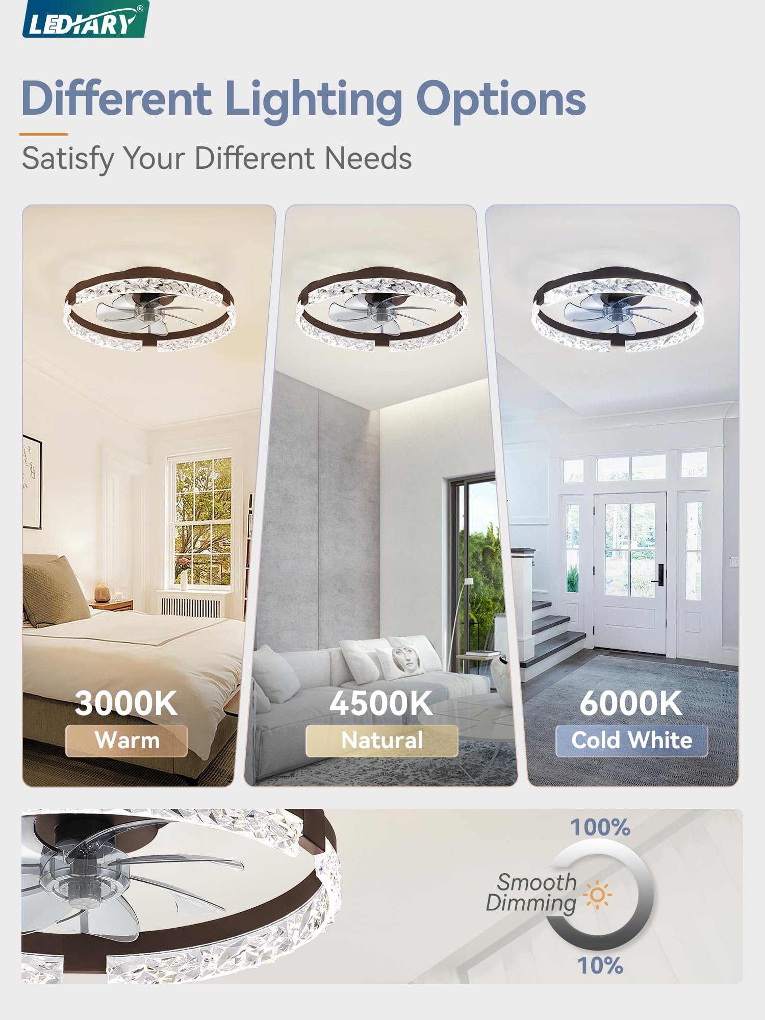20 Inch Low Profile Ceiling Fans with Lights and Remote, Fandelier Ceiling Fan Flush Mount, 3000K-6000K Dimmable LED Fan Light