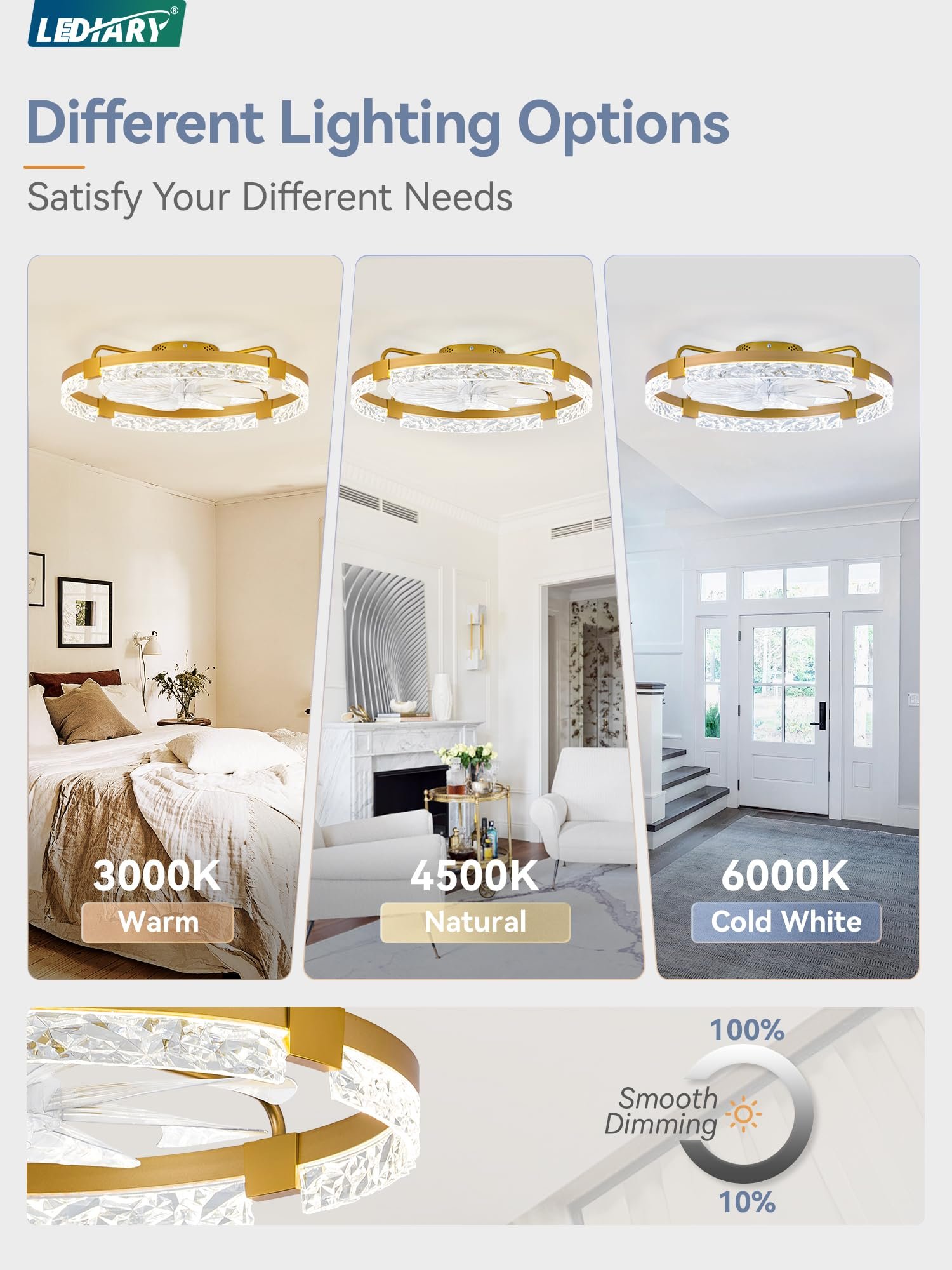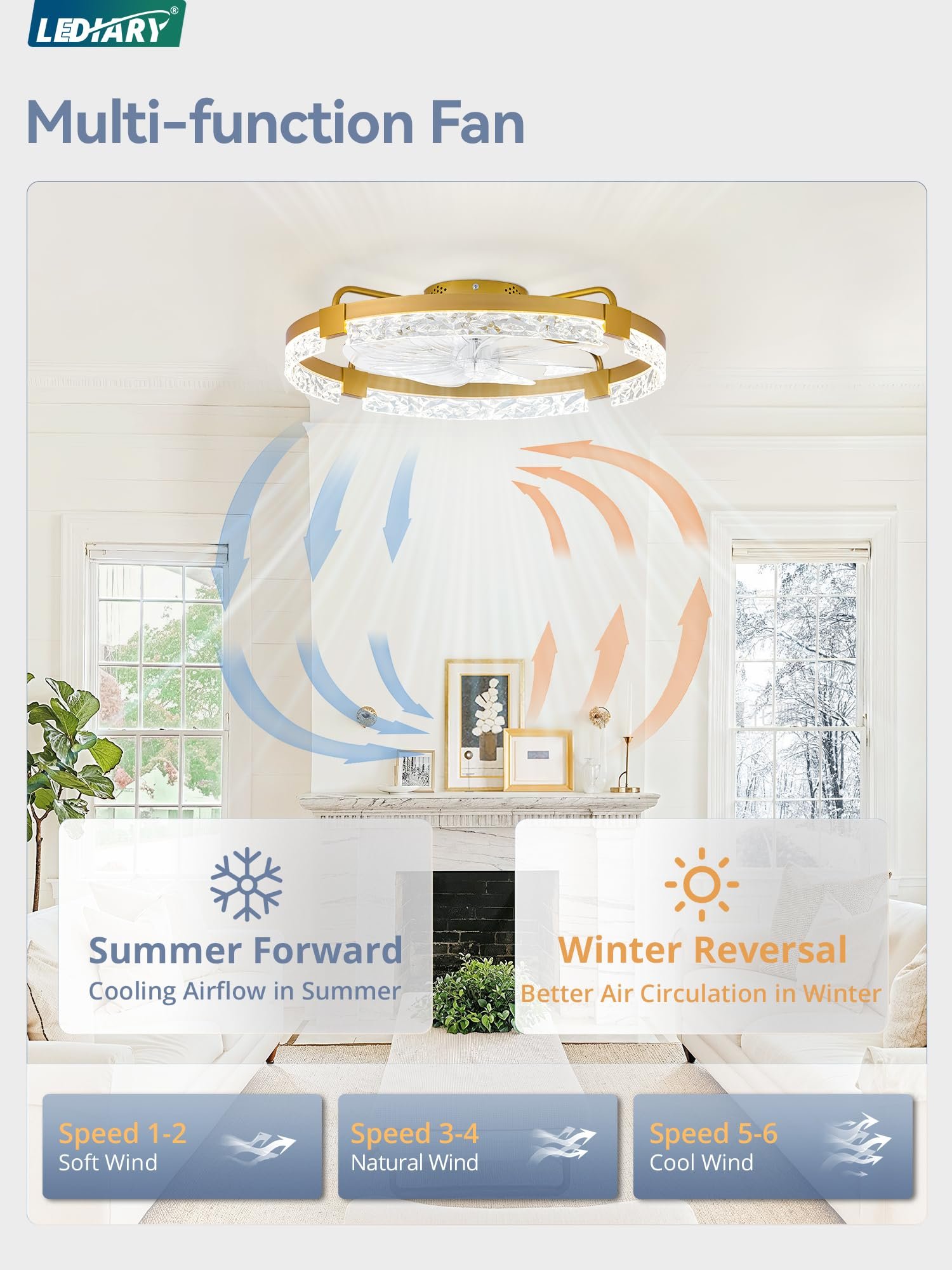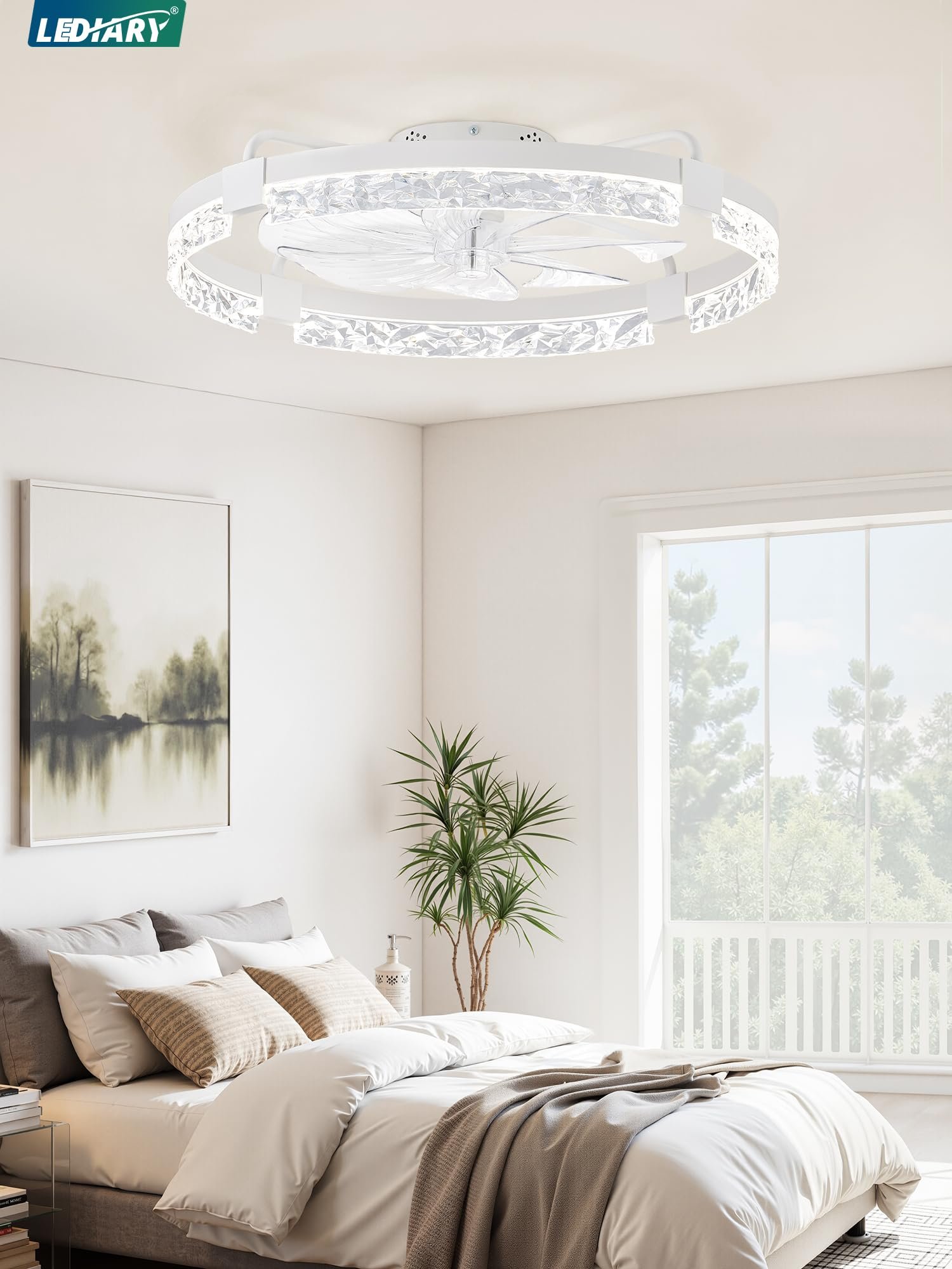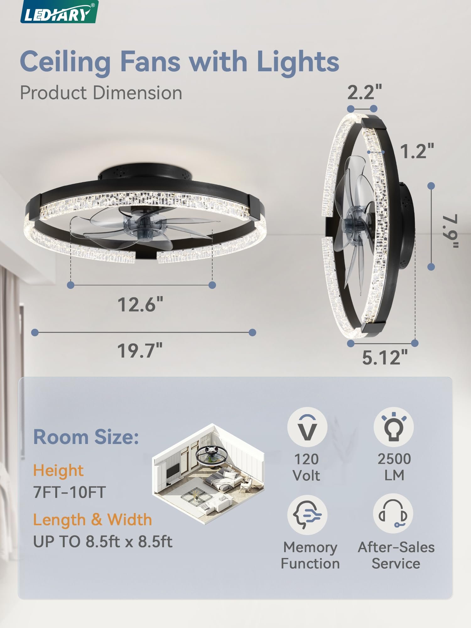 20 Inch Low Profile Ceiling Fans with Lights and Remote, Fandelier Ceiling Fan Flush Mount, 3000K-6000K Dimmable LED Fan Light