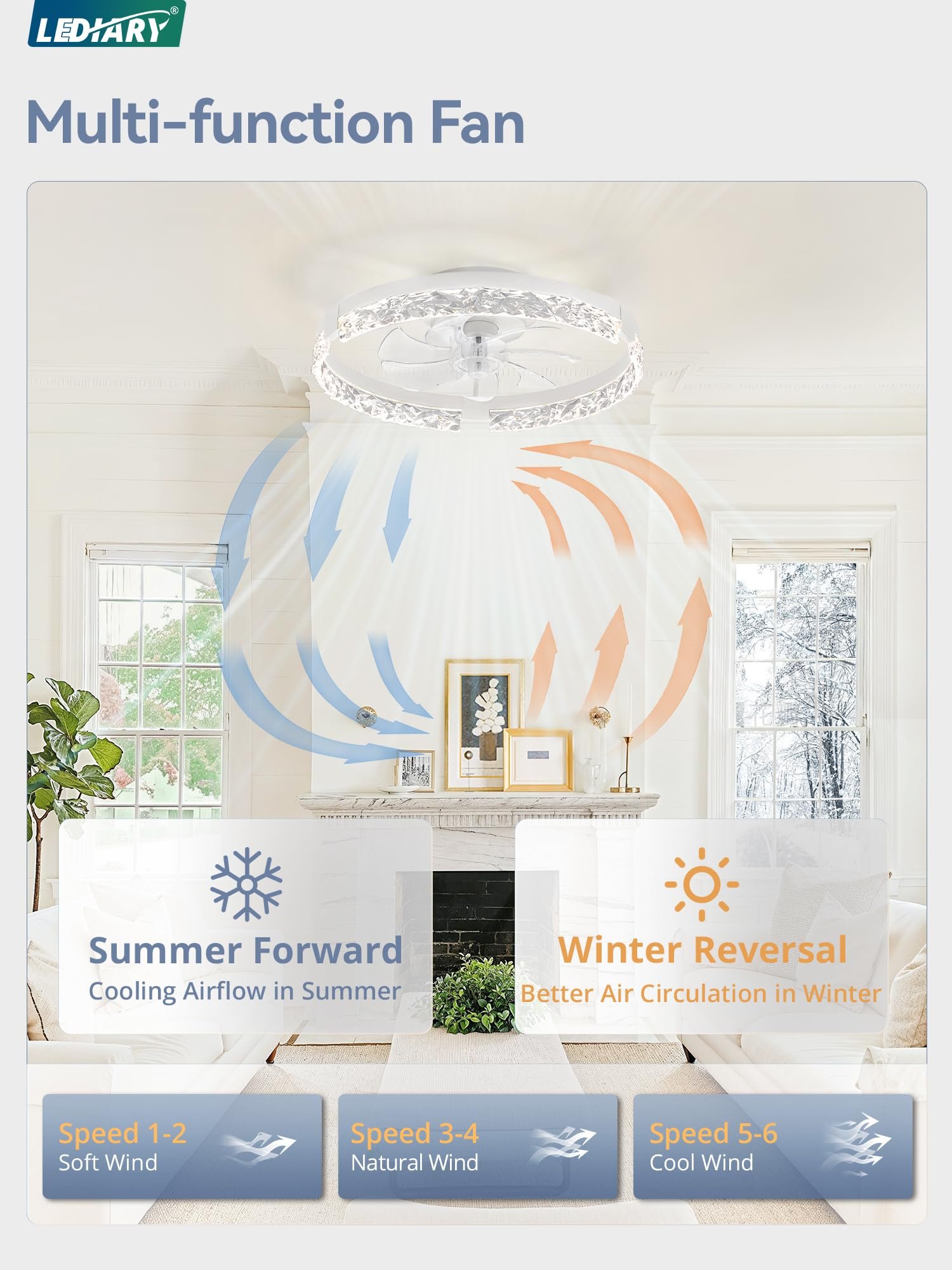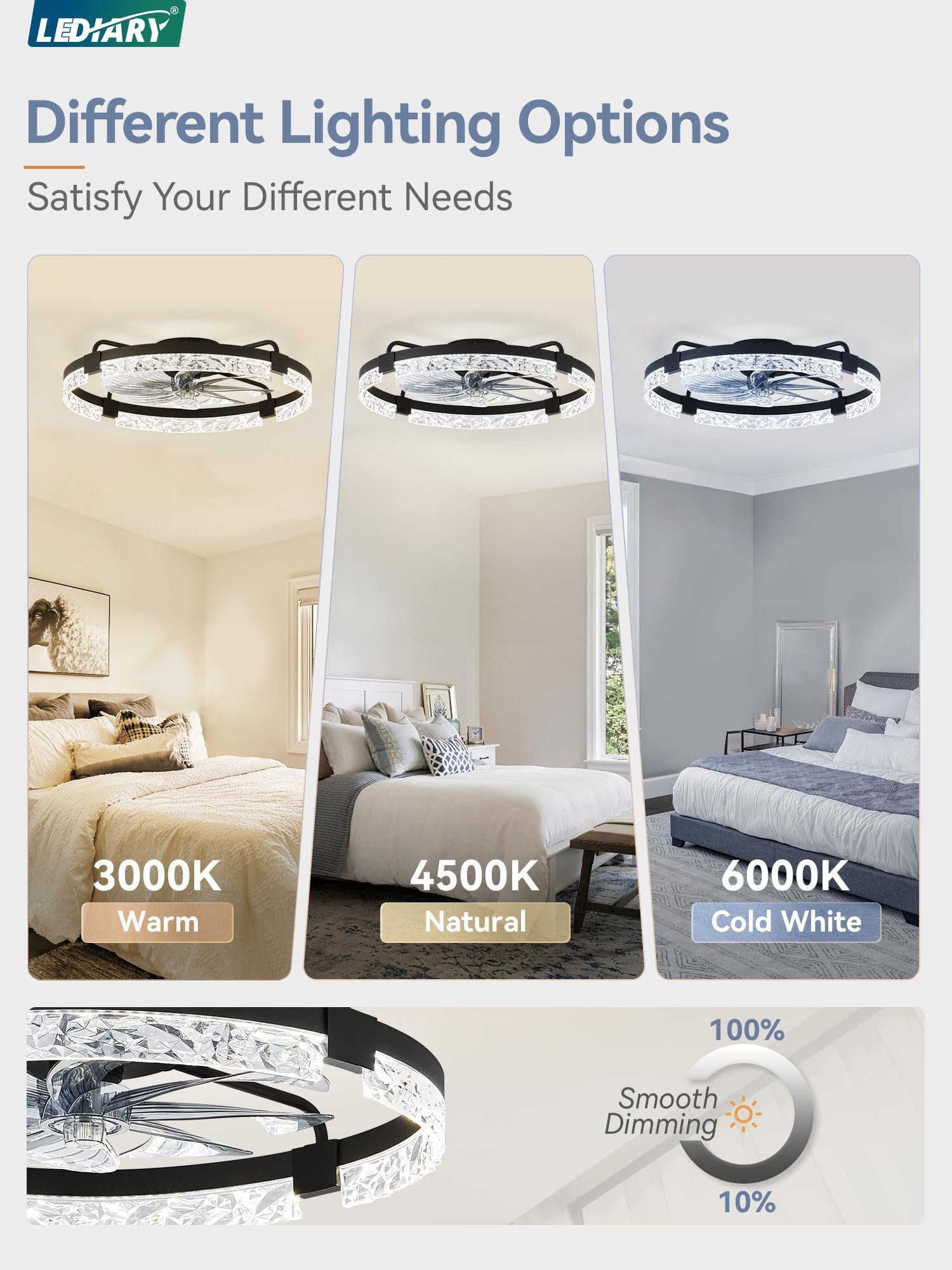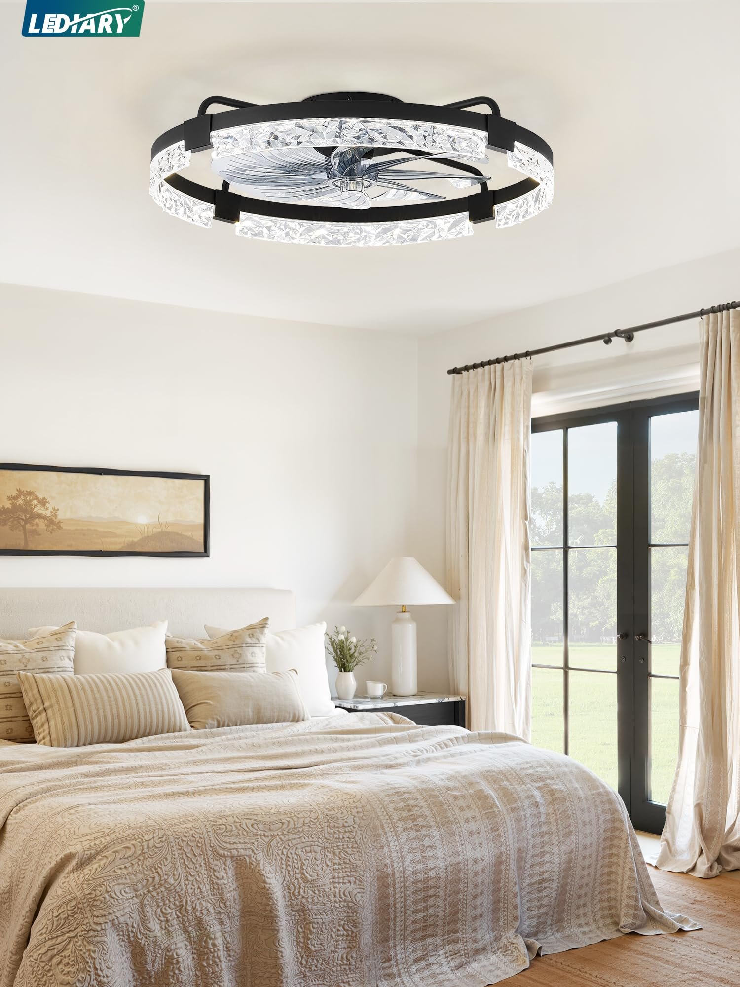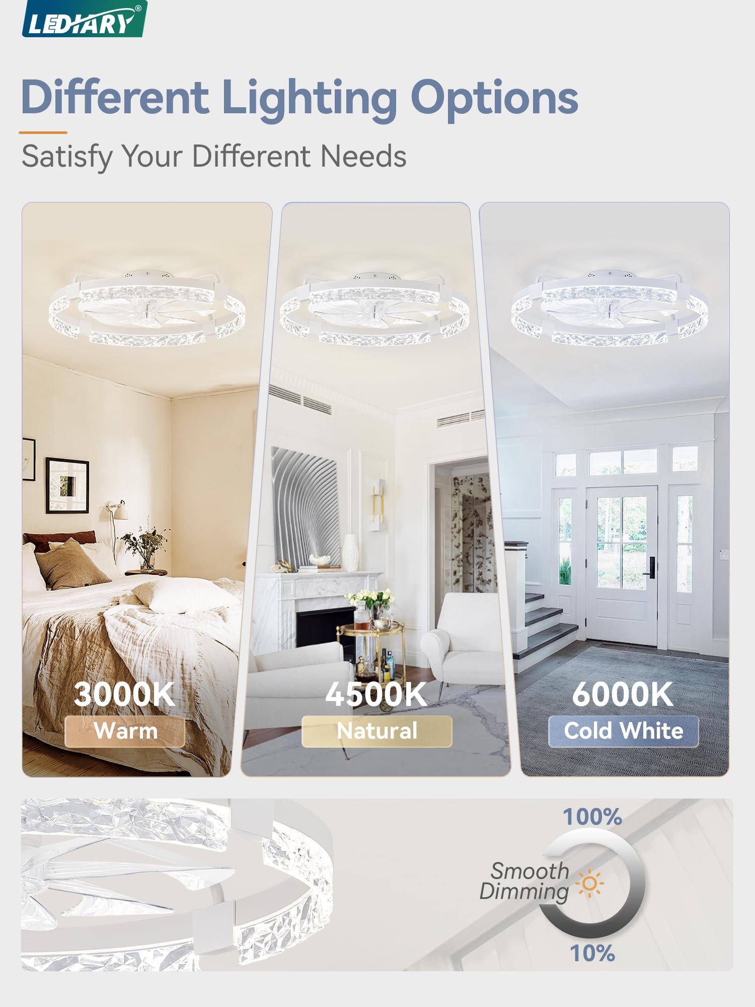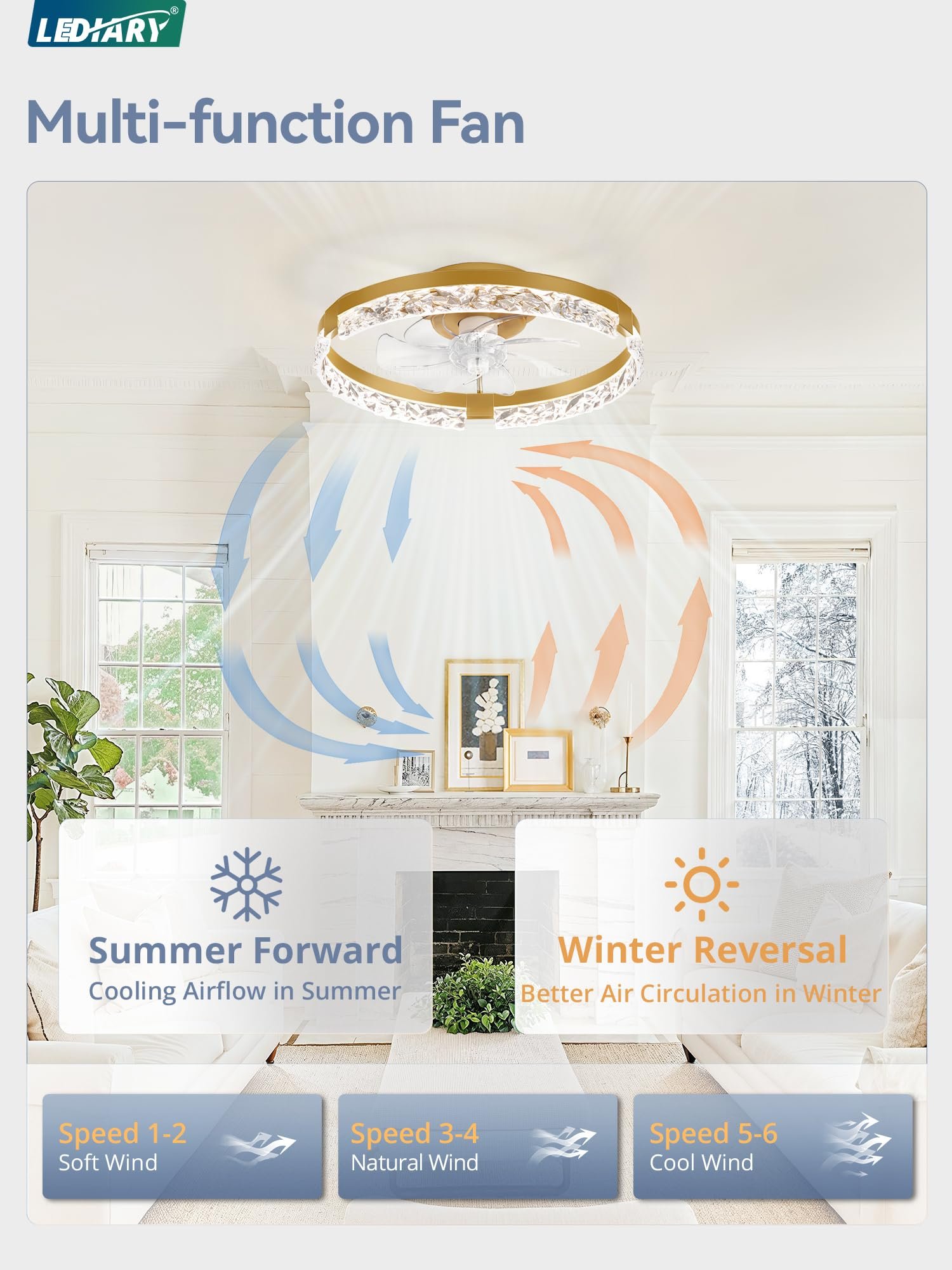 20 Inch Low Profile Ceiling Fans with Lights and Remote, Fandelier Ceiling Fan Flush Mount, 3000K-6000K Dimmable LED Fan Light