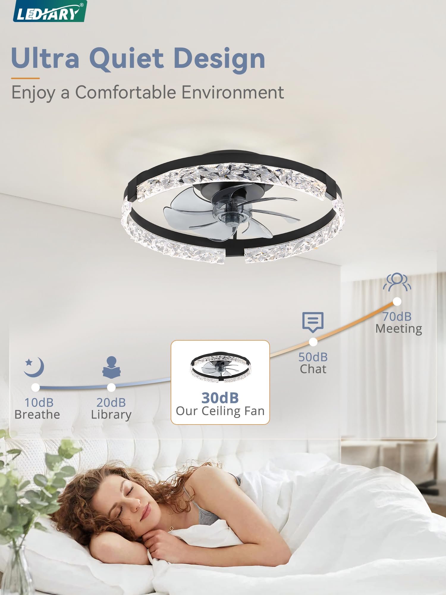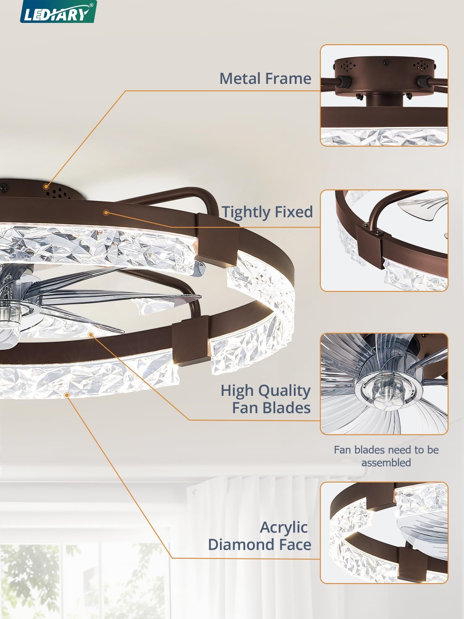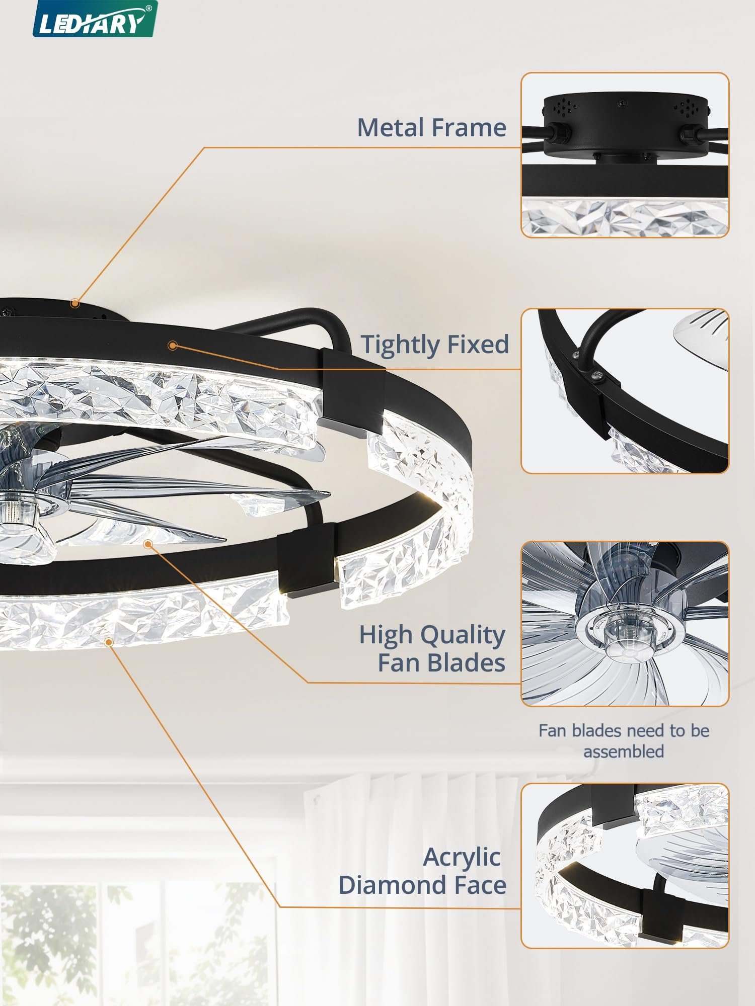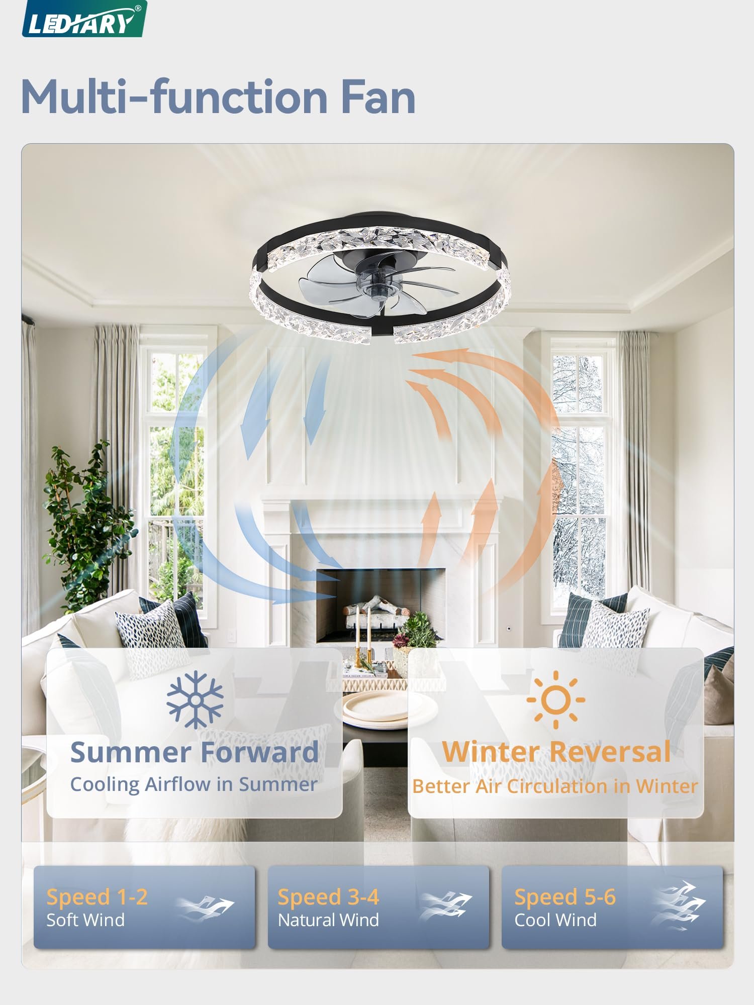 20 Inch Low Profile Ceiling Fans with Lights and Remote, Fandelier Ceiling Fan Flush Mount, 3000K-6000K Dimmable LED Fan Light