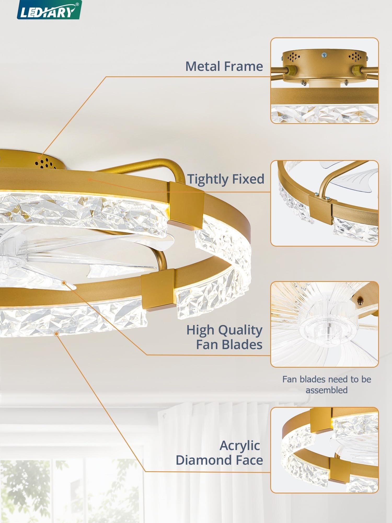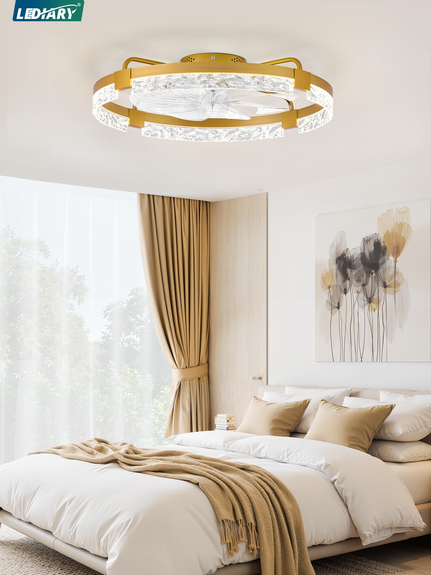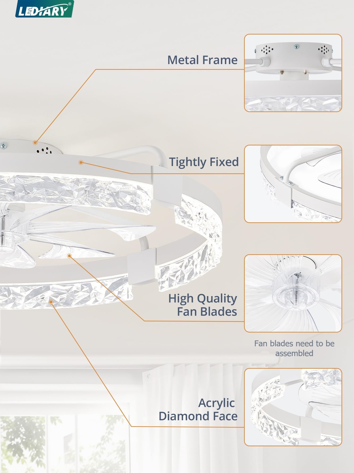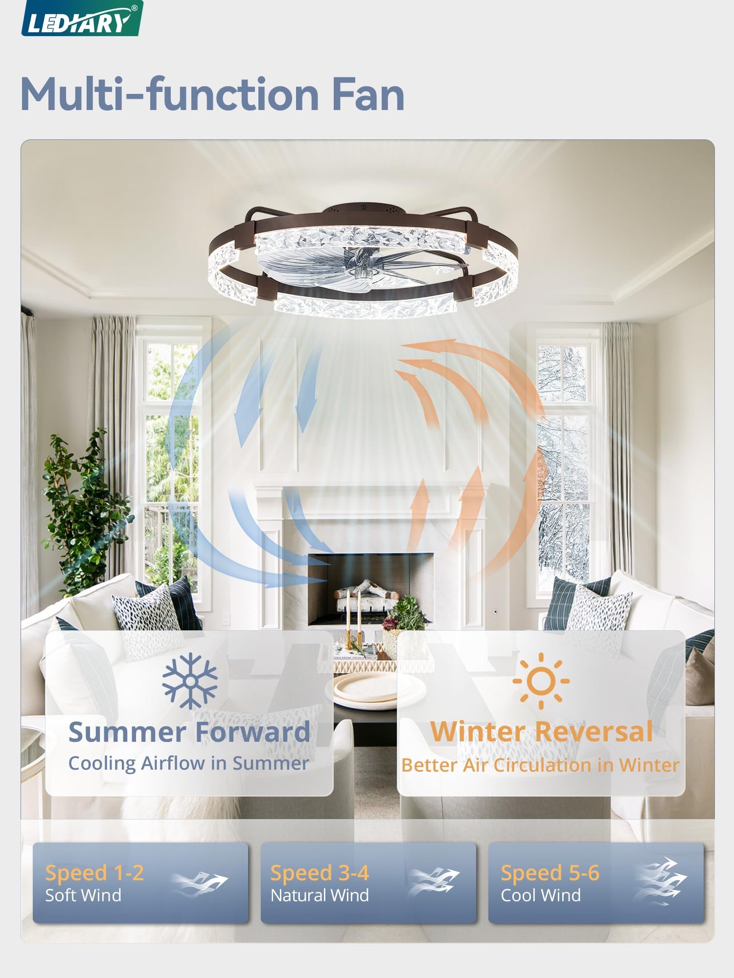 20 Inch Low Profile Ceiling Fans with Lights and Remote, Fandelier Ceiling Fan Flush Mount, 3000K-6000K Dimmable LED Fan Light