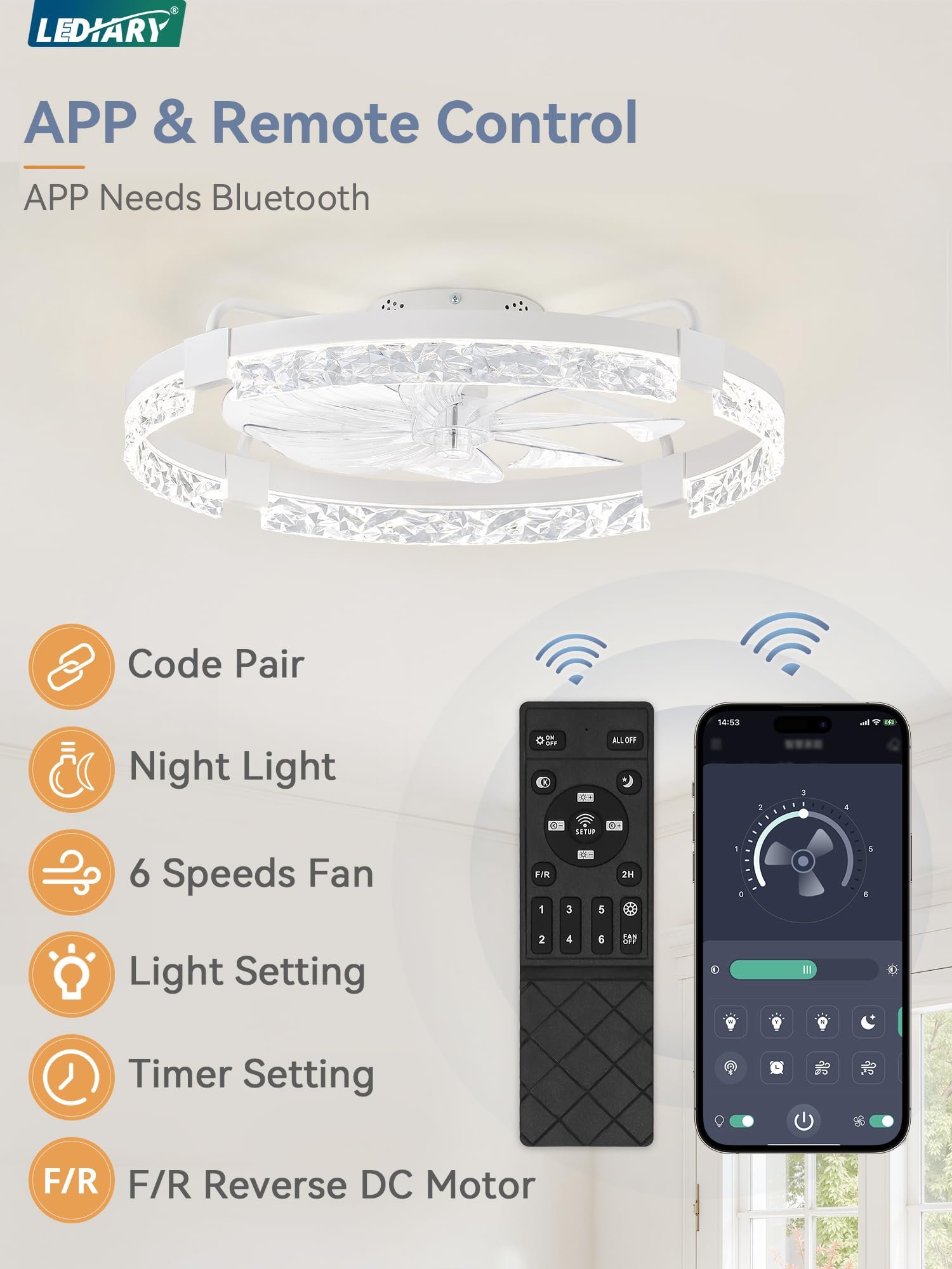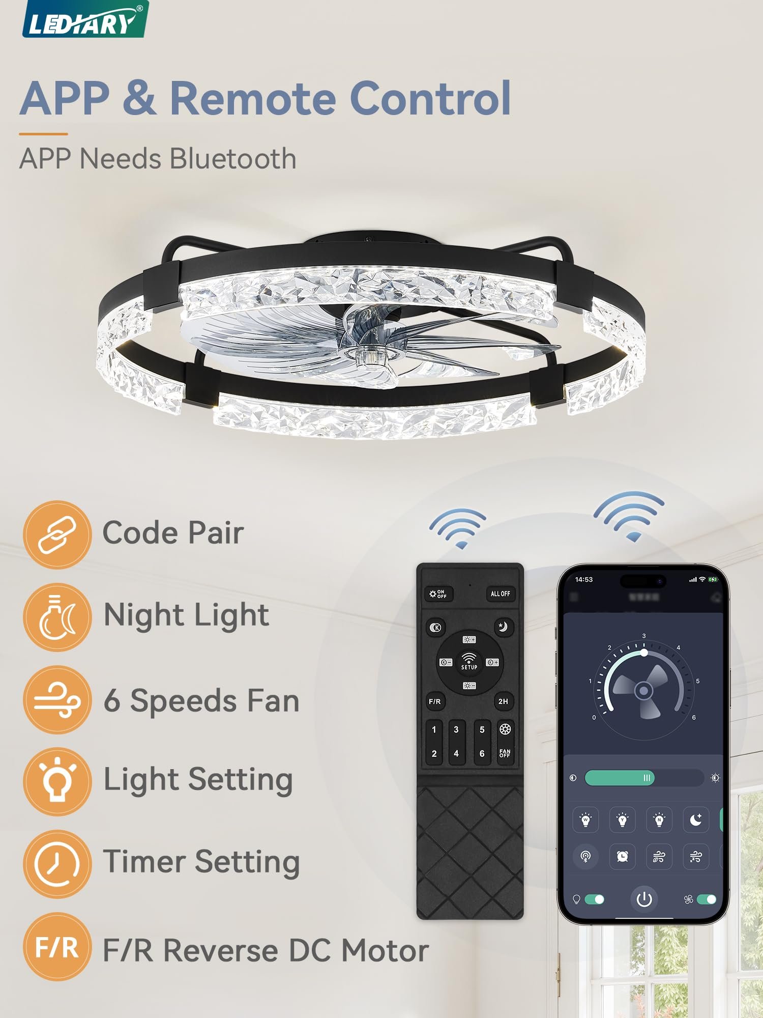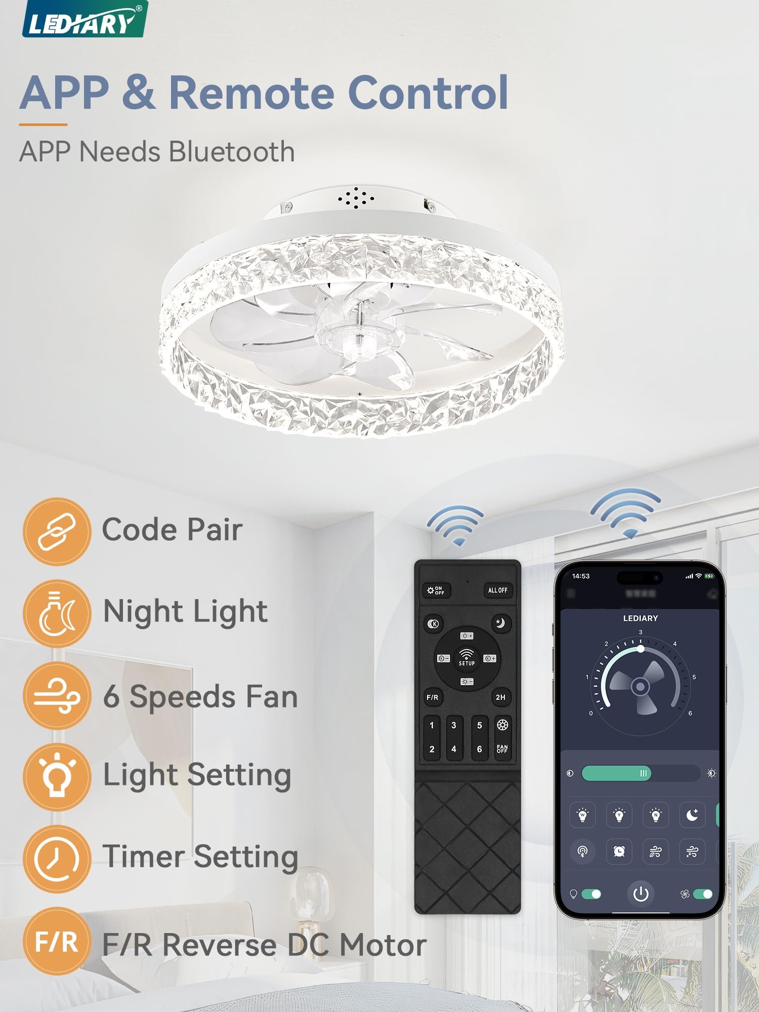 · Remote Control & APP Control: This low profile ceiling fan with light has 6 speeds fan and sleep timer (2H) settings make it easy to maintain the ideal comfort level.The users can choose comfortable wind speed and light easily and conveniently through remote control. Tips:App control requires Bluetooth