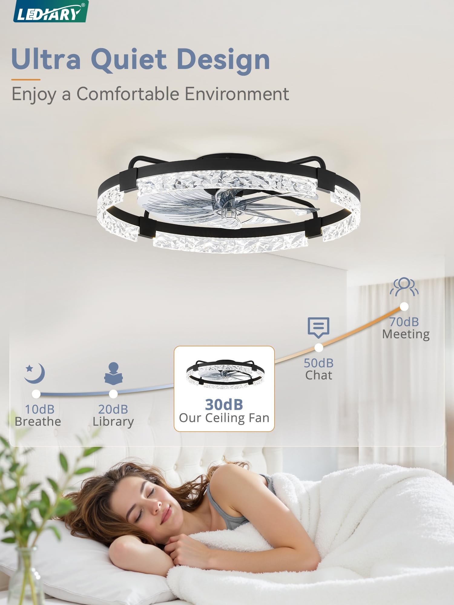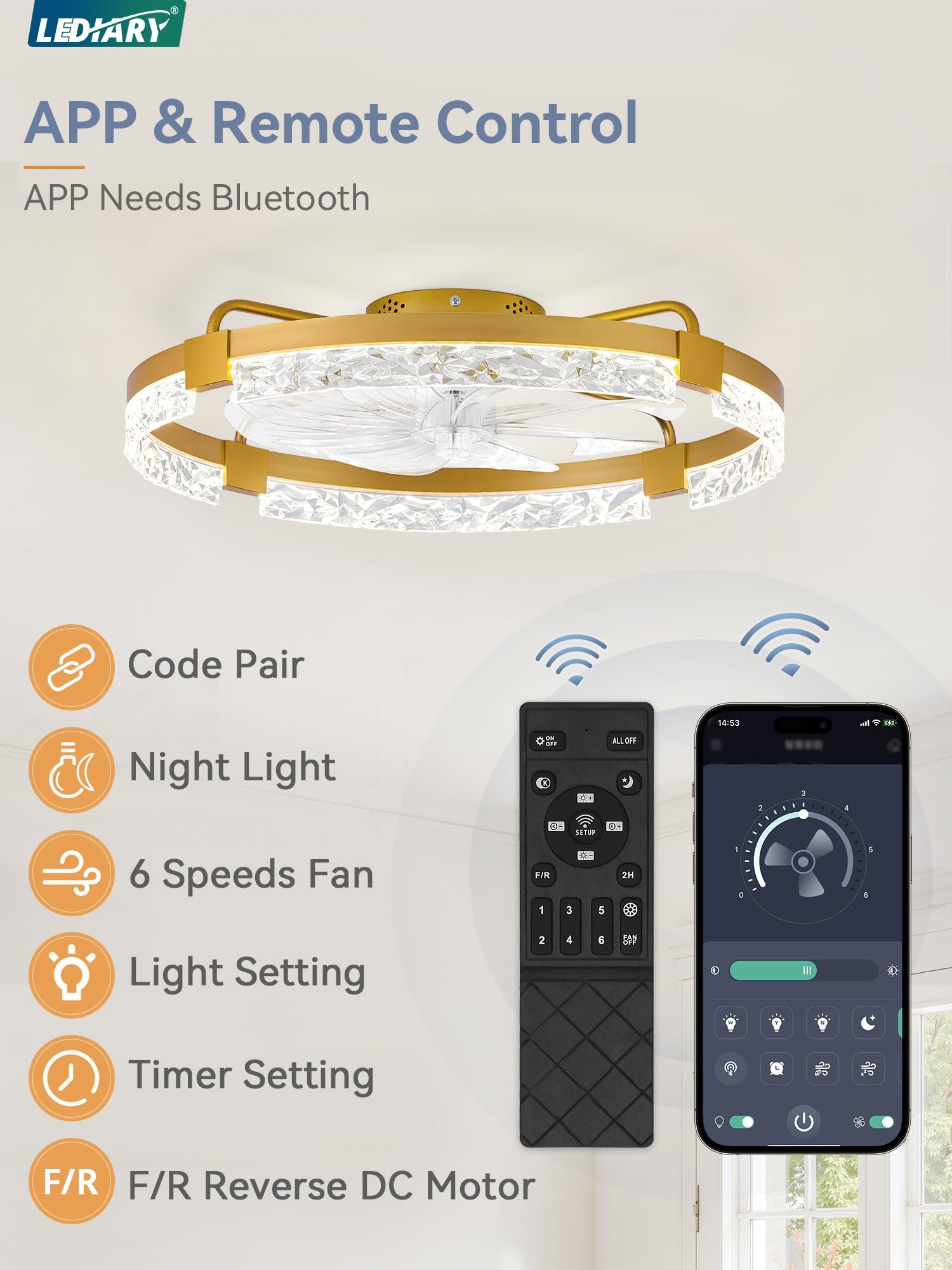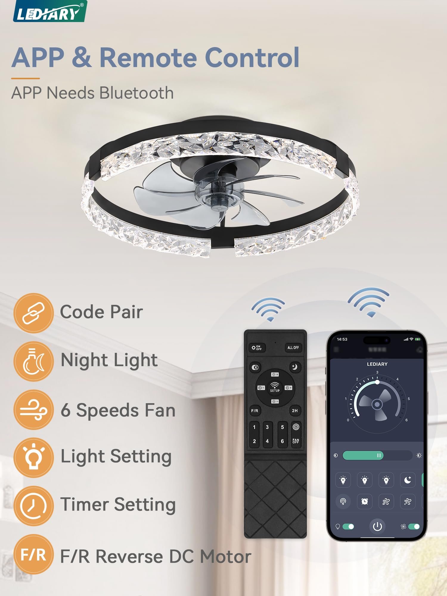 · Remote Control & APP Control: This low profile ceiling fan with light has 6 speeds fan and sleep timer (2H) settings make it easy to maintain the ideal comfort level.The users can choose comfortable wind speed and light easily and conveniently through remote control. Tips:App control requires Bluetooth