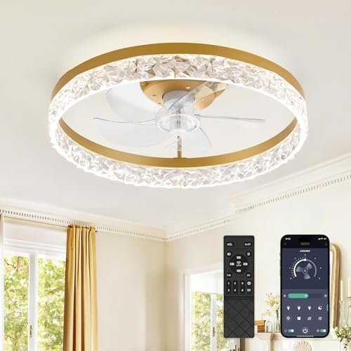 20″ Modern Ceiling Fans with Lights and Remote, Dimmable Low Profile Ceiling Fan