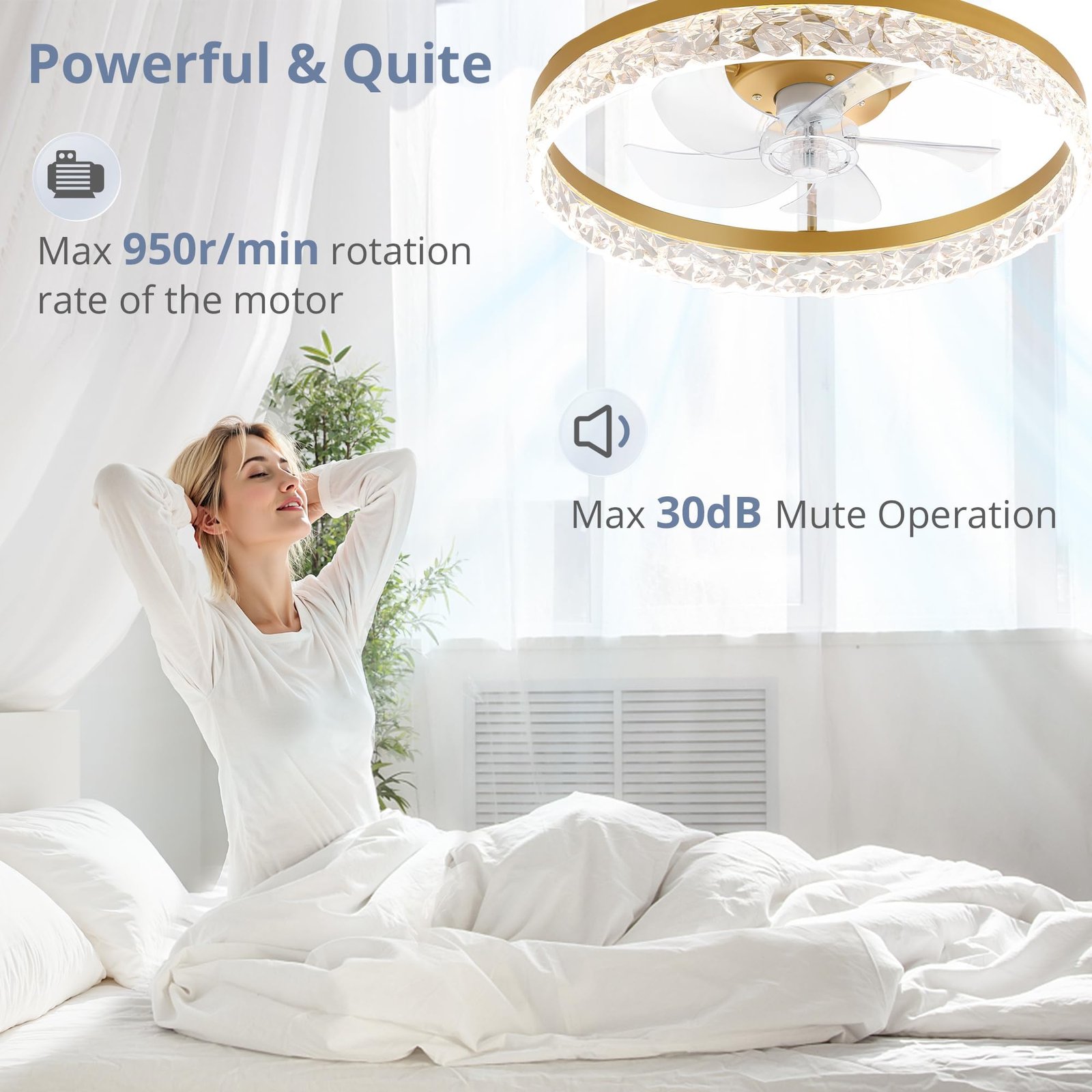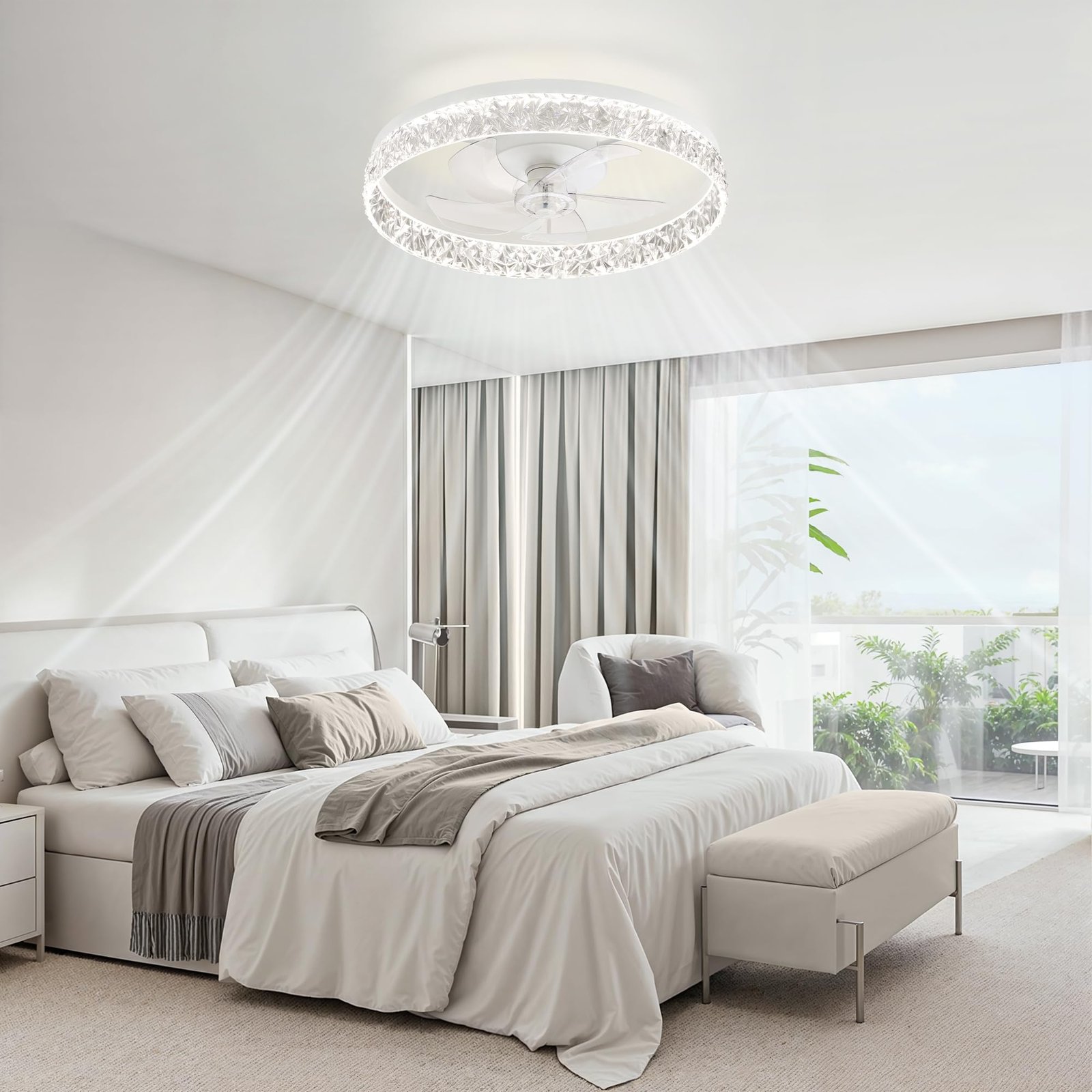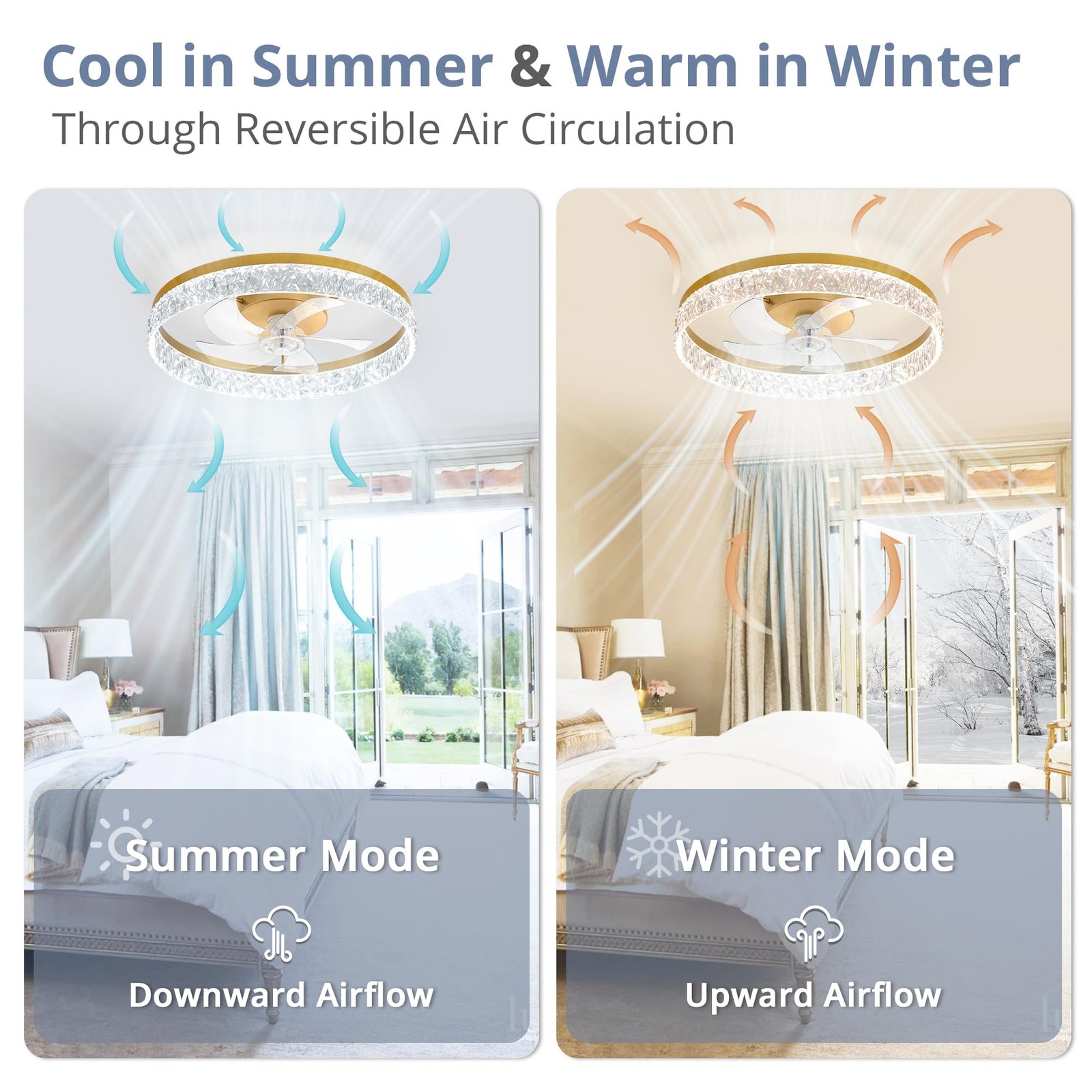 · Reversible Motor And Quiet Fan: Our white ceiling fan provides 2 airflow modes: It runs downdraft cool airflow during summer and updraft airflow during winter to aid in rotating warm air, promoting air circulation and saving energy.The pure copper motor runs smoothly, provides strong wind power, and low noise design creates a comfortable living environment, and improves the quality of sleep