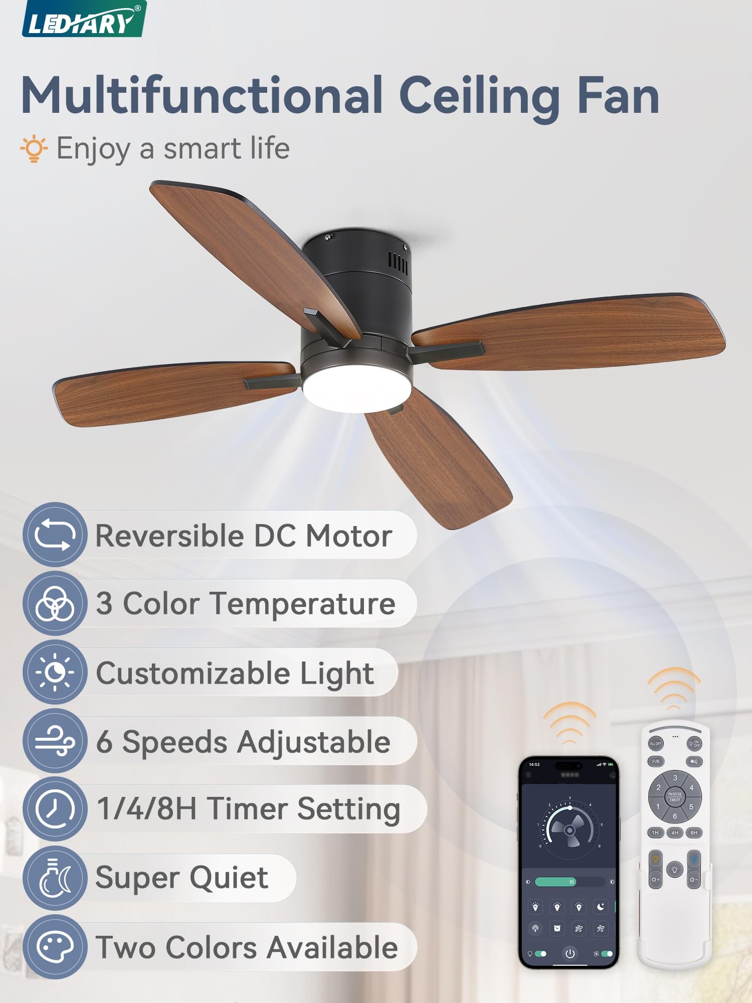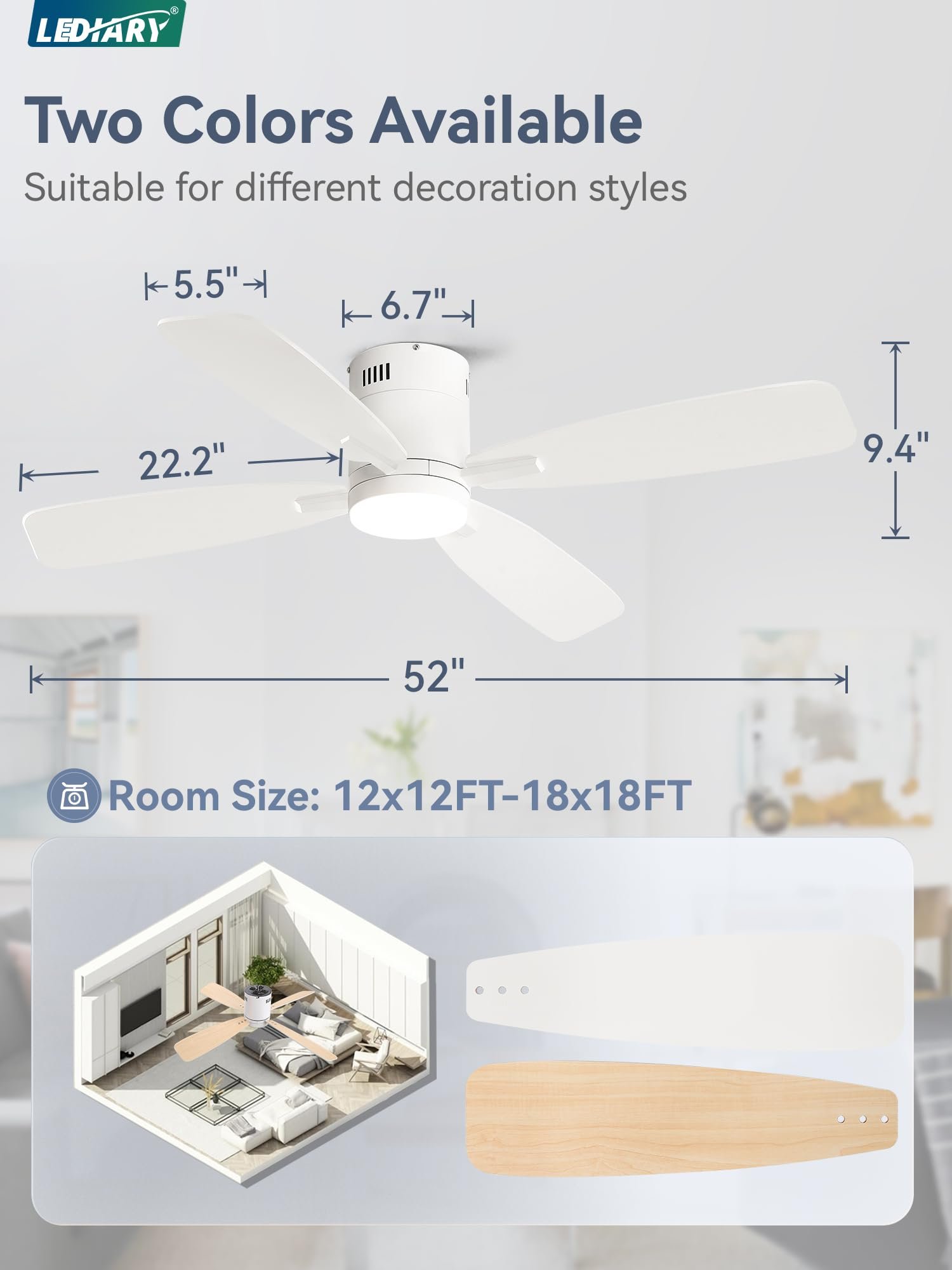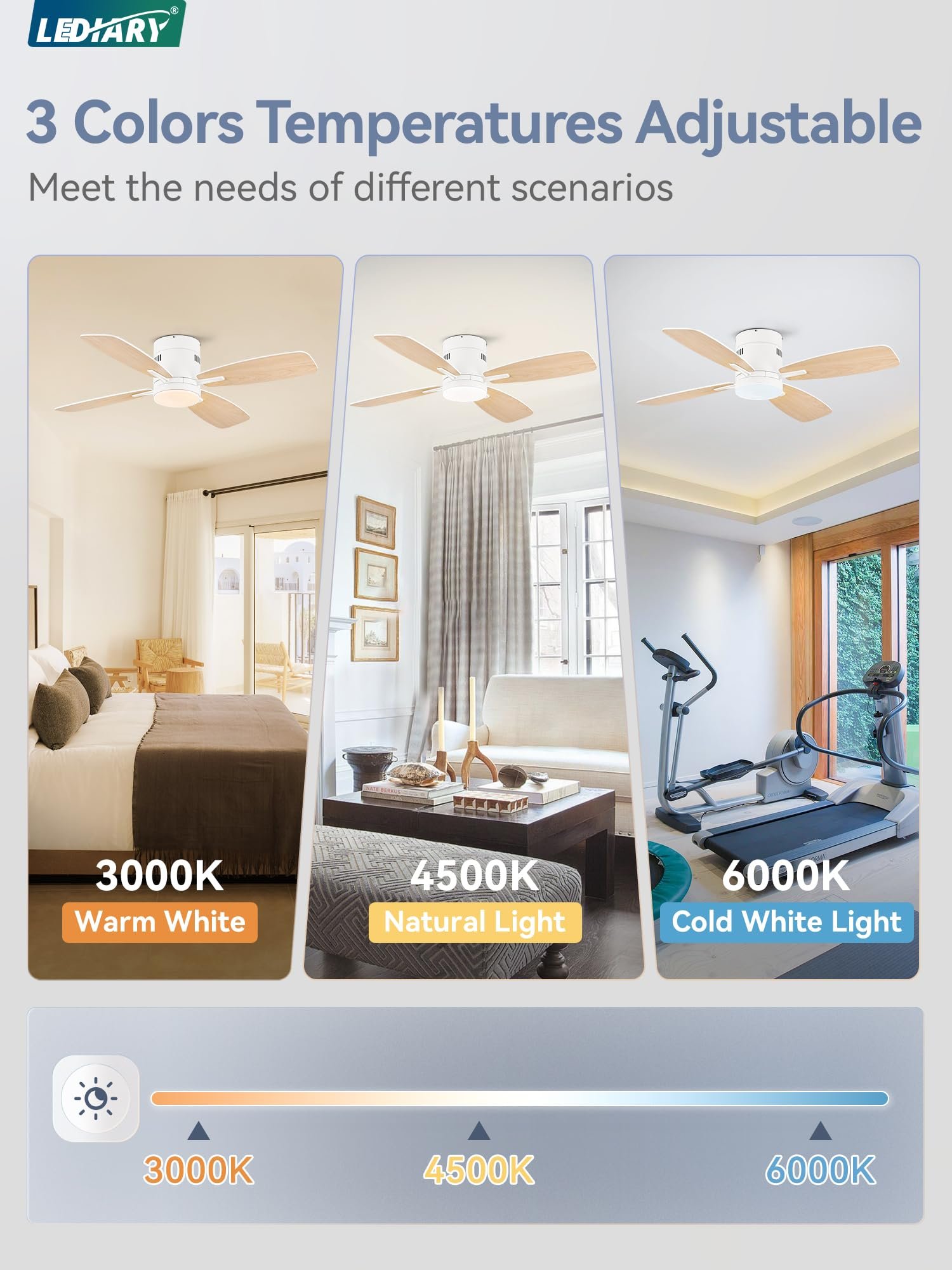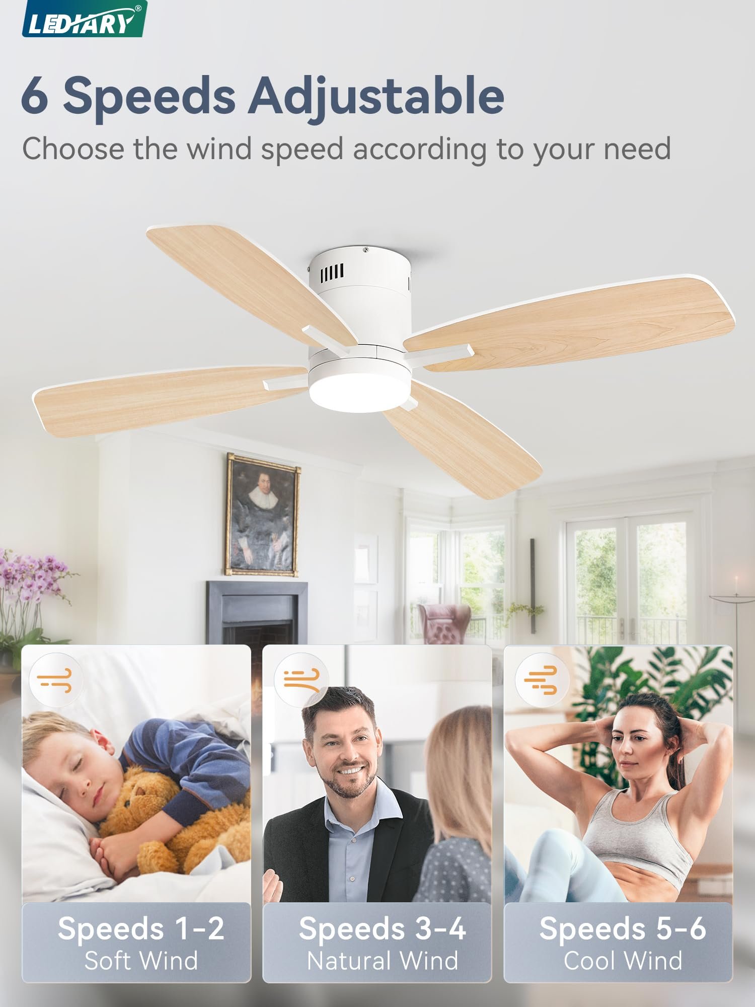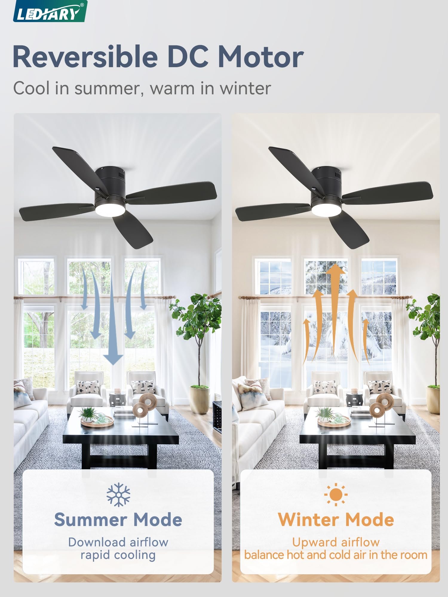 · Reversible DC Motor: LEDIARY black/white ceiling fan with high-speed reversible motor brings a excellent wind experience, transmits cool wind downwards in summer and optimizes air circulation in winter. The flush mount ceiling fan with lights can be used all year round, better than traditional AC motors
