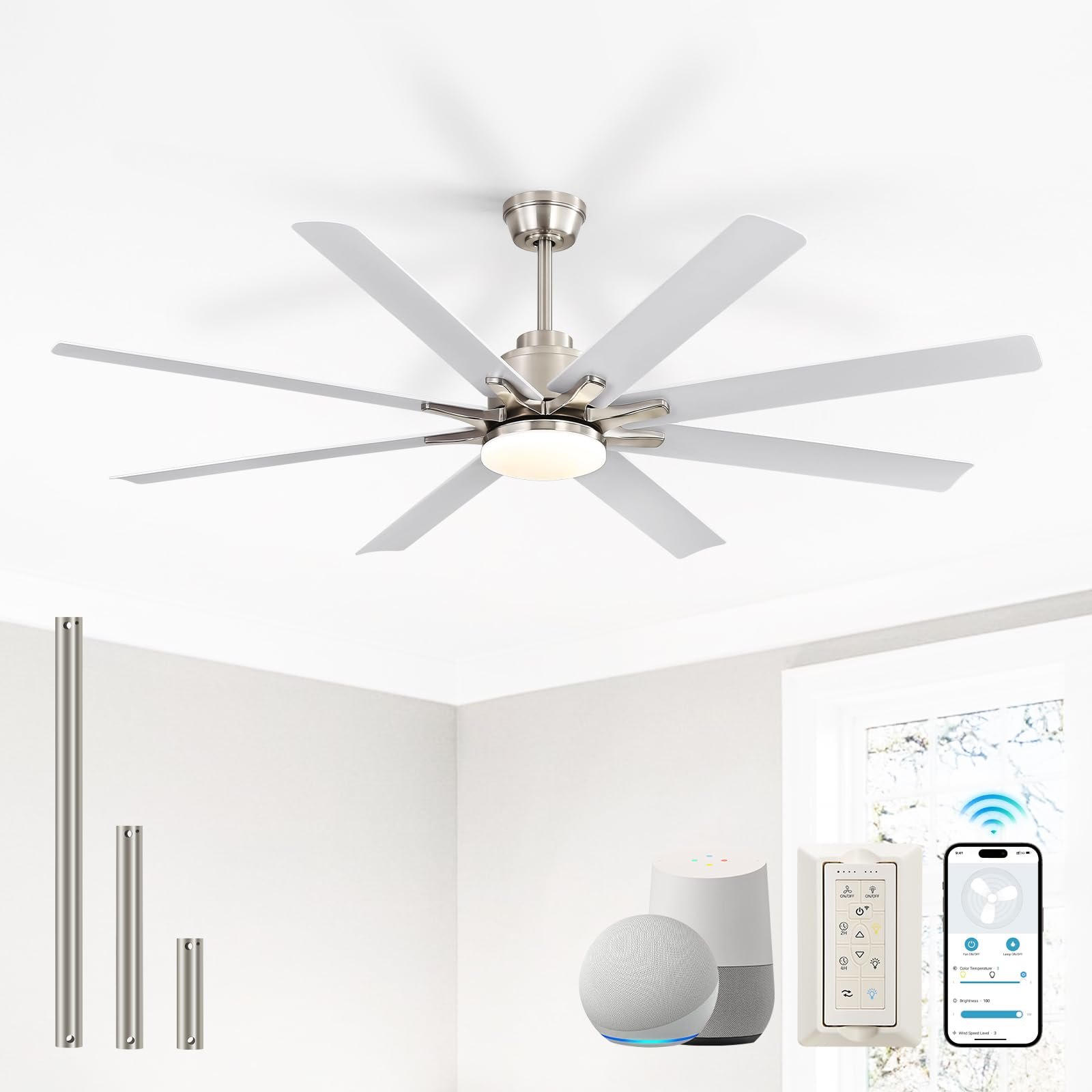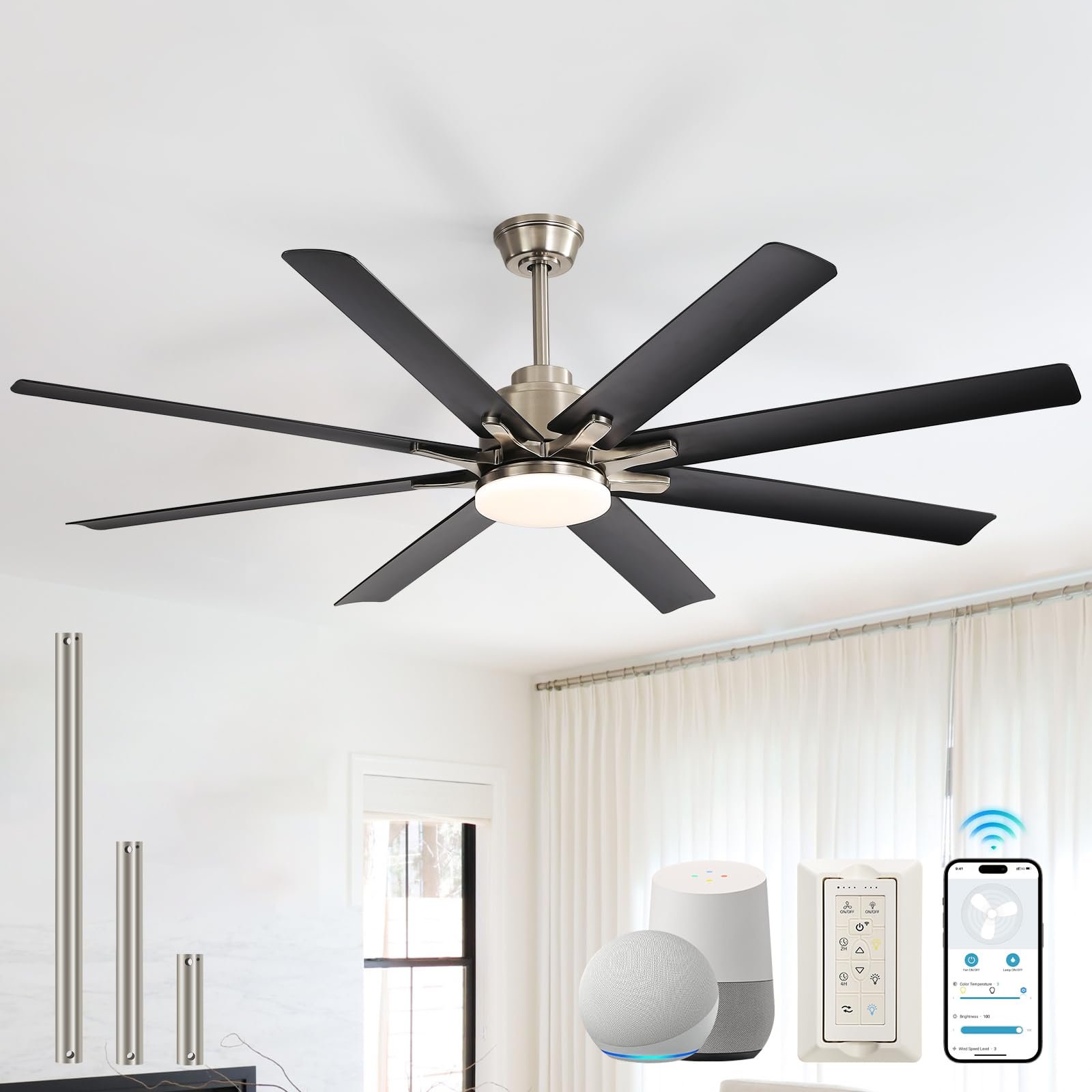 · Unified Smart Control System – Voice-control via Alexa delivers hands-free convenience, while Google Assistant app allows adjustments from anywhere. Prefer tactile simplicity?The included remote operates independently or mounts as a wall switch. Triad of control options of smart ceiling fan ensures your ideal climate and lighting are always within reach—no interruptions to relaxation or productivity.