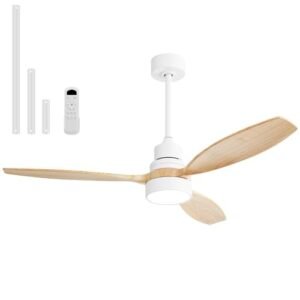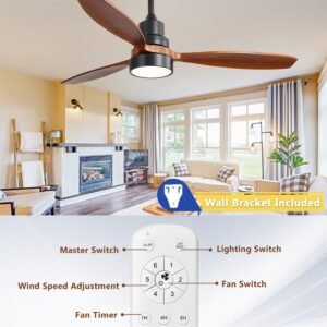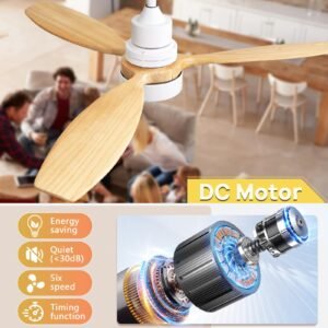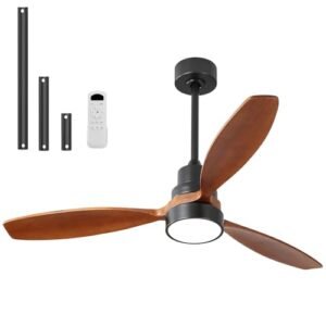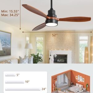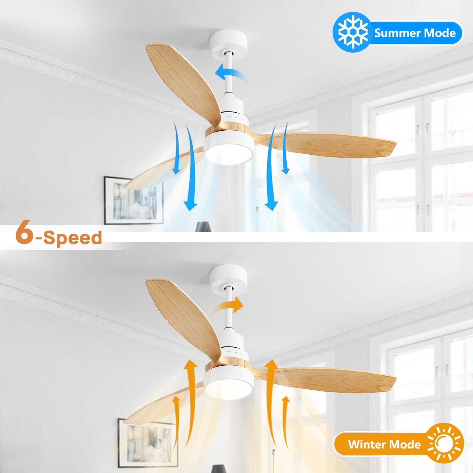 · 52 inch Modern Ceiling Fan with Light: Bring more than just wind and light, but comfort! Modern ceiling fans made of natural solid wood, unique style, it can be the perfect decoration in your home while delivering enough airflow and light, and it has A+++ energy efficiency rating, which can avoid 75% of electricity loss compared with traditional fans.