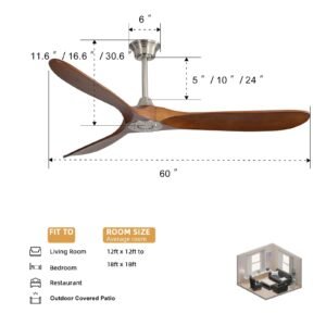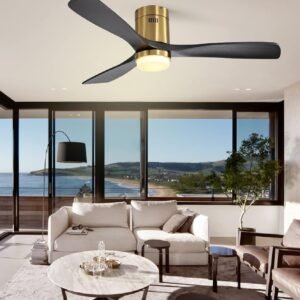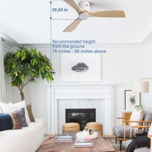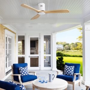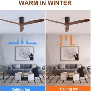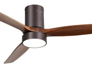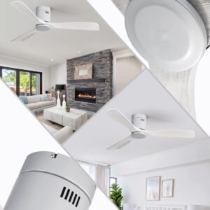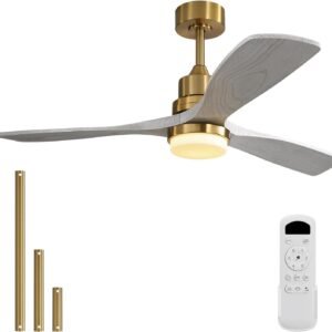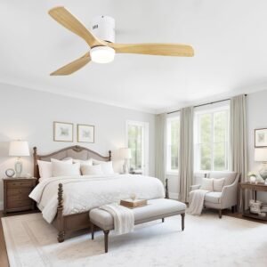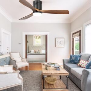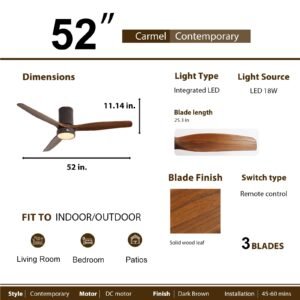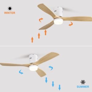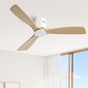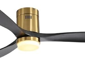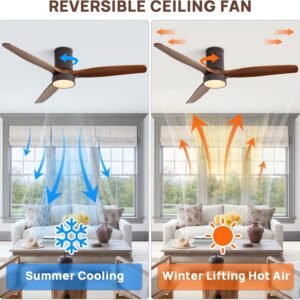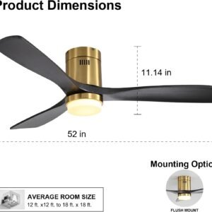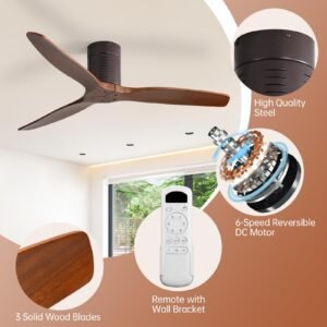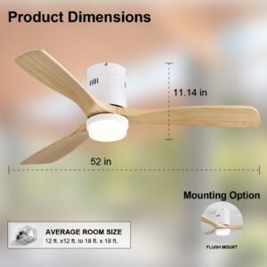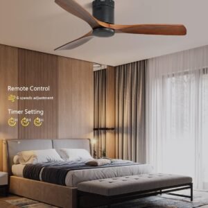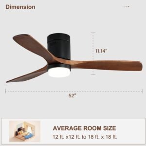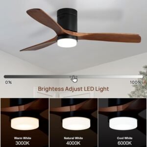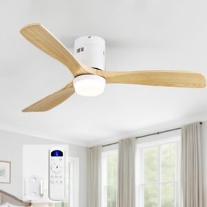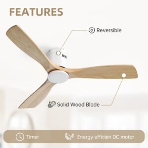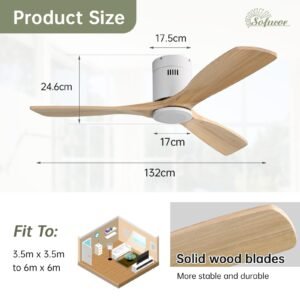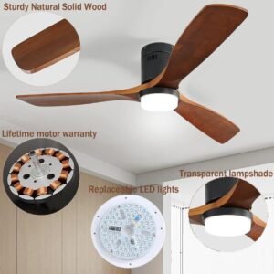 52 Inch Solid Wood Ceiling Fans With Lights, Low Profile Ceiling Fan with Light and Remote