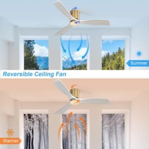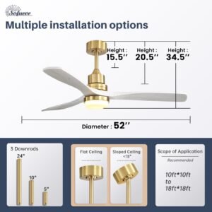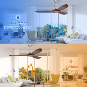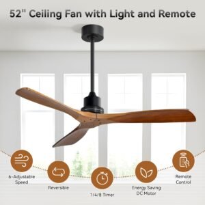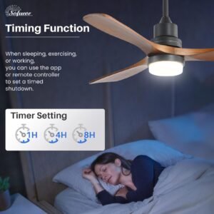 · Ceiling Fan with Remote Control – Sofucor 52 Inch ceiling fan with light remote control, you can turn the fan on/off, adjust wind speeds, as well as realize the function of 1/2/4 hours timer off; Meanwhile, you can also realize the forward and reverse rotation control directly on the remote control. The ceiling fan and light can be turned on separately. (Tips: After fixed, the remote control can be used as a wall switch)
