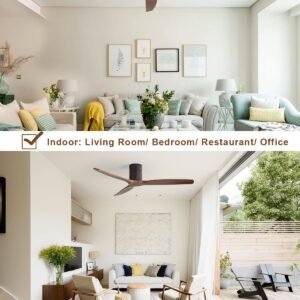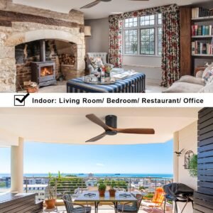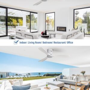 · Indoor & Outdoor Low Profile Ceiling Fan – Sofucor ceiling fan has 3 downrods (5inch, 10inch, and 24inch) and tilts up to 15 degrees for flexibility choose. Suitable for farmhouse, living room, bedroom, office, study, kitchen or other indoor spaces. Besides, this is also a outdoor ceiling fan sfor patios, breezeways, gazebos, pergolas and other outdoor spaces. (Avoid direct exposure to rain)