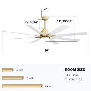 · Indoor & Outdoor High CFM Ceiling Fan: Sofucor 66” smart ceiling fan with light has 3 down rods (5inch, 10inch, and 24inch) and tilts up to 15 degrees for flexibility choose. Suitable for farmhouse, living room, large bedroom, office, study, kitchen or other indoor spaces. Besides, this is also outdoor ceiling fans for patios, breezeways, gazebos, pergolas and other outdoor spaces. (Not to be exposed directly to rain)