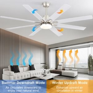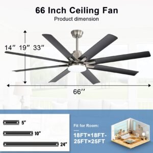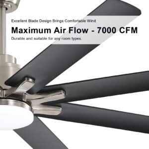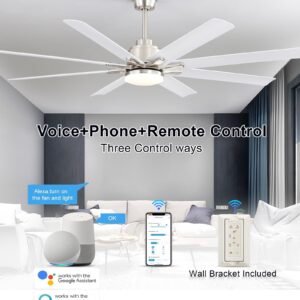 · 66 inch Smart Ceiling Fan with Light: Bring more than just wind and light, but comfort! Sofucor smart wifi ceiling fan, with 8 Blade Modern design, it can be the perfect decoration in your home while delivering enough airflow. Maximum applicable room size can be up to 25ft*25ft, The maximum airflow is 7000 cfm.