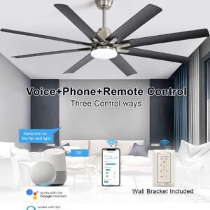 · 3 Control Methods: Remote control, app control and voice control (works with Alexa/Google Home). You can control ceiling fans with remote or APP anywhere in your house. It also works with Alexa & Google Assistant device and be control by voice that will provides great convenience for life. (Tips: After fixed, the remote control can be used as a wall switch)