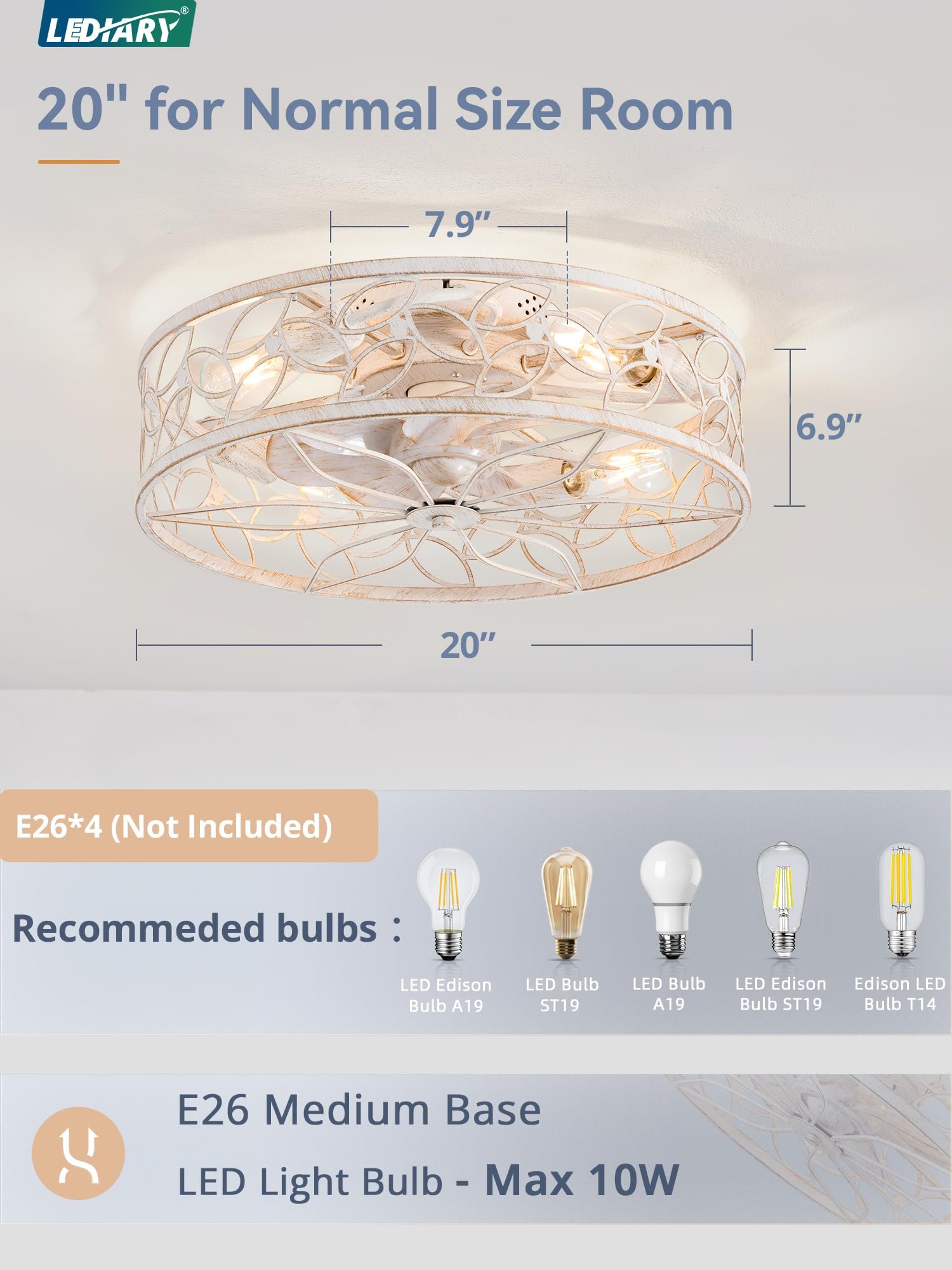 · 【Quatily Assurance】LEDIARY flush mount ceiling fan with lights have 5-year motor support and 2-year limited support on other parts. We uphold the highest standards for all our products by testing each product for optimal performance, just buy with confidence.