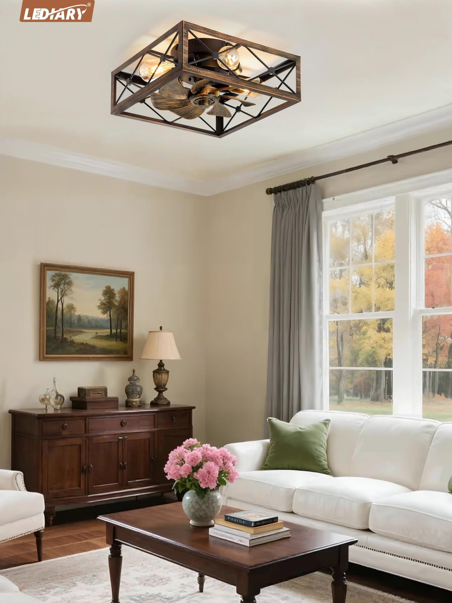 · Square Caged Design: The farmhouse ceiling fan boasts a unique square black metal cage design, and the intersecting pattern on the cage adds an artistic touch to this rustic ceiling fan. The small ceiling fan fits well in most spaces, complementing bedrooms, kitchen and living rooms perfectly, bringing a rich blend of industrial and rustic styles to your home decor
