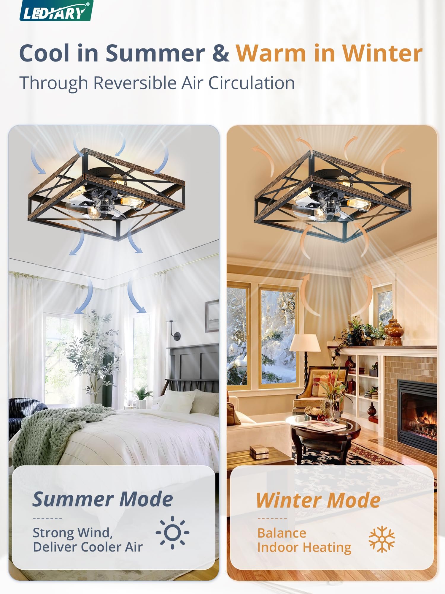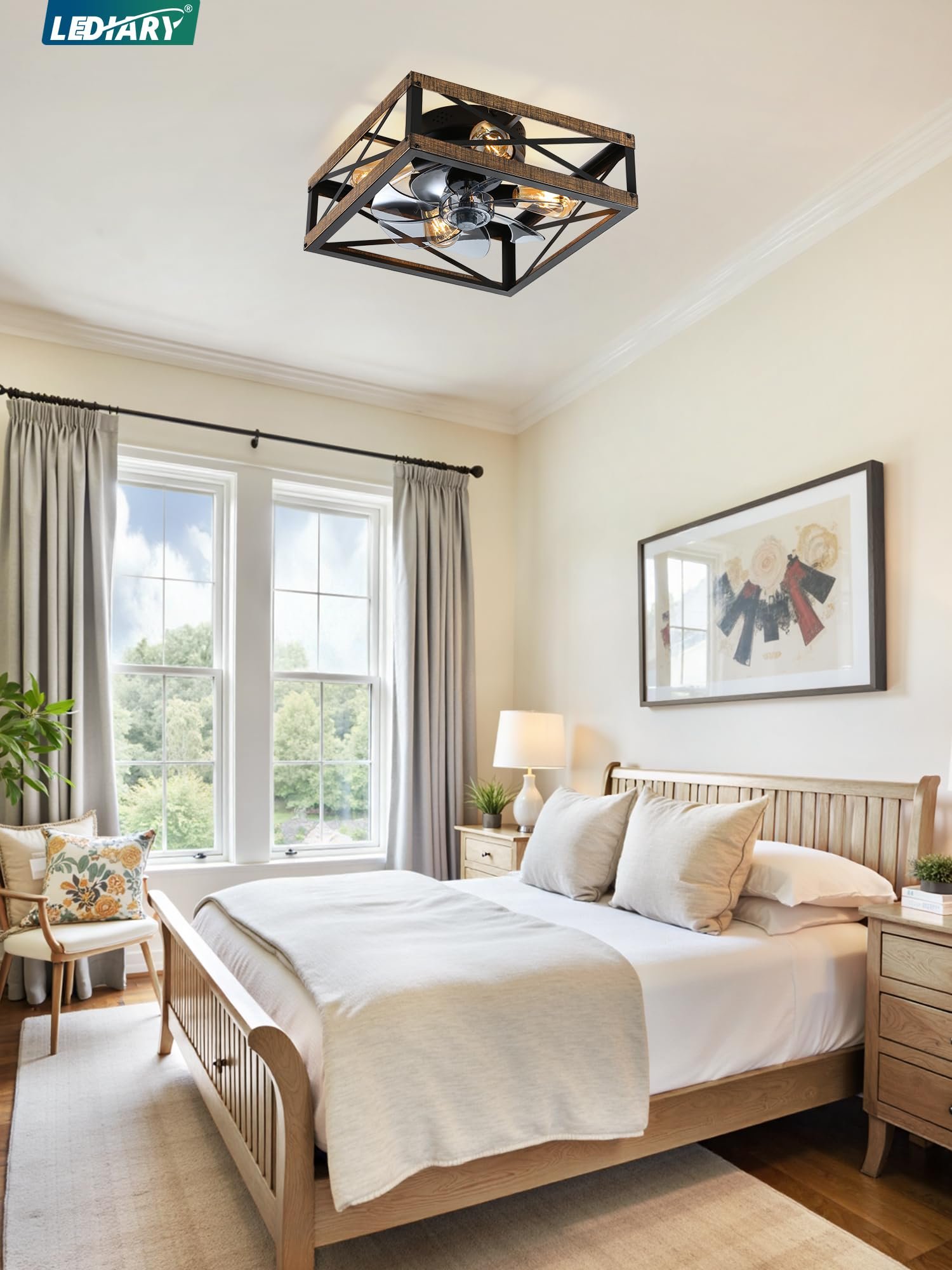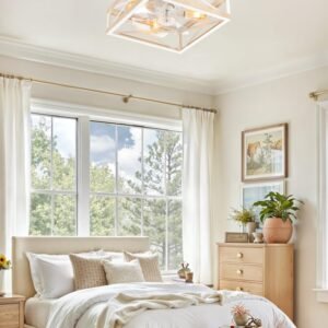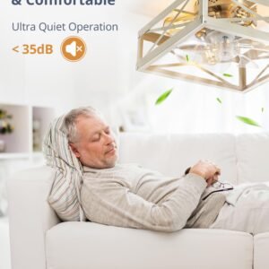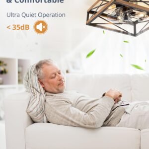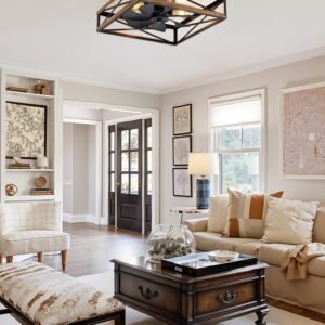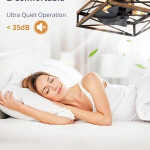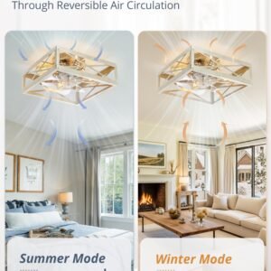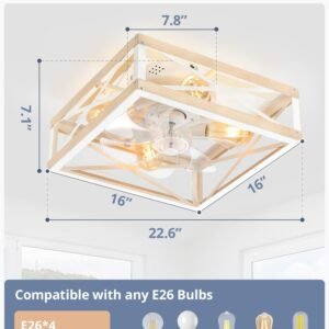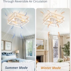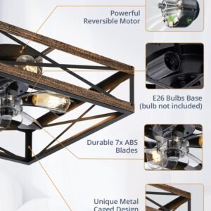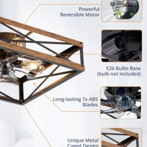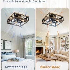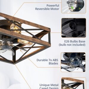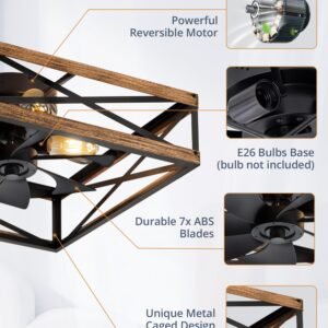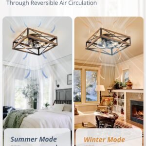 · Square Caged Design: The farmhouse ceiling fan boasts a unique square wood grain color cage design, and the intersecting pattern on the cage adds an artistic touch to this caged ceiling fan. The small ceiling fan fits well in most spaces, complementing bedrooms, kitchen and living rooms perfectly, bringing a rich blend of industrial and rustic styles to your home decor