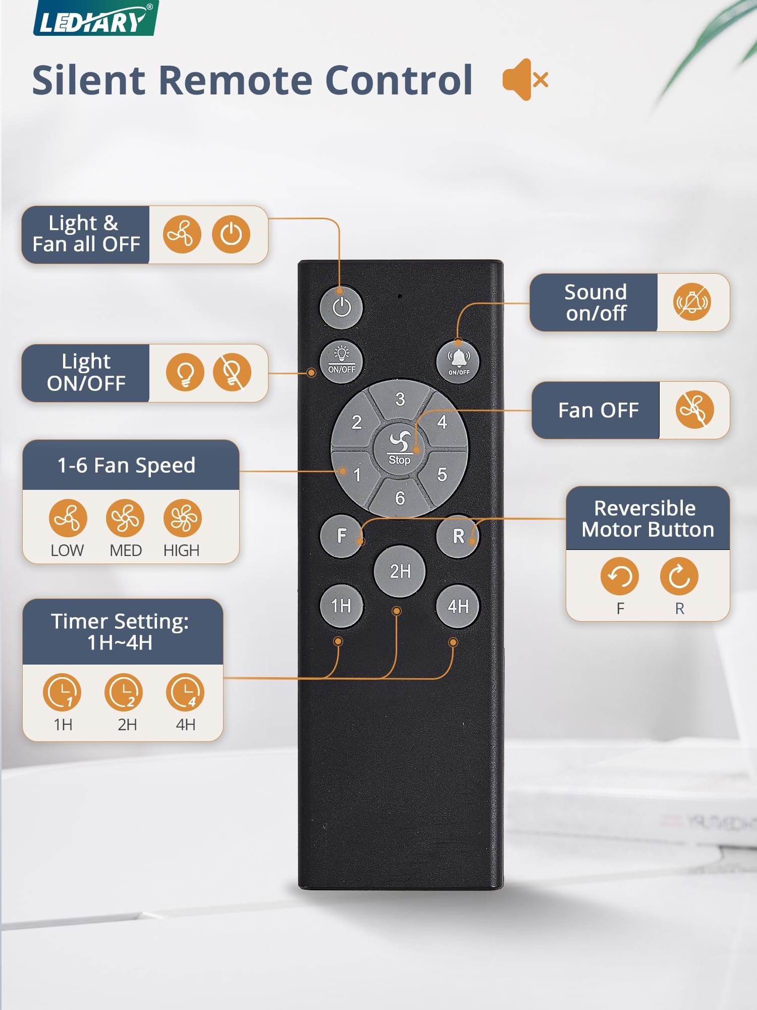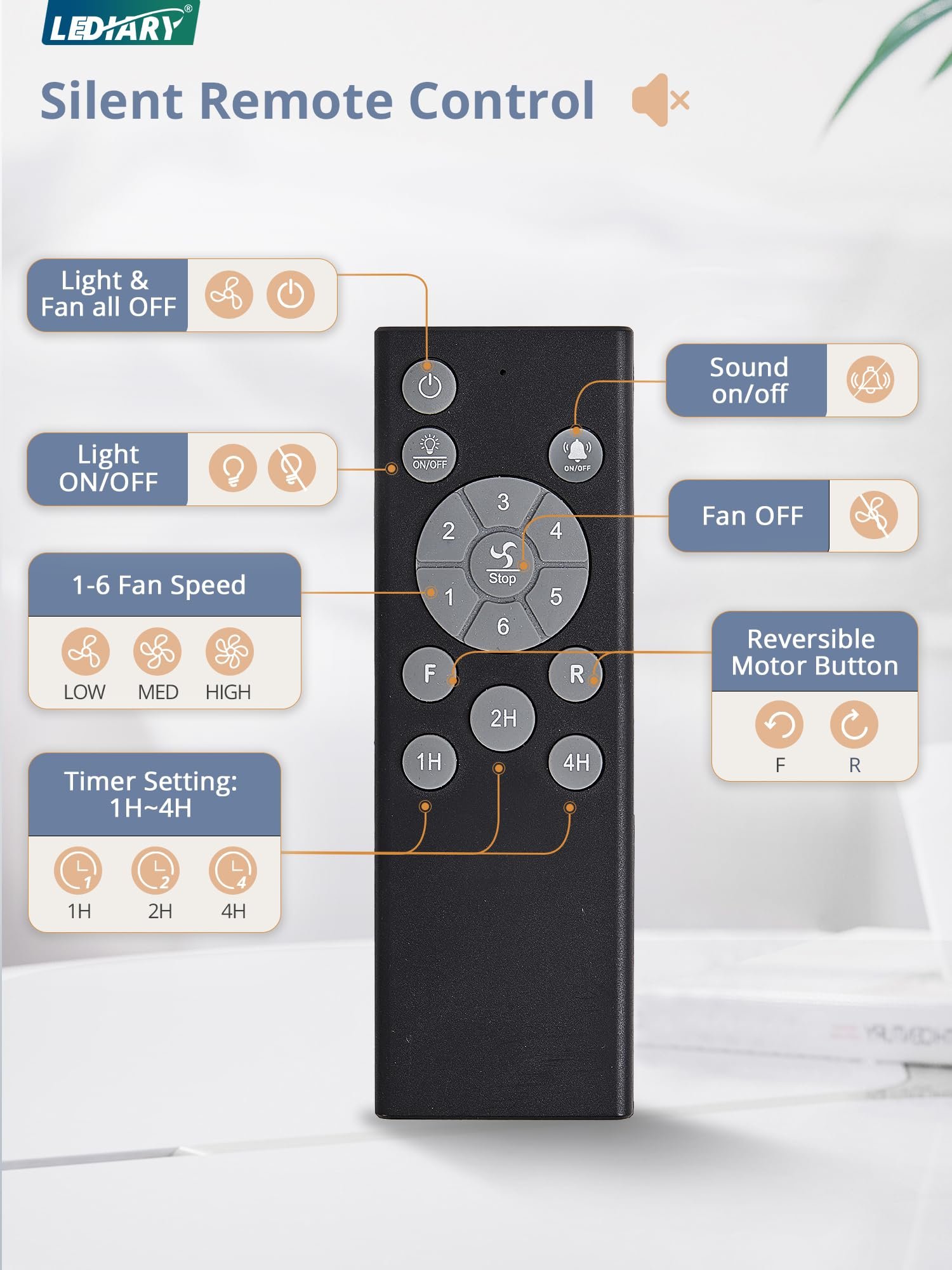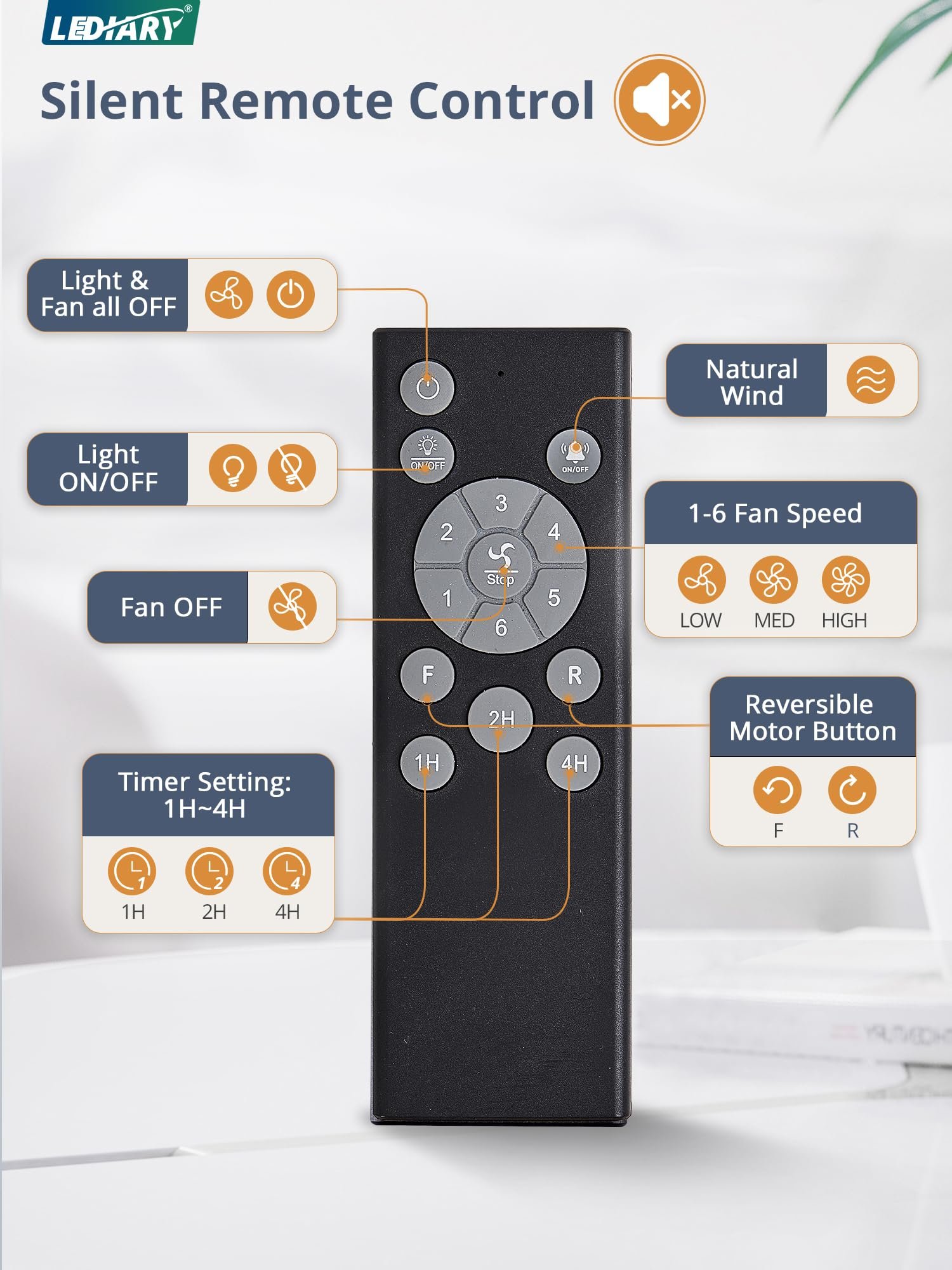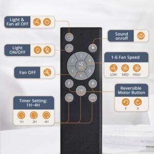 · Simple Remote Control: The silent Remote operates without any beeping, ensuring quiet convenience without disturbing your family. Easily handle 5 key features with the remote: 6 wind speeds, reversible mode, 1/2/4-hour timer, natural breeze mode and control the fan or light separately, provides remarkable convenience
