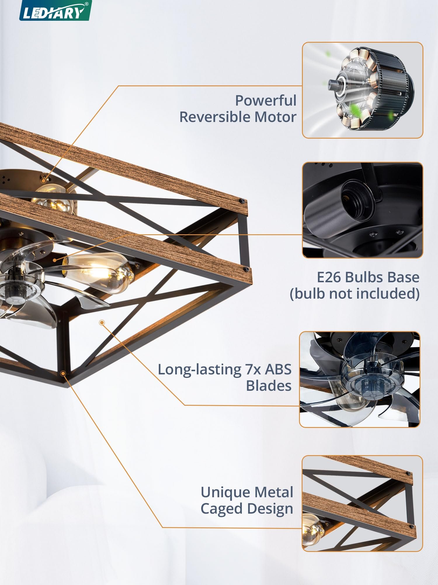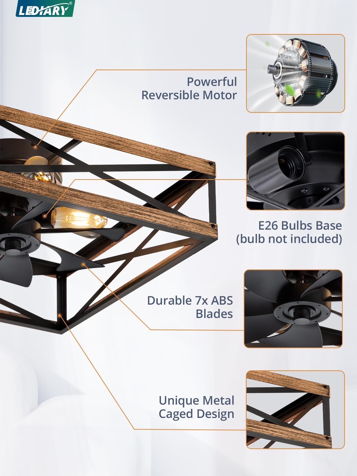 · Confident Purchase: LEDIARY provides 5-year motor and 2-year service on other parts for our rustic ceiling fan. We value our customers’ feedback and are committed to providing a great shopping experience. If you encounter any problems with our products, please don’t hesitate to let us know