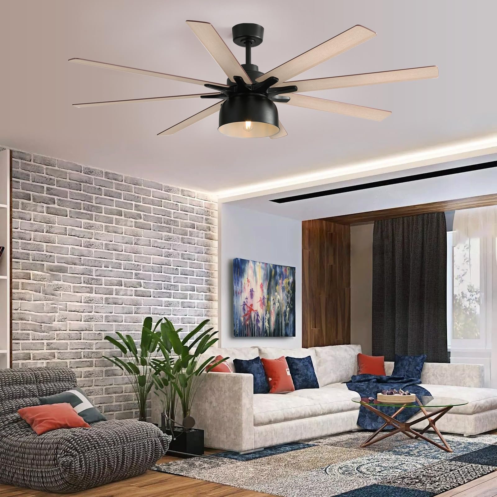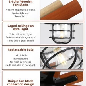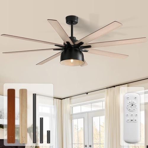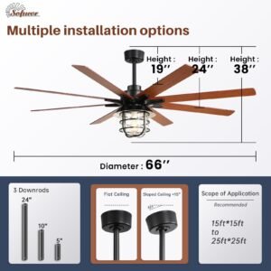 · 66 Inch Ceiling Fans with Lights – Transform your home with our classic retro-style ceiling fan features two elegant blade colors – walnut and natural wood. Designed for versatility, it comes with three adjustable down-rods (5inch, 10inch, 24inch) to perfectly fit any ceiling height and décor. Whether indoor or outdoor, choose the ideal combination to enhance your living space.