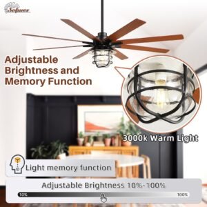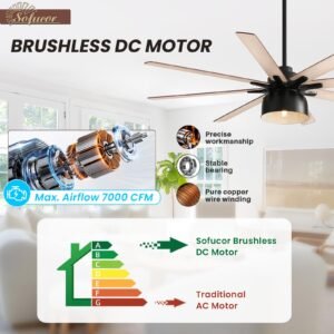 · Powerful & Quiet DC Motor – Sofucor ceiling fans with lights feature 8 elegantly designed blades powered by a cutting-edge DC motor, delivering exceptional airflow while saving 75% more energy than traditional AC motors. Enjoy a serene environment with whisper-quiet operation, producing less than 30 decibels of noise.