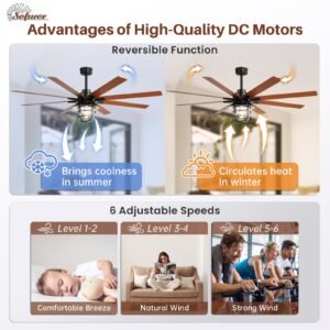 · Versatile Reverse Airflow – Experience Year-Round Comfort with Sofucor! Enhance your living space with Sofucor Ceiling Fan with Light. Featuring a versatile reverse airflow function, it create refreshing breeze in summer and efficiently circulates warmth in winter. Enjoy all-season comfort and stylish illumination in one elegant solution. Embrace the perfect climate—whatever the season!